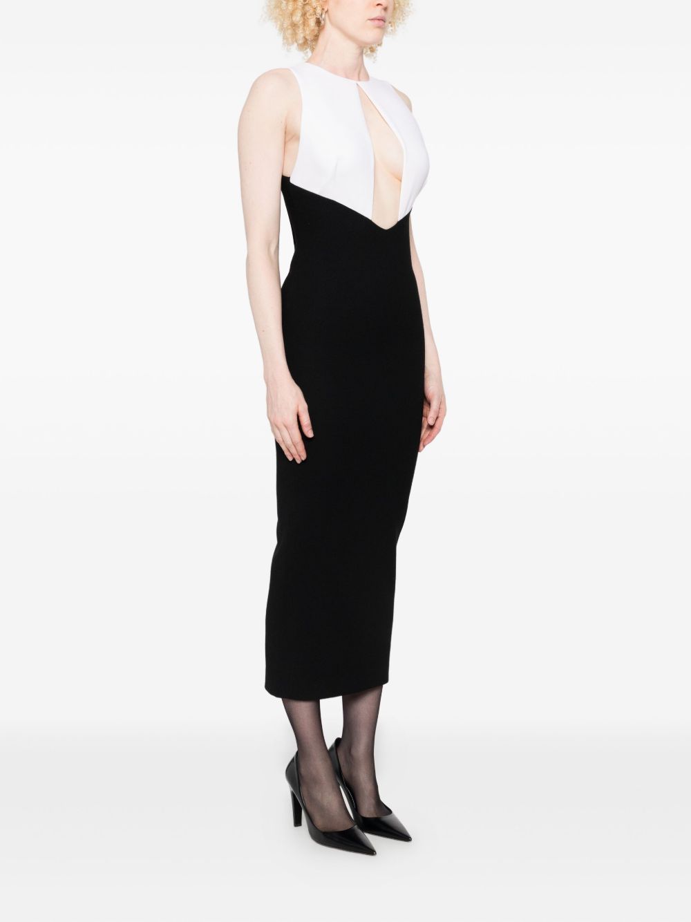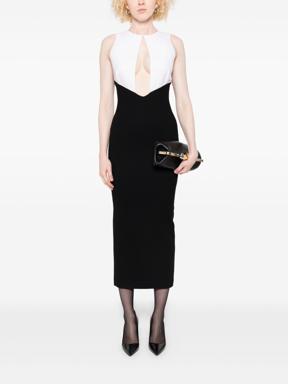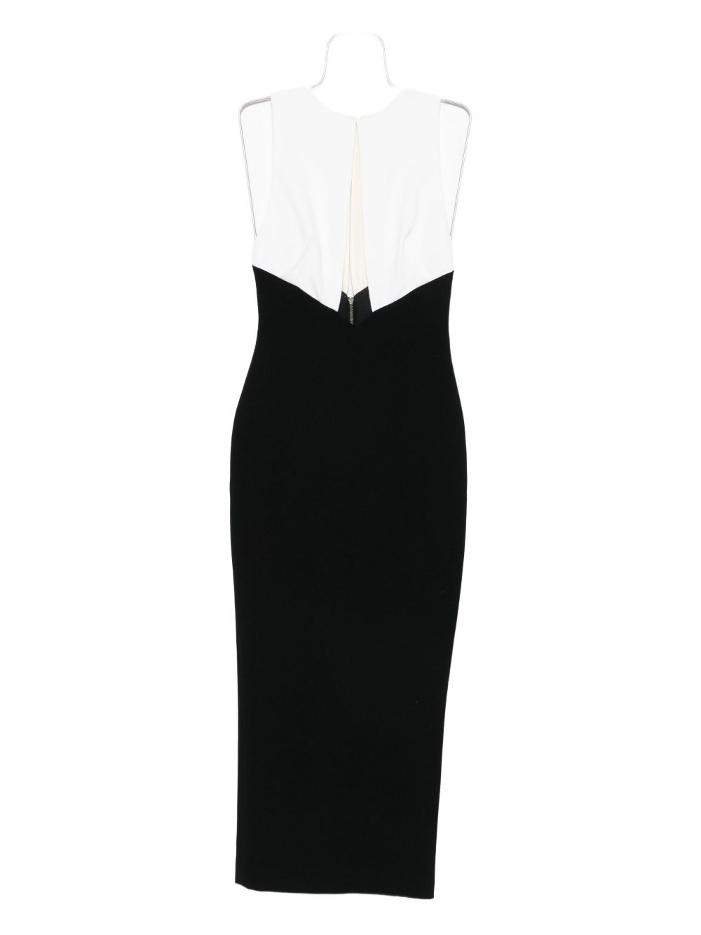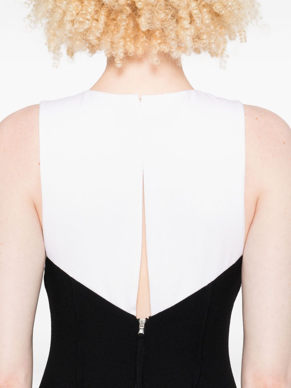 abito longuette, bicolore, girocollo con scollatura profonda, senza maniche, chiusura con zip