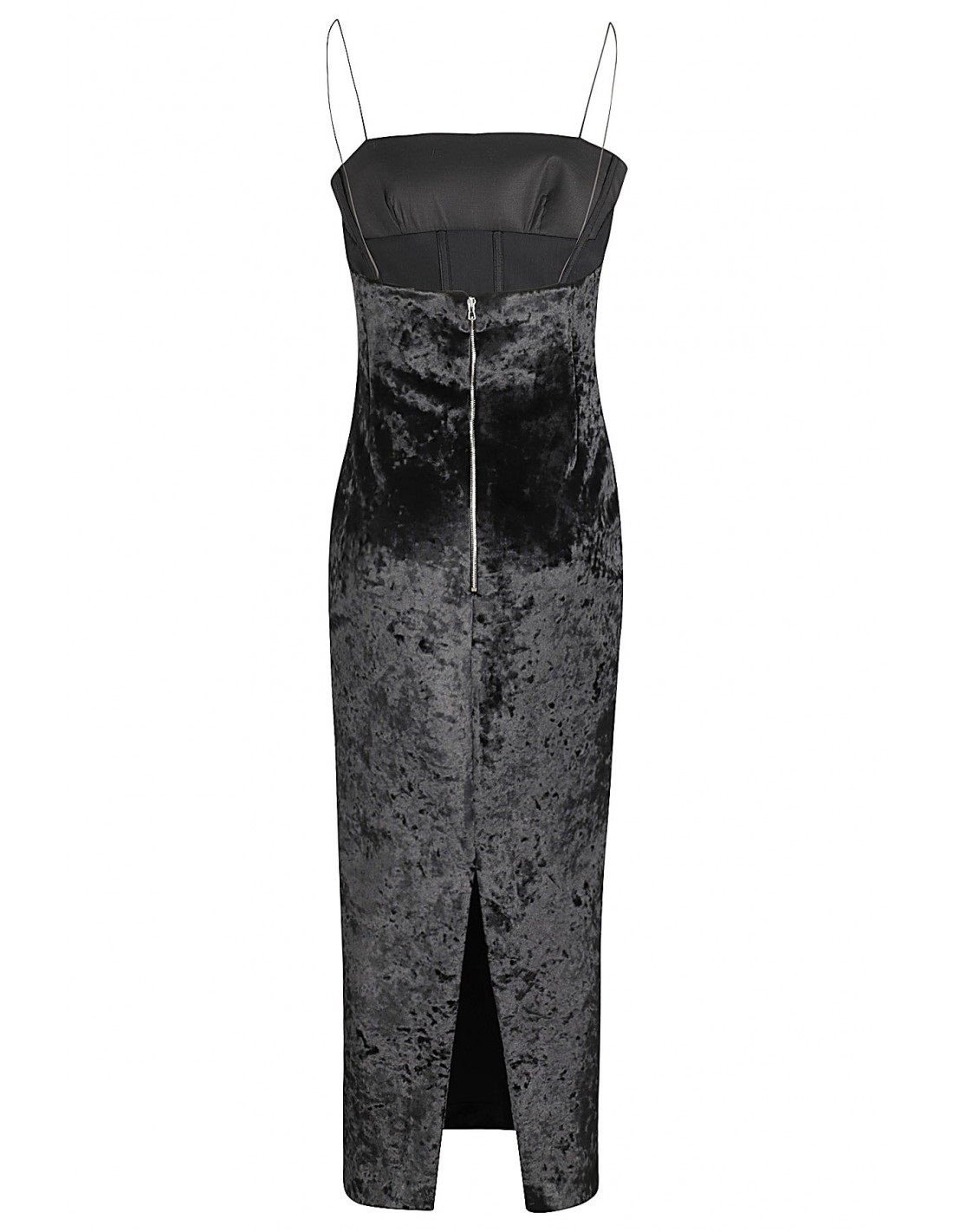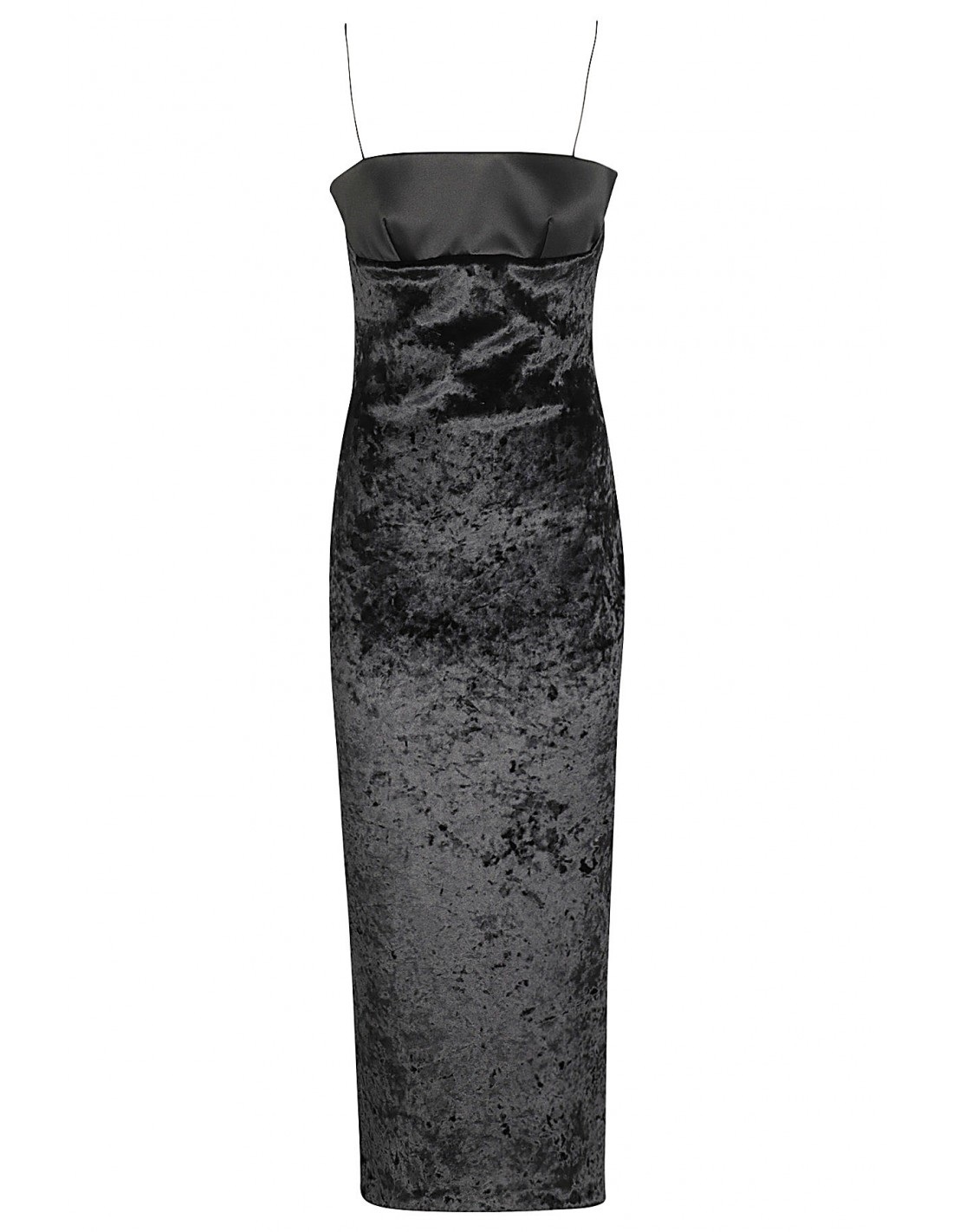 abito longuette, velluto e raso, bretelle sottili, chiusura con zipComposizione: 90% poliestere 10% elastaneIstruzioni per il lavaggio: lavare a secco