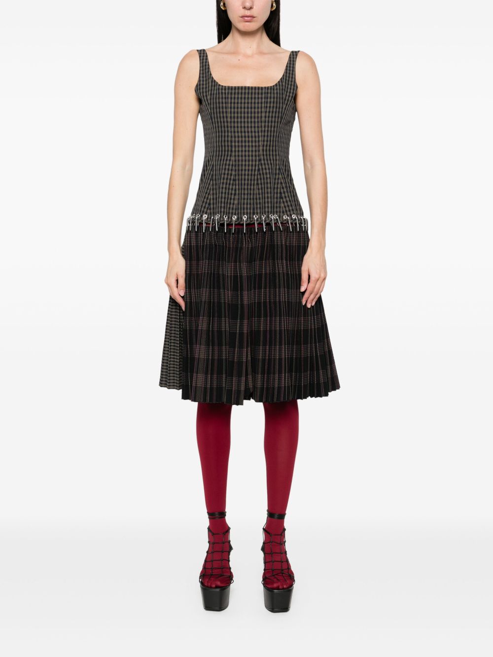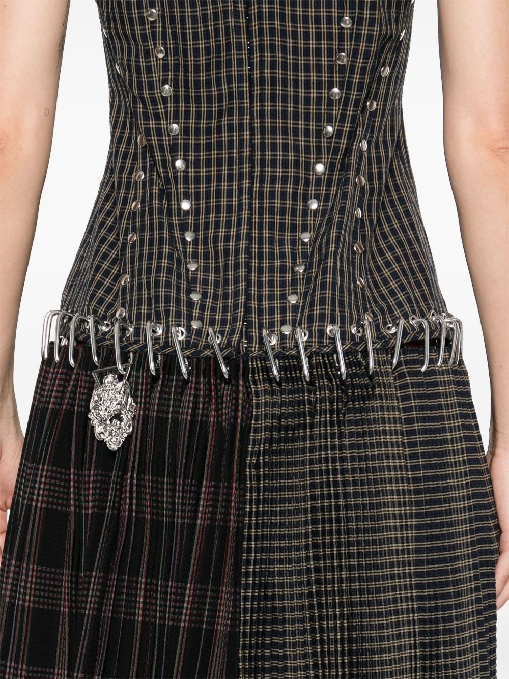 abito. corsetto, bretelle regolabili con fibbie in metallo, chiusura anteriore con gancetti, vita con ganci, charm, gonna a pieghe, multi tartan Composizione: 72% cotone, 28% lino Istruzioni per il lavaggio: lavare a secco