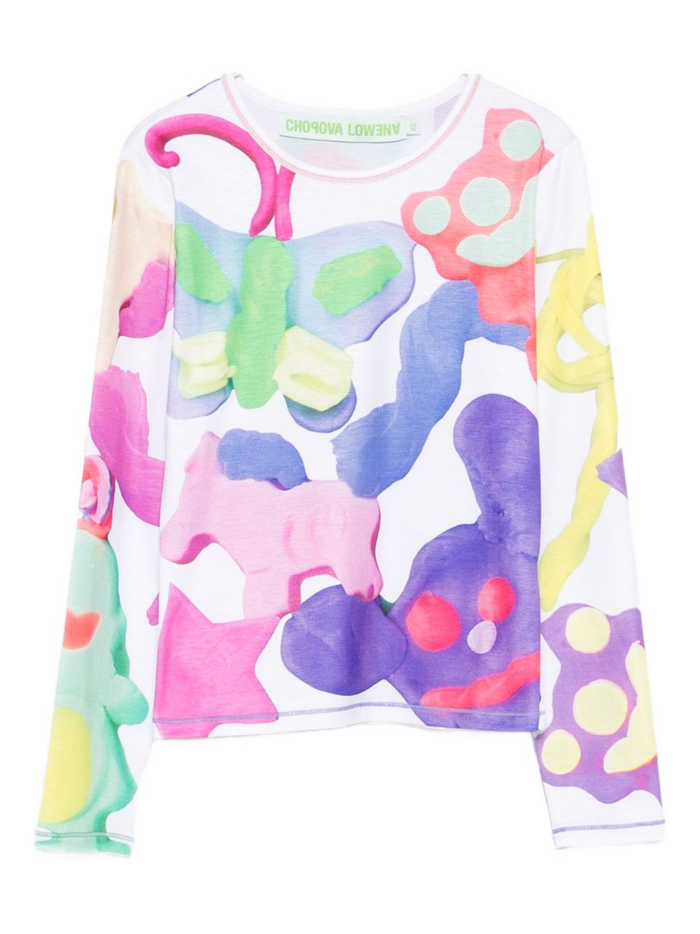 t-shirt, girocollo, maniche lunghe, stampa multicolor all over