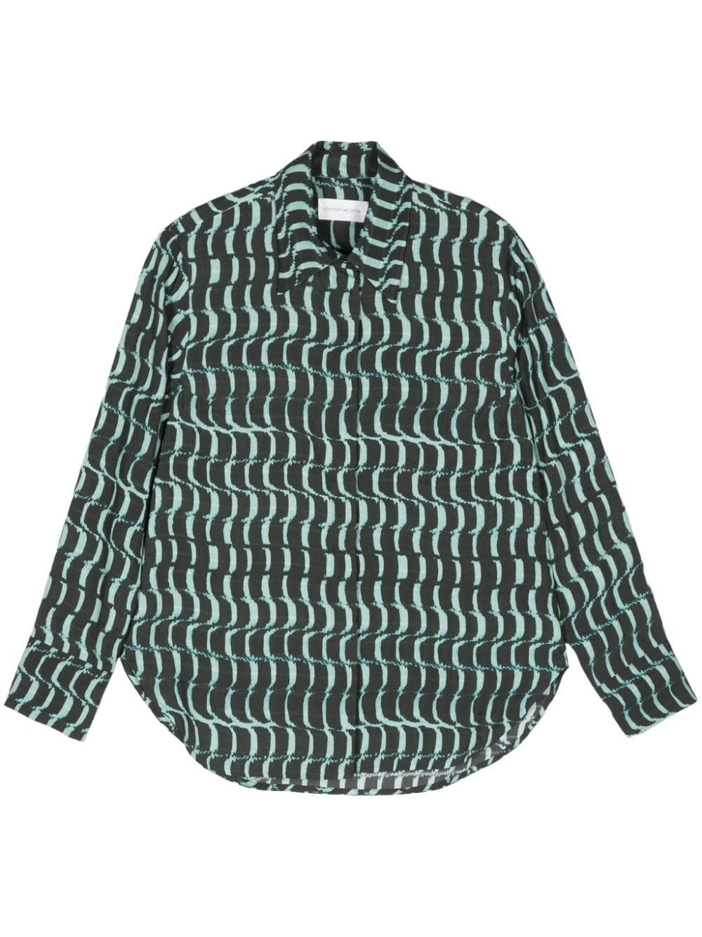 camicia, colletto a punta, chiusura con bottoni nascosta, manica lunga con polsini e bottoni, fantasia astrattaComposizione: 55% seta 45% rayonIstruzioni per il lavaggio: lavare a secco