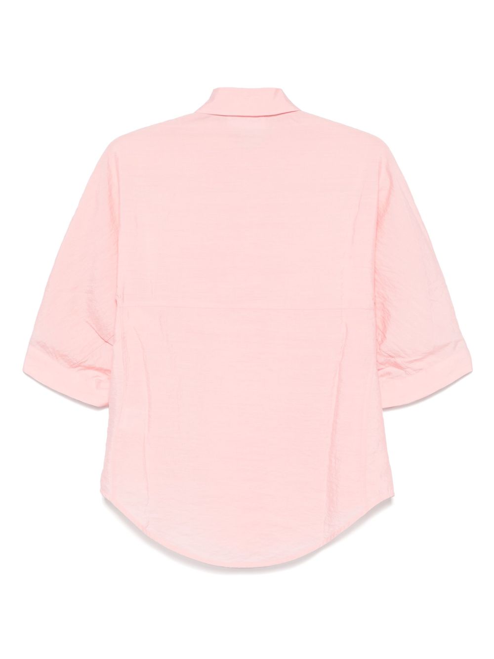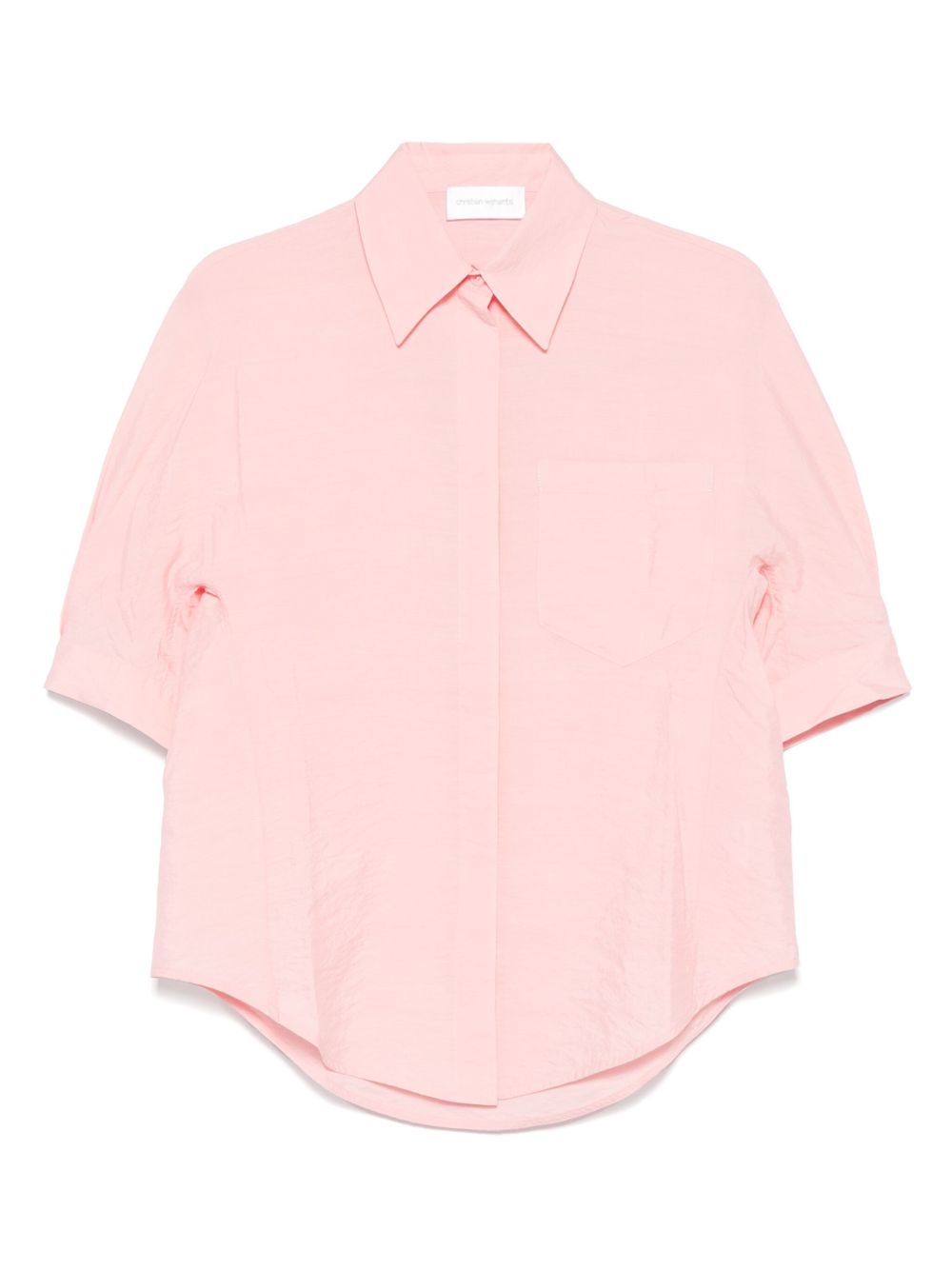 camicia, colletto a punta, chiusura con bottoni coperta, taschino, manica corta ampia con pences Composizione: 72% seta , 28% nylon Istruzioni per il lavaggio: lavare a secco