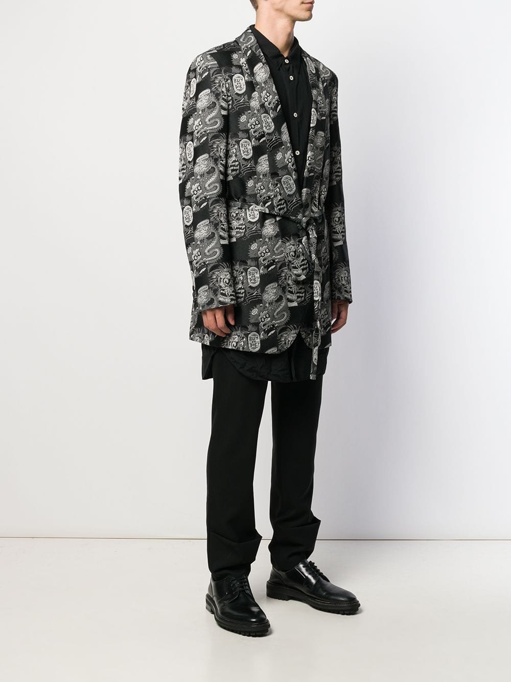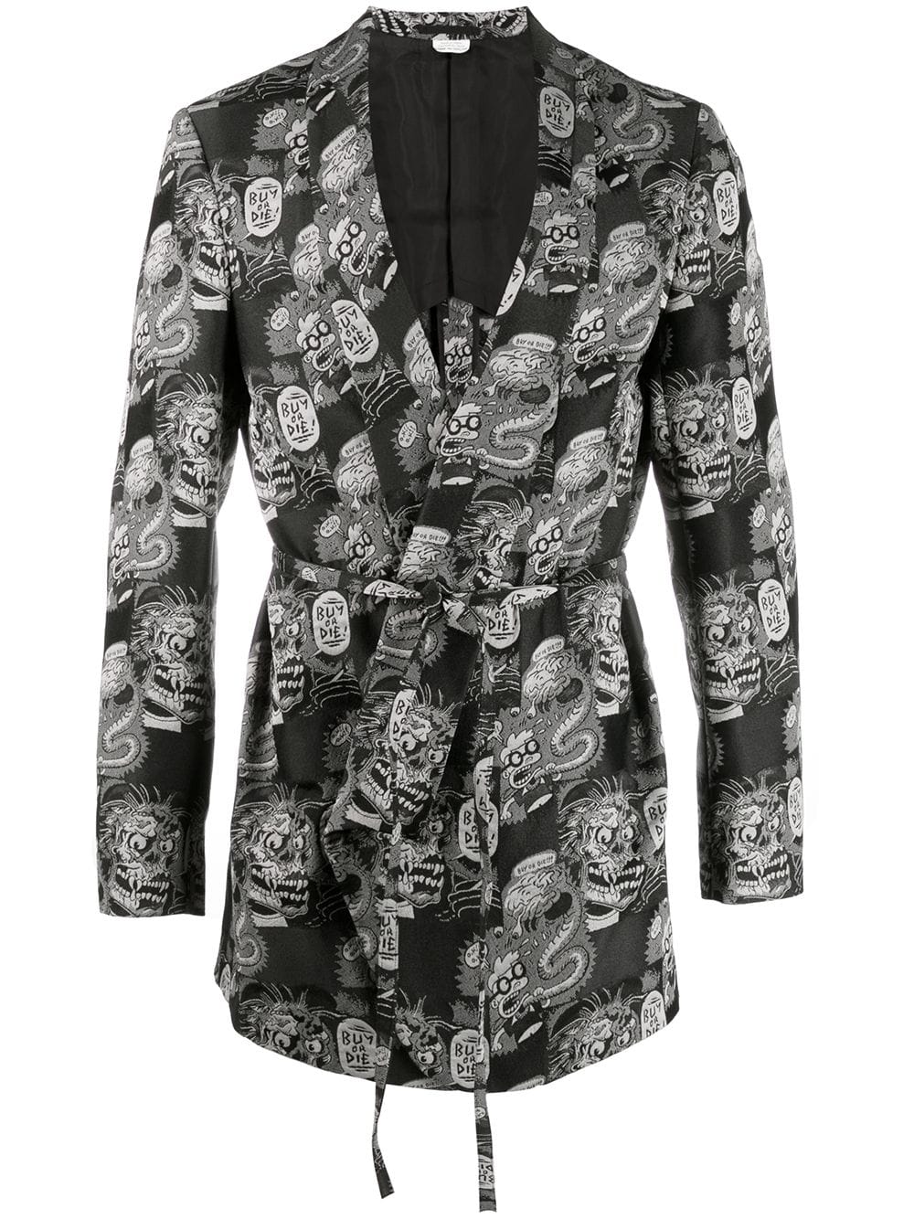 Blazer Buy Or Die di colore nero. Modello con risvolti a scialle, maniche lunghe, polsini con bottone, nodo in vita e arriccitura frontale. Composizione Fodera: Cupro 100%, Cotone 12% Esterno: Poliestere 61%, Acrilico 27% Istruzioni per il lavaggio Lavare solo a secco