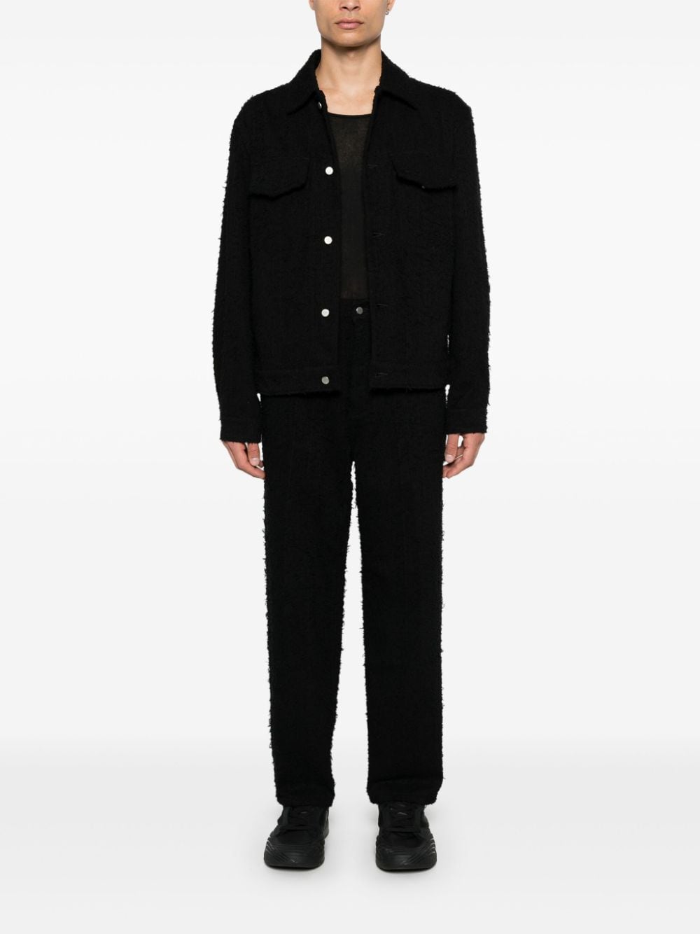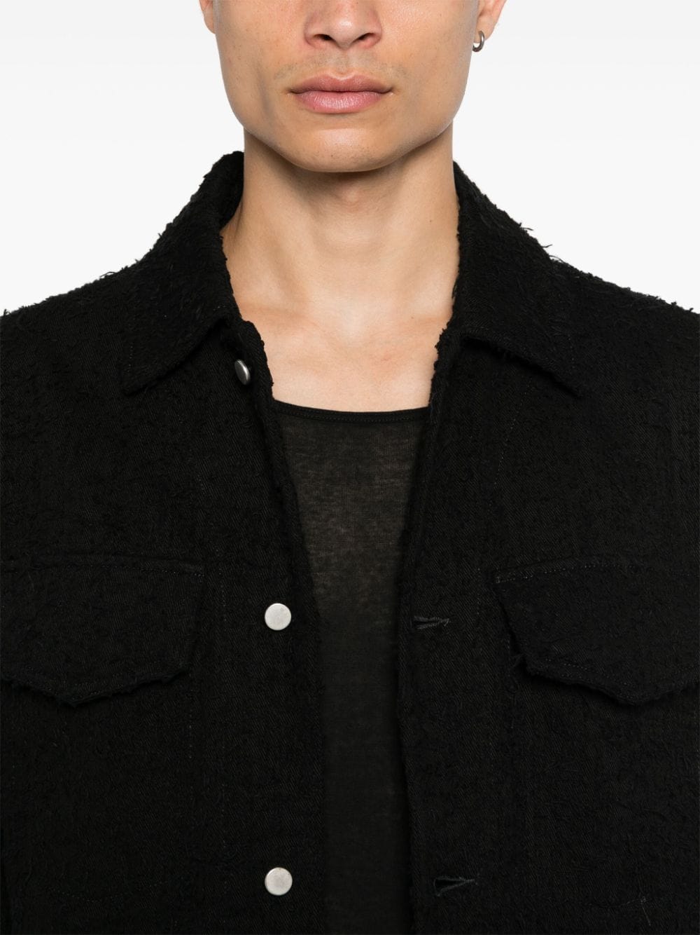giacca, colletto, tessuto effetto asciugamano, chiusura con bottoni, tasche laterali, tasche frontali con pattina,manica lunga con polsini a soffietto e bottoni Composizione: 100% cotone Istruzioni per il lavaggio: lavare a mano