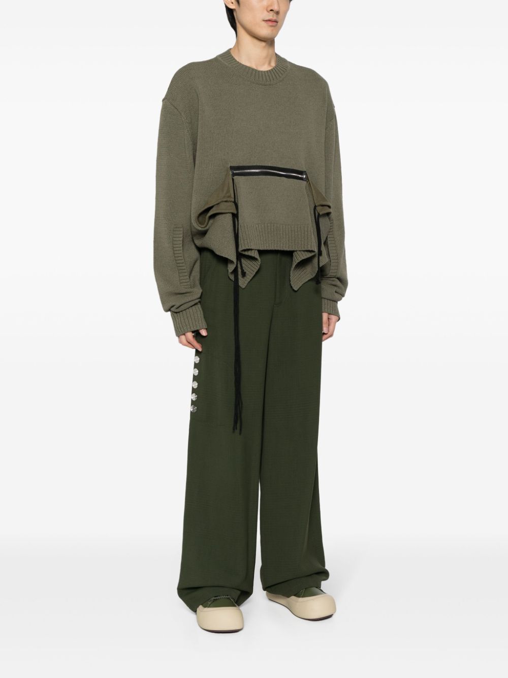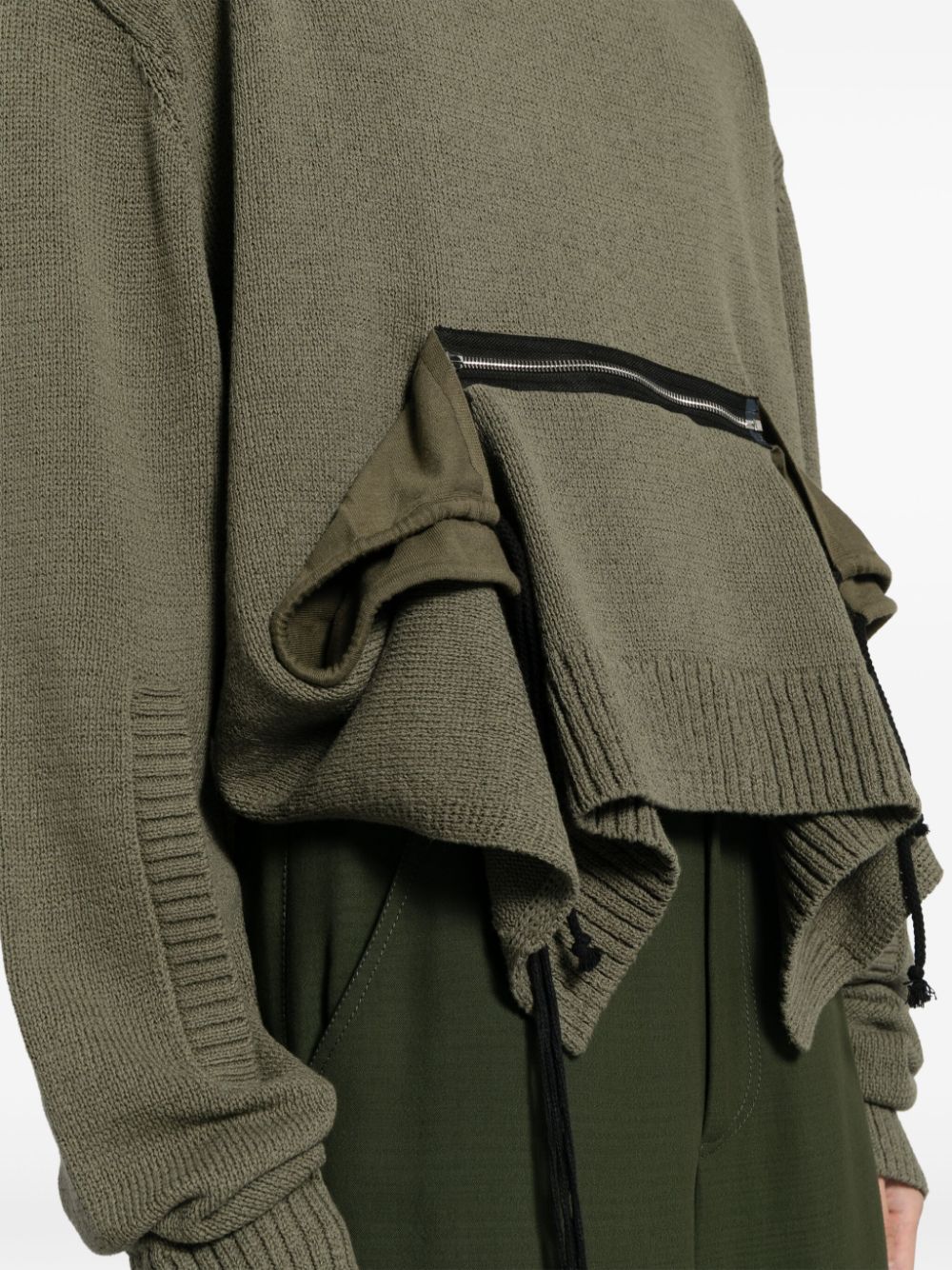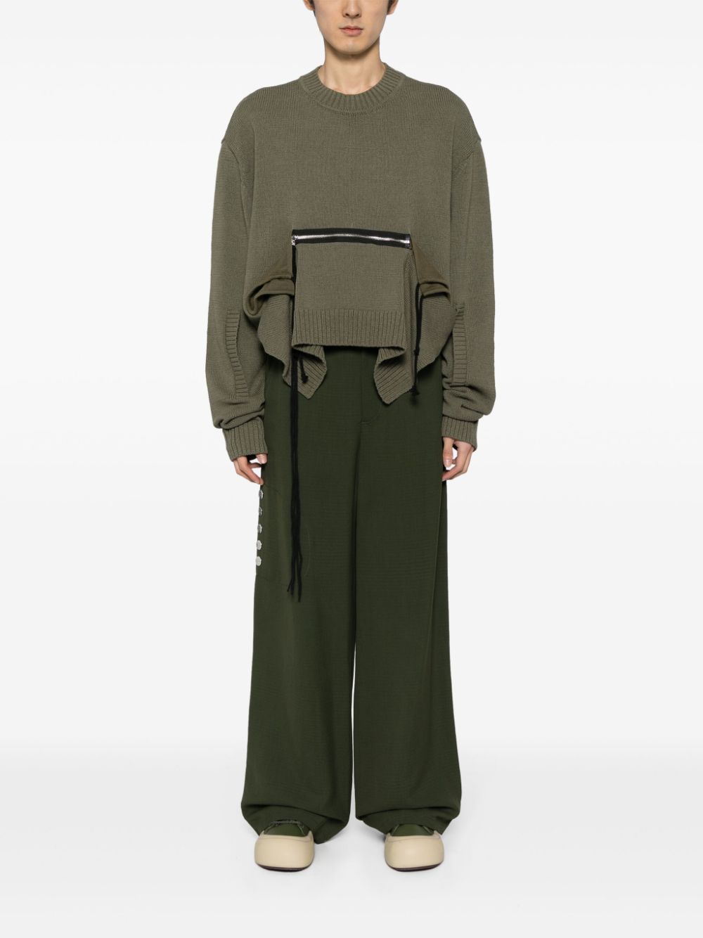 maglia, girocollo, manica lunga, vestibilità ampia, tasche a marsupio con zip, ampi spacchi laterali Composizione: 79% cotone 22% poliestere Istruzioni per il lavaggio: lavare a mano