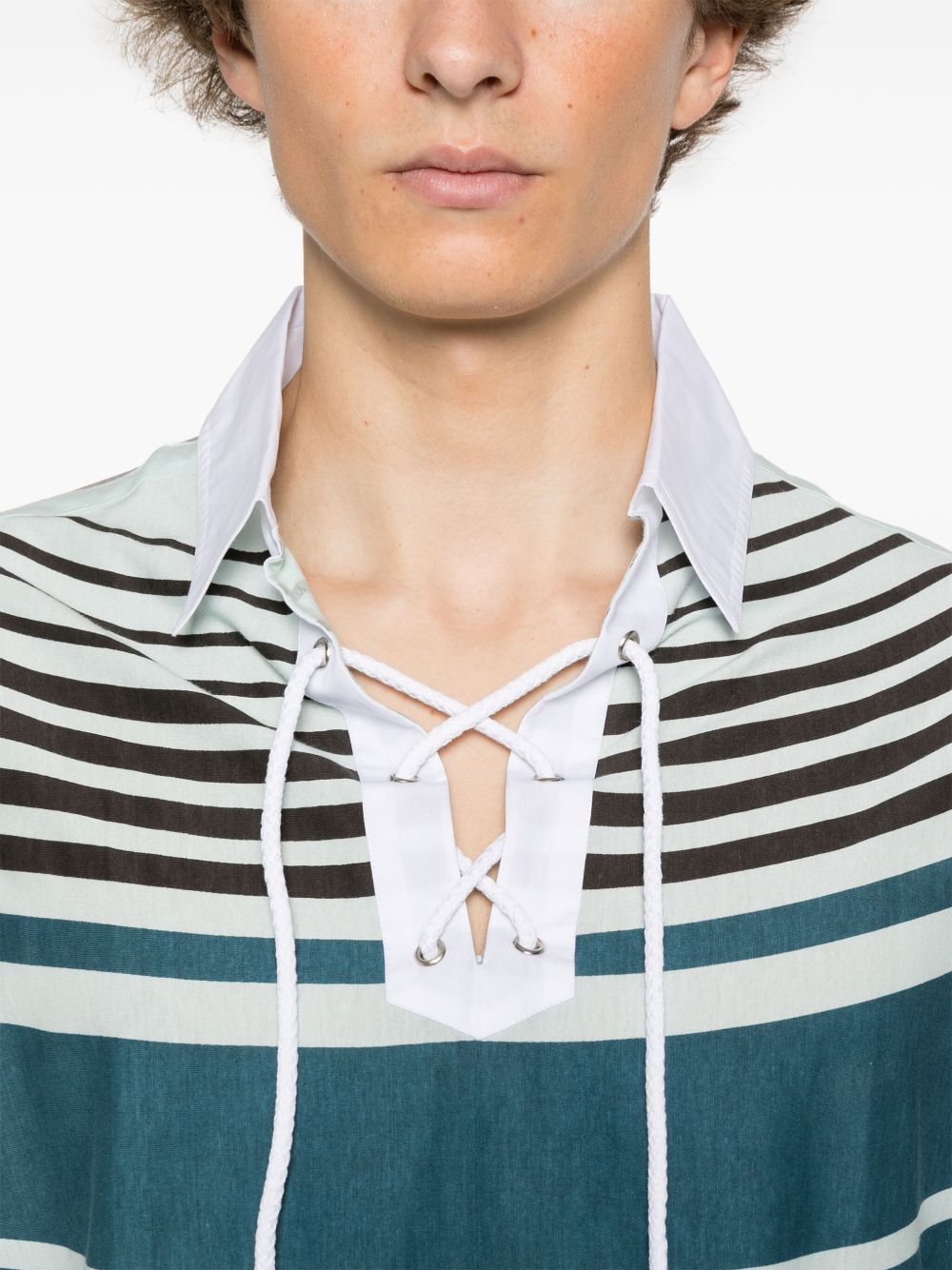 polo, manica corta, colletto chiuso con cordino, jersey a righe , vestibilità ampia, spacchi laterali Composizione : 100% cotone Istruzioni per il lavaggio: lavare a mano