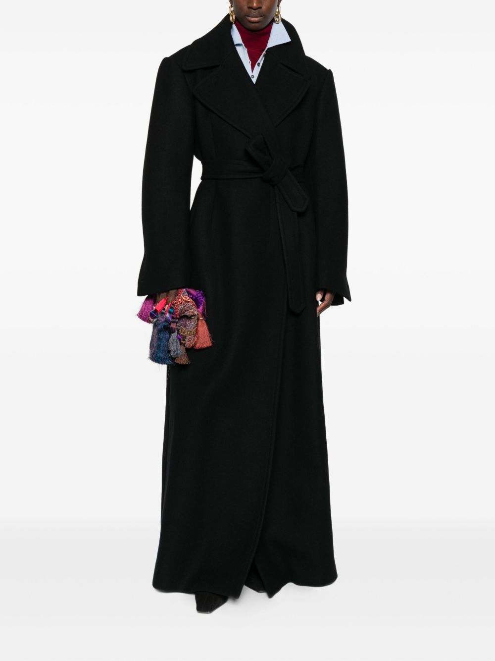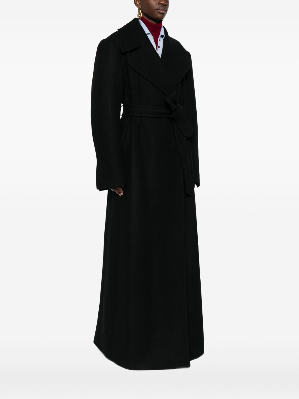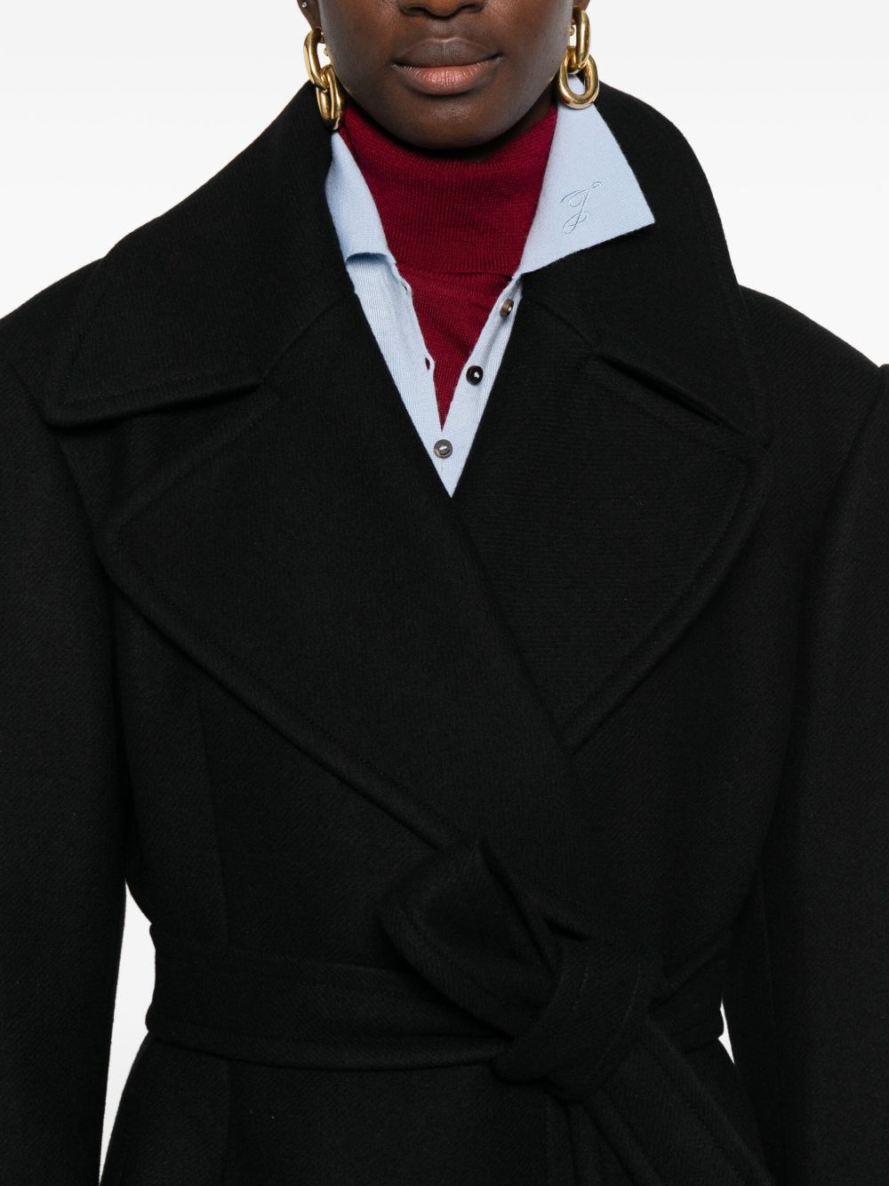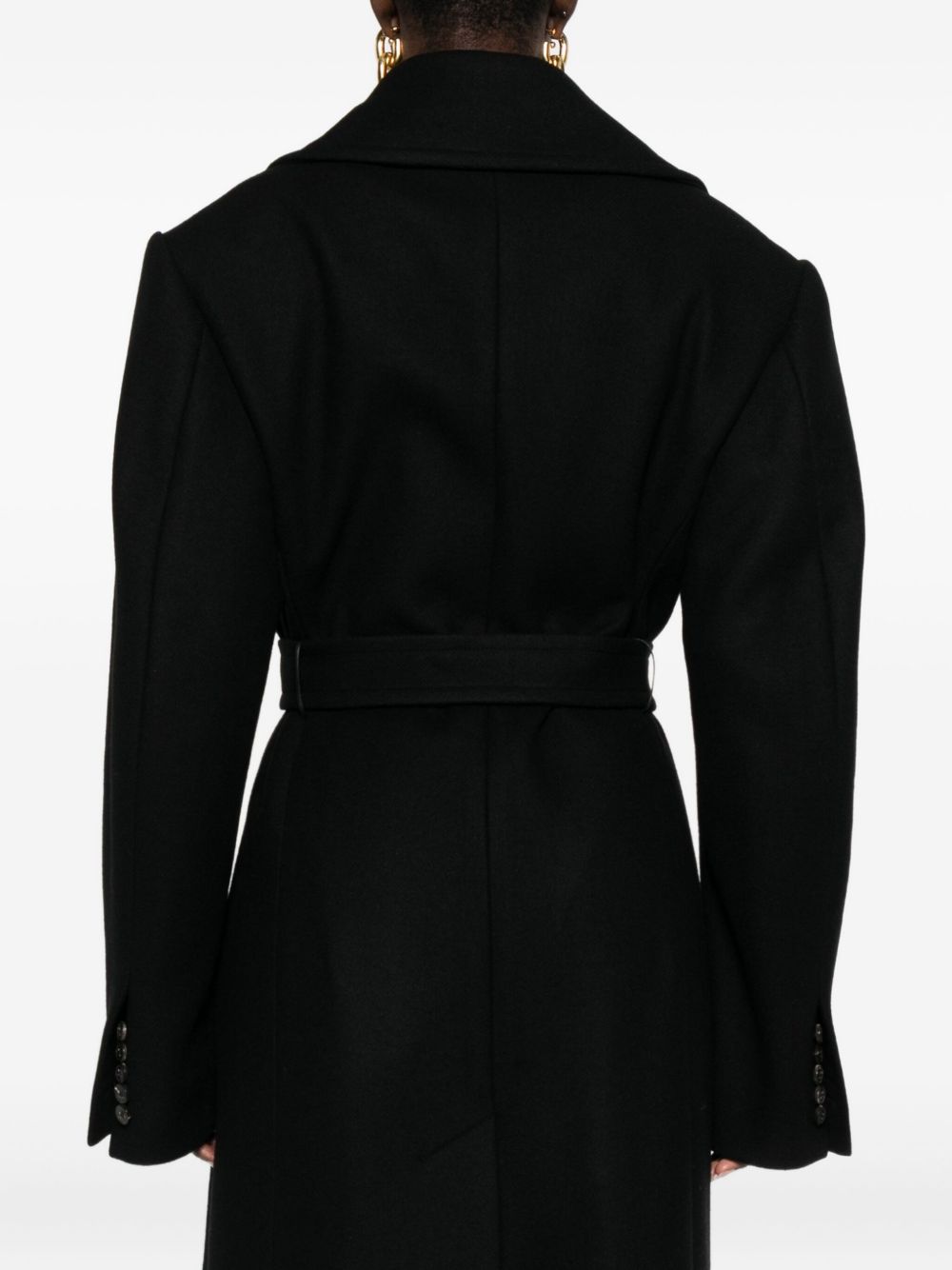 cappotto, doppio petto, collo con revers classico, chiusura con bottoni, cintura removibile con passanti, tasche a filo laterali, manica lunga da risvoltare, polsi con bottoni e asole aperte, spacco posteriore, foderato, tasca interna