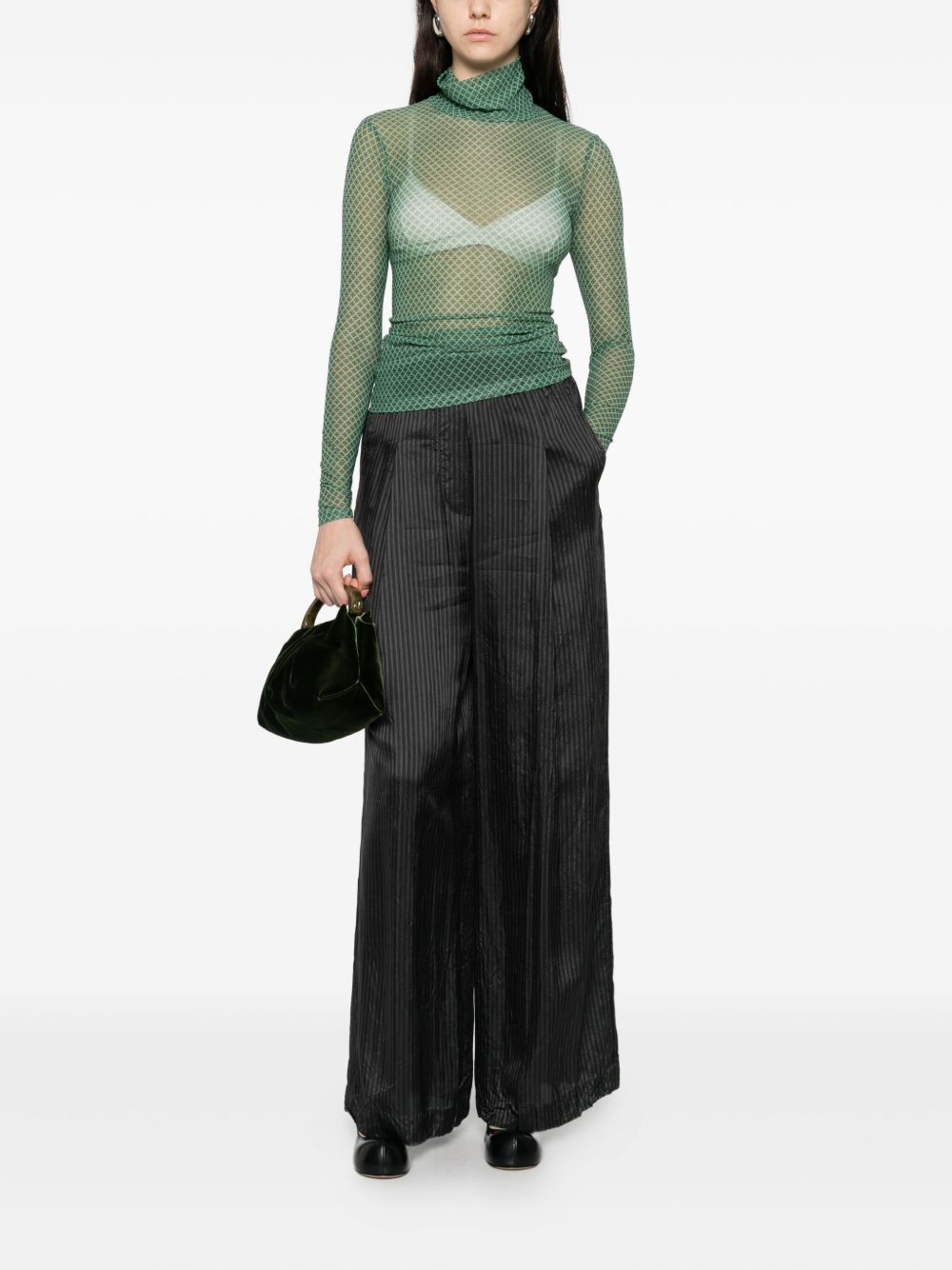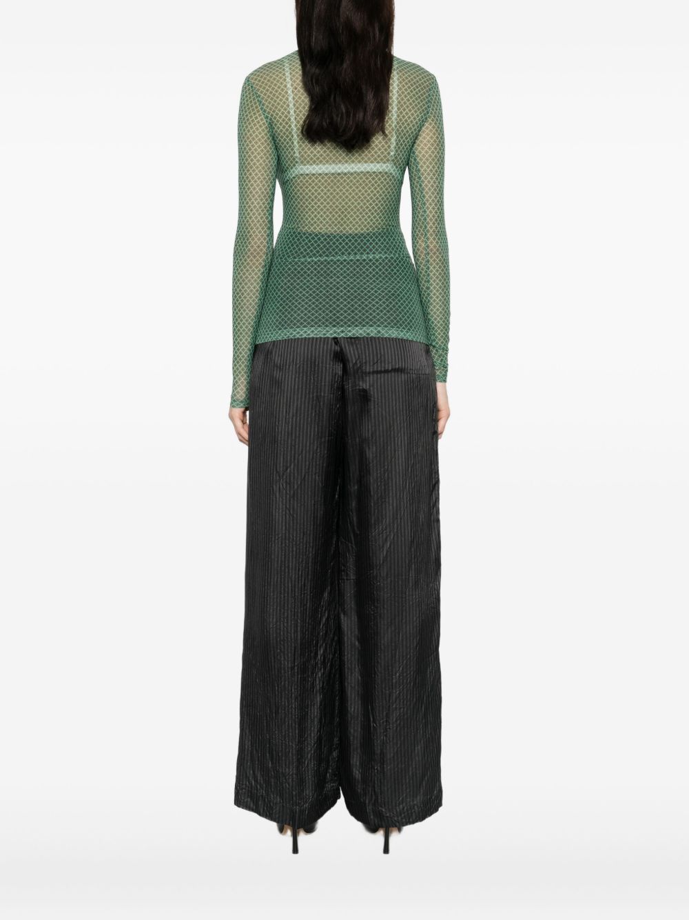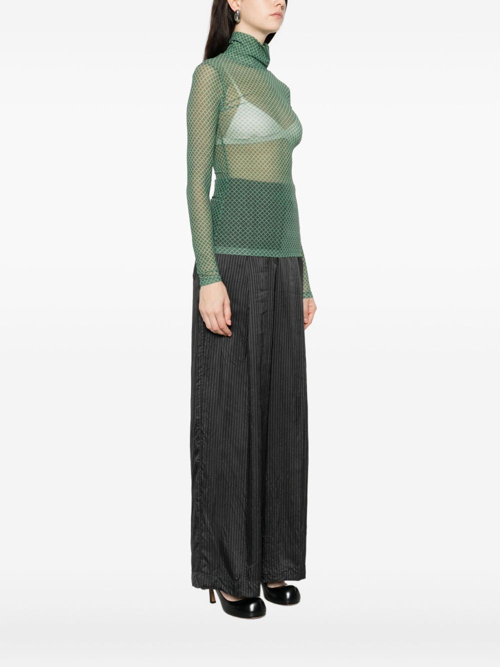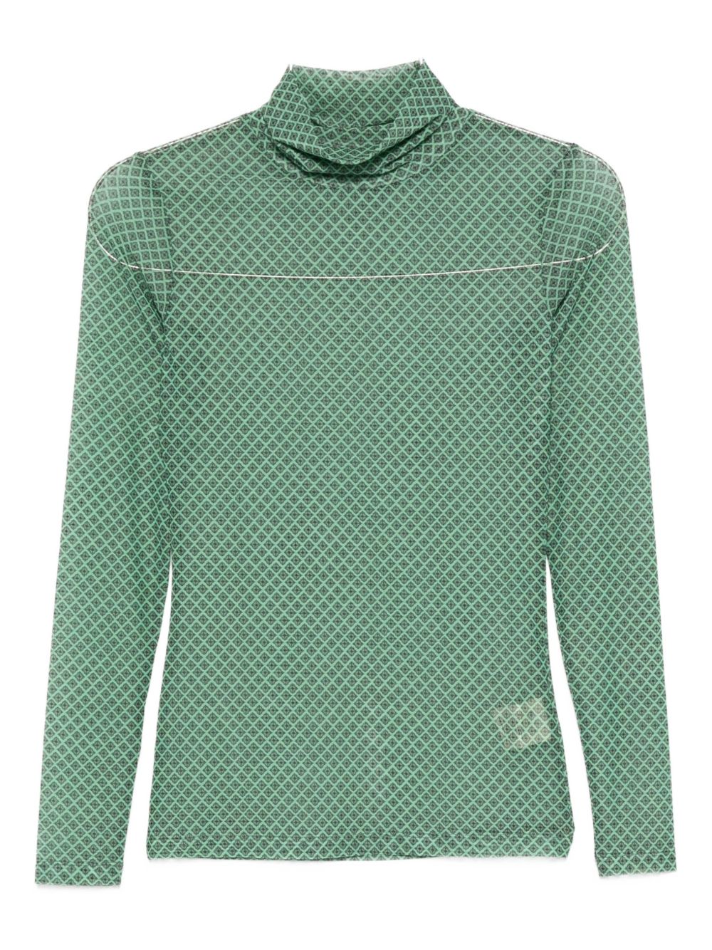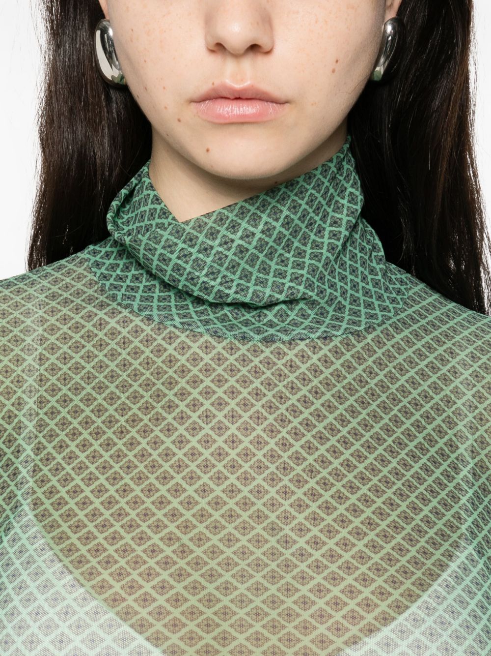 top, collo alto, maniche lunghe, stampa geometrica, tulle stretch