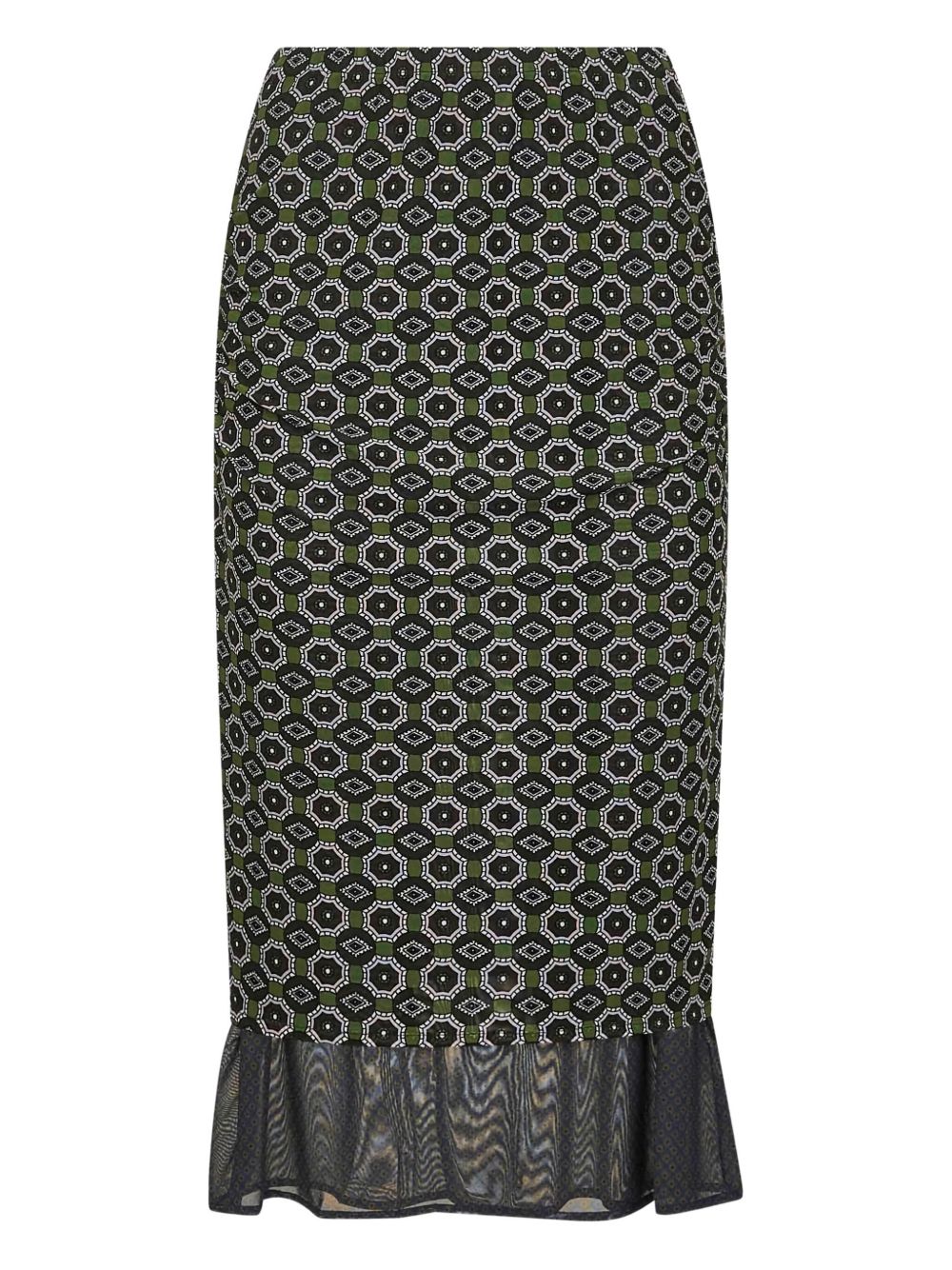 gonna a tubino, vita elasticizzata, tulle stretch, doppia strato a due fantasie geometriche