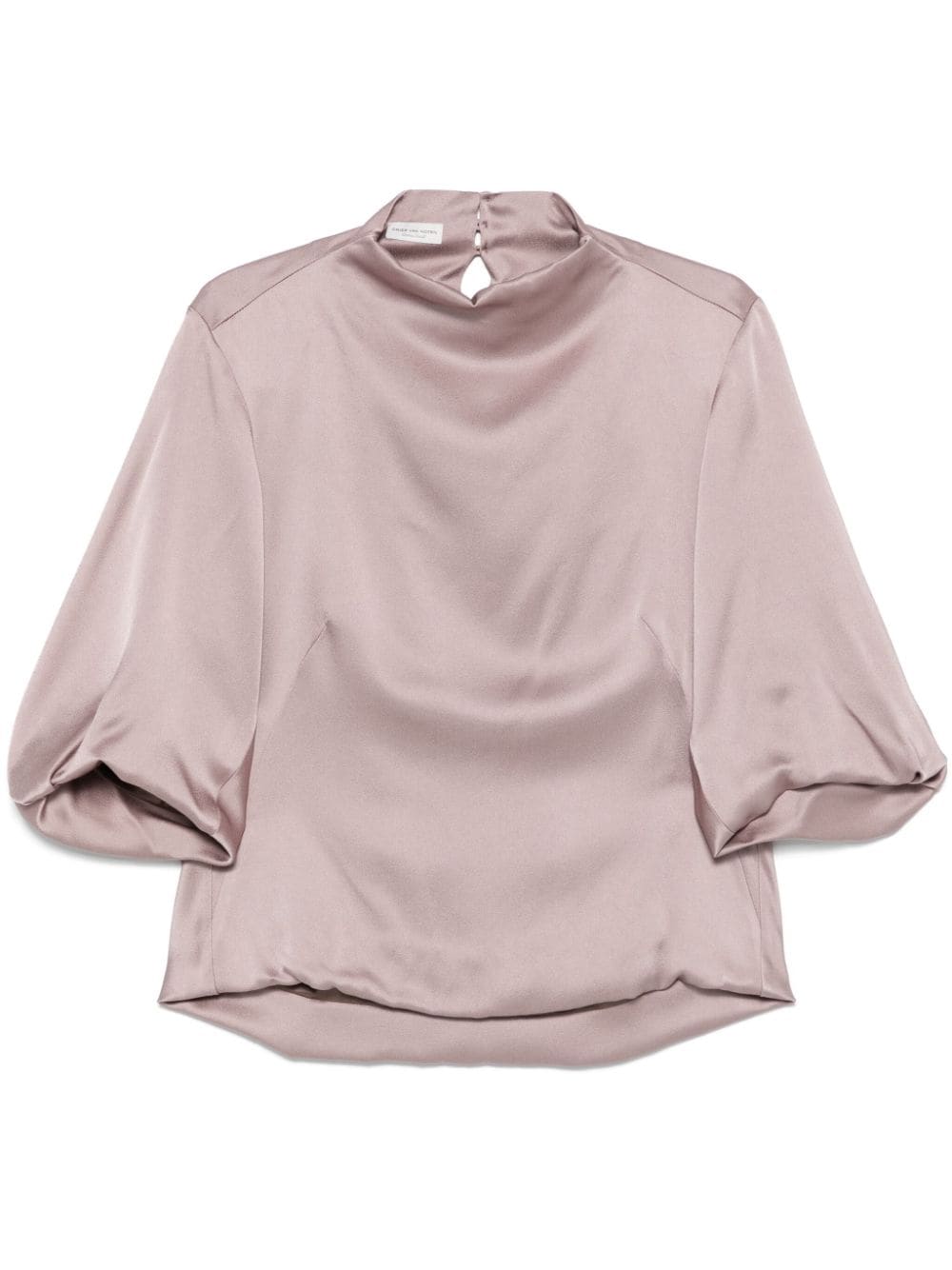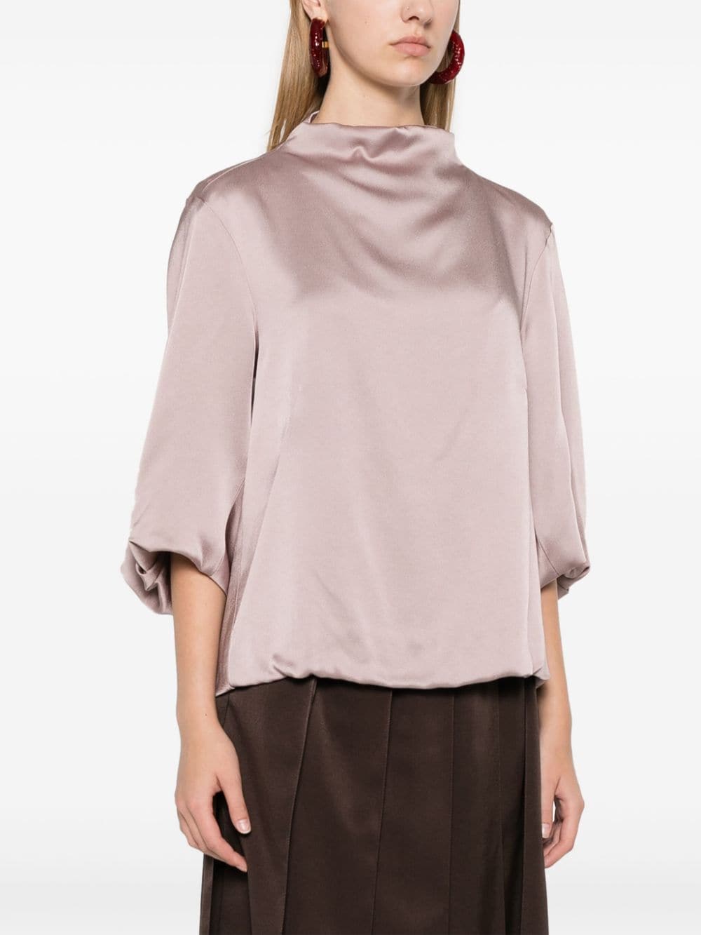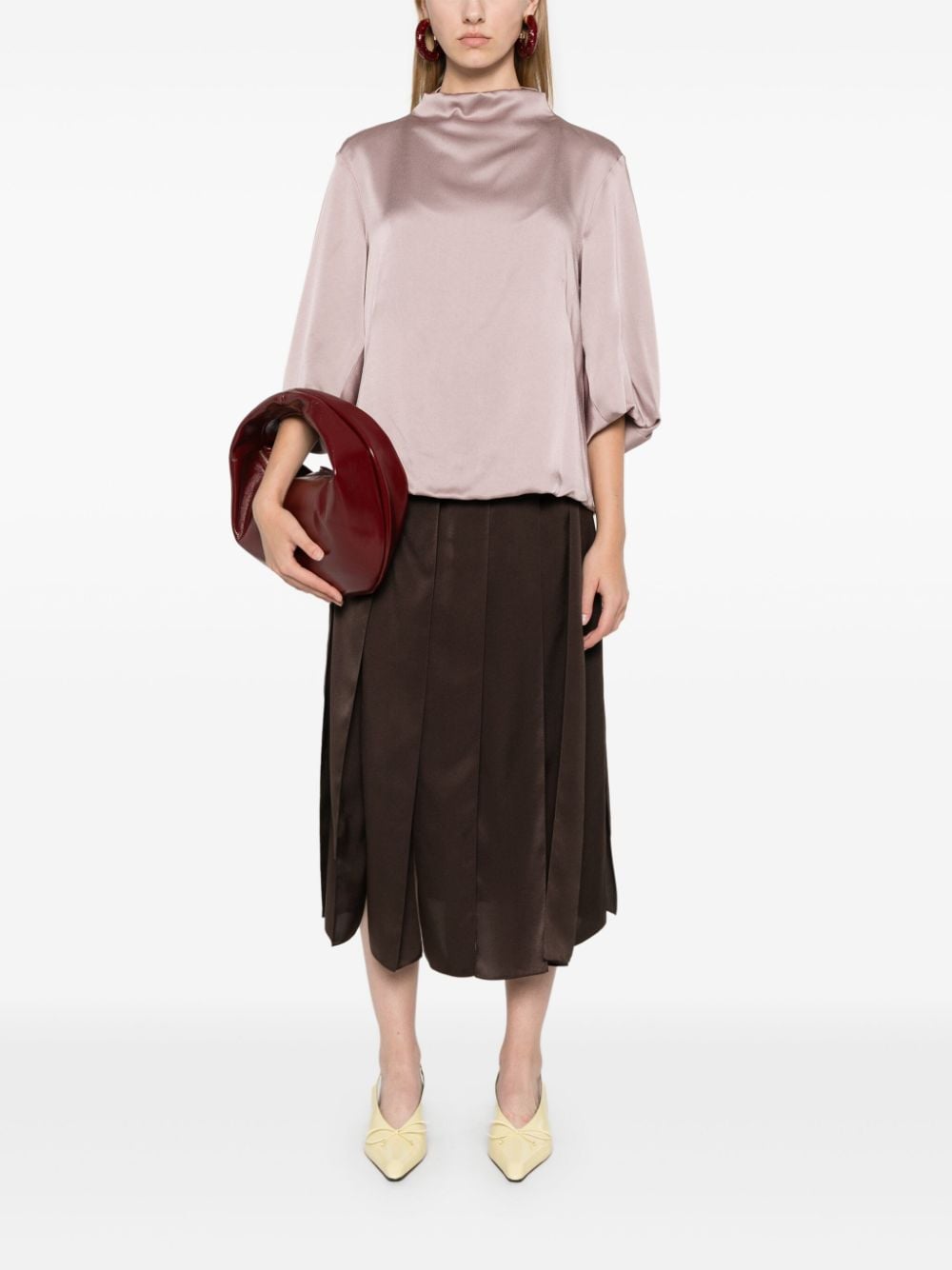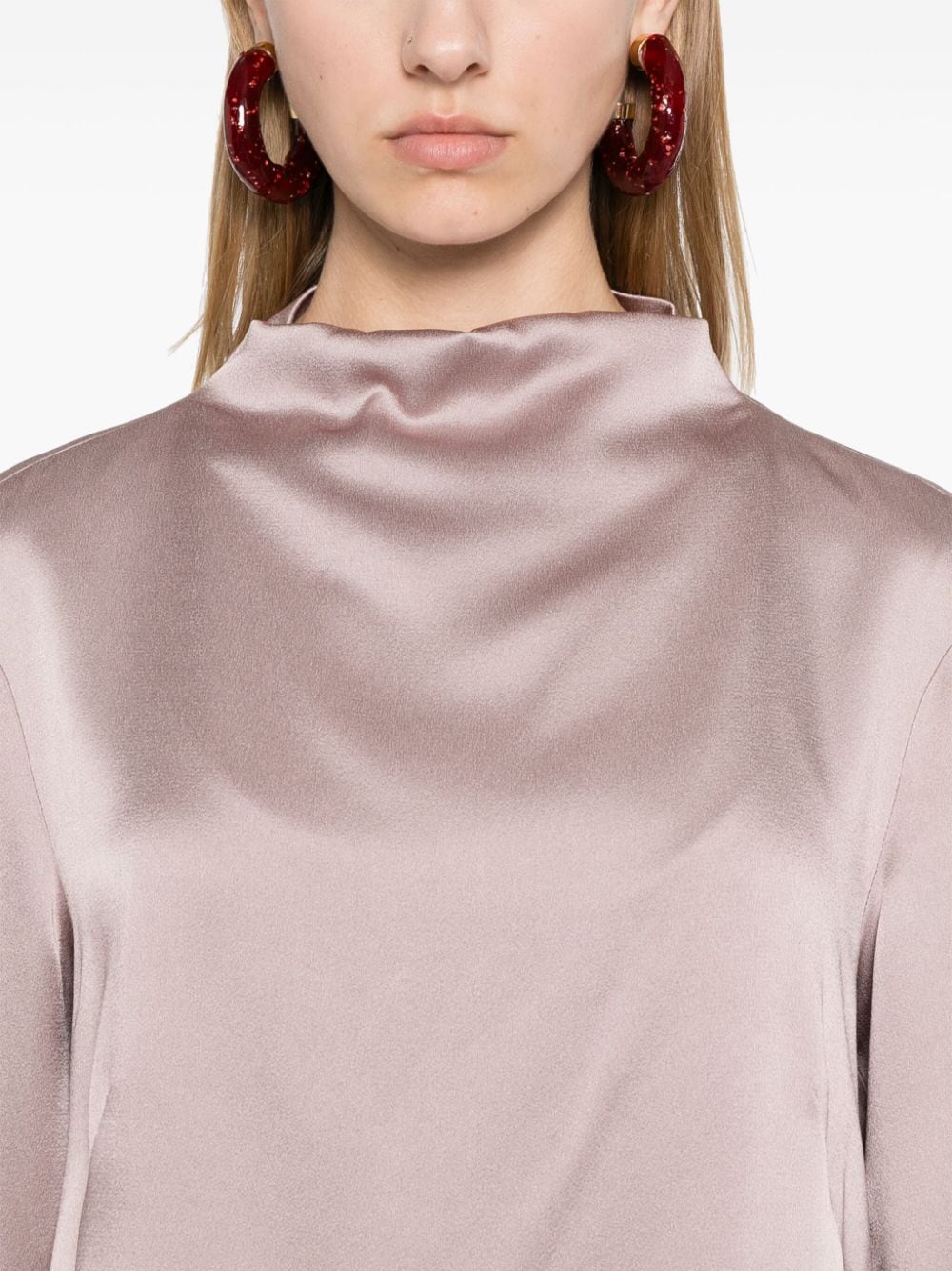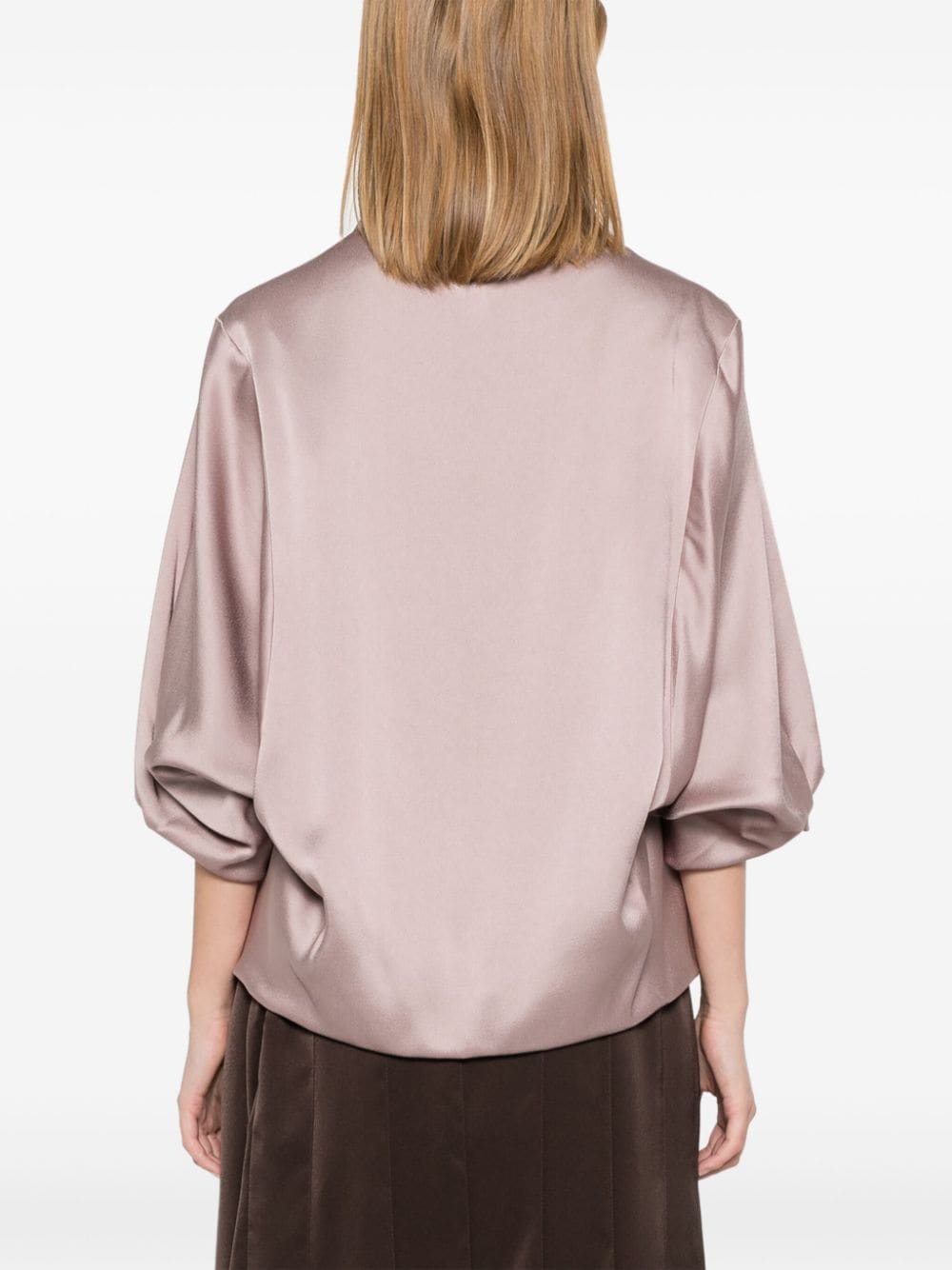blusa, collo a cratere, chiusura con bottoncini dietro al collo, satin, manica ampia a tre quarti con bordo drappeggiato, fondo con lato posteriore più lungo, foderata, vestibilità comoda Composizione: 73% acetato 27% viscosa Istruzioni per il lavaggio: lavare a secco