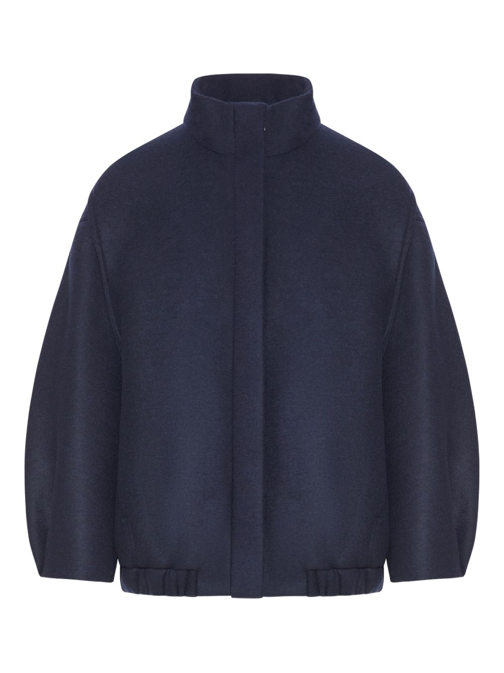 bomber, chiusura con zip coperta, collo alto, tasche laterali, maniche lunghe, fondo con elastico, lato posteriore ampio
