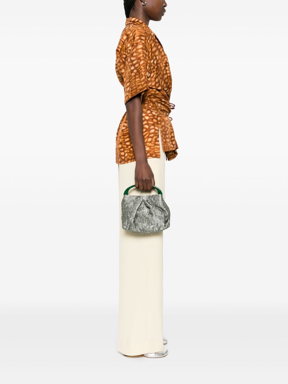 borsa, manico rigido, tracolla staccabile, tasca interna, chiusura con magnete, tessuto ad effetto stropicciato Composizione: fibre tessili, pelle