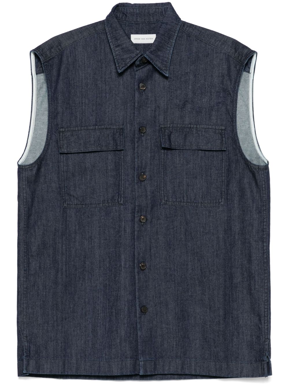 camicia, colletto a punta, chiusura con bottoni, denim, senza maniche, tasche frontali con pattineComposizione: 100% cotoneIstruzioni per il lavaggio: lavare in lavatrice