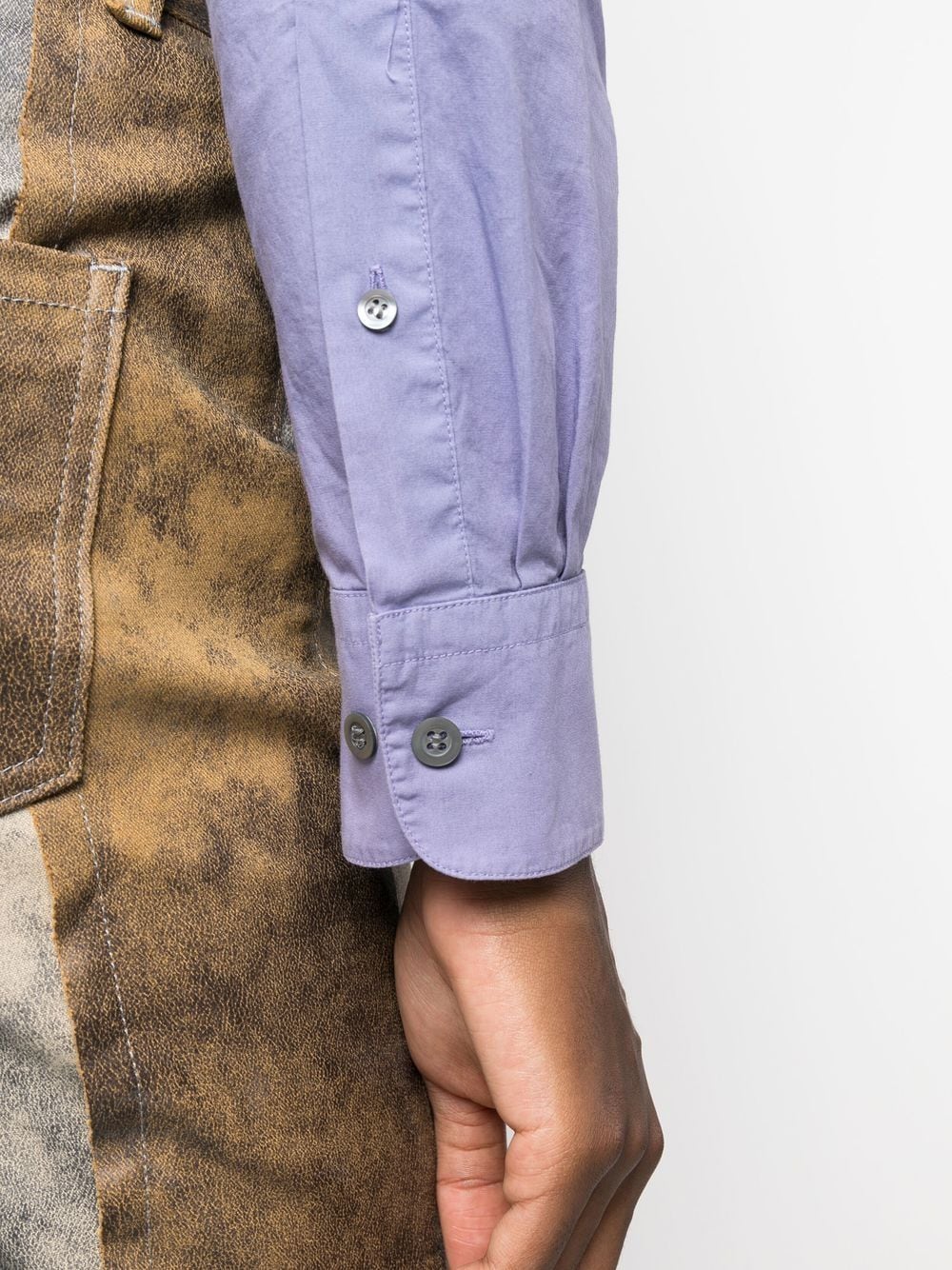 camicia, popeline, senza collo, fiocco, manica lunga con polsini, spalla con pences, bottoni coperti,