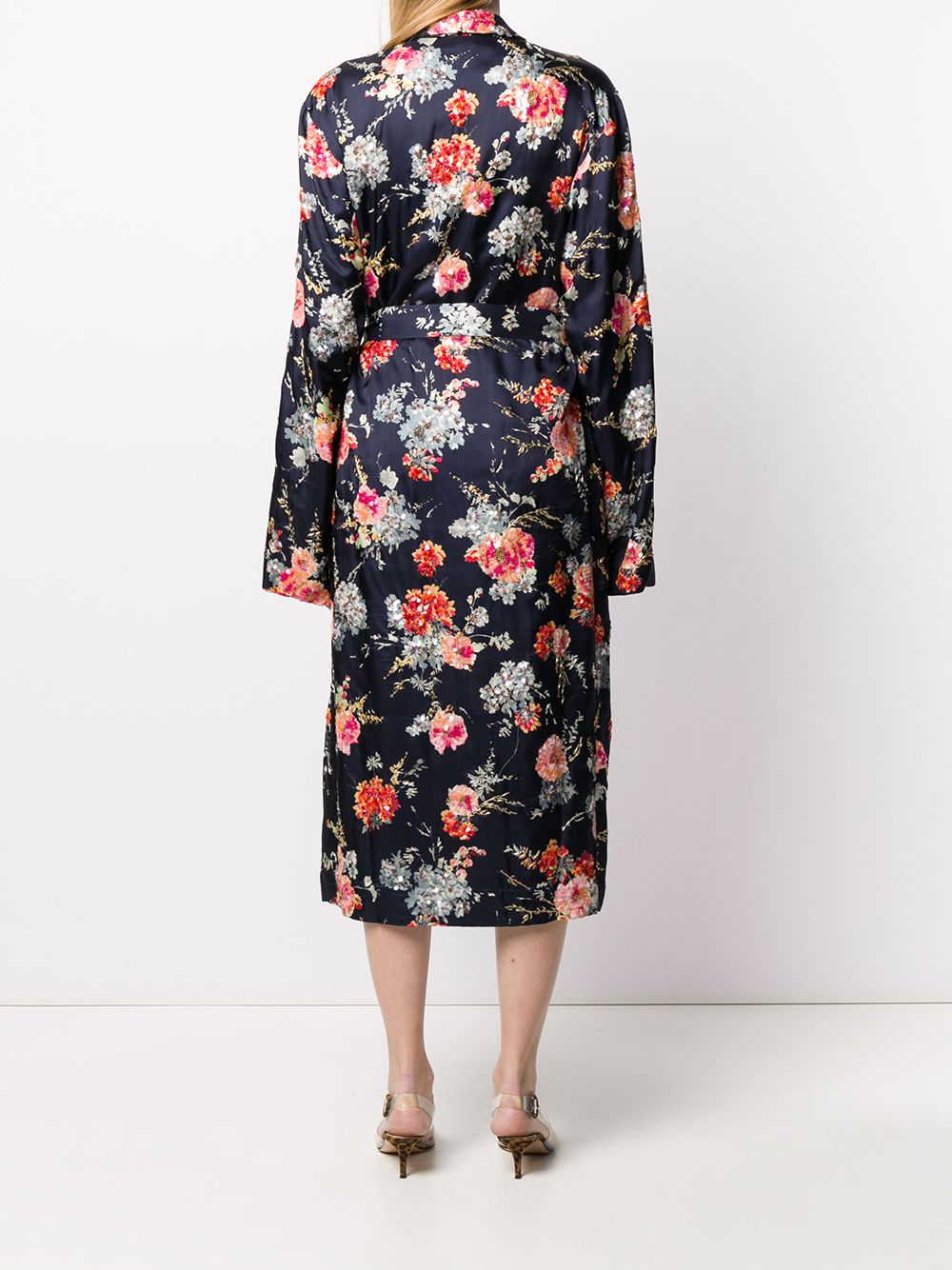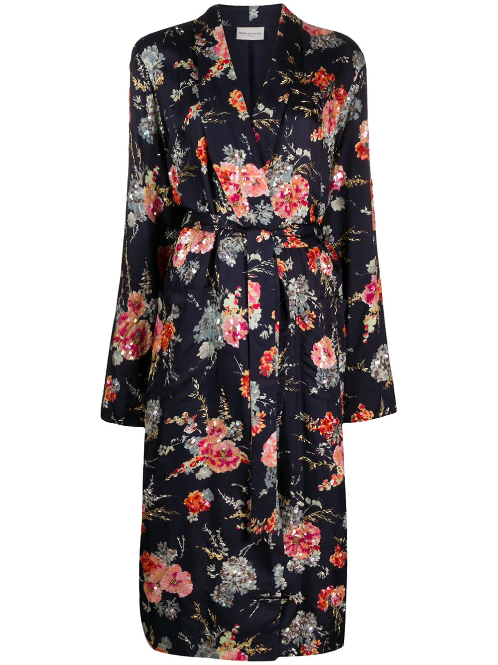 Cappotto fantasia floreale di Dries Van Noten, con applicazioni di paillettes. Modello senza bottoni, con 2 tasche e cintura. Composizione Viscosa 100% Istruzioni per il lavaggio Lavare a secco