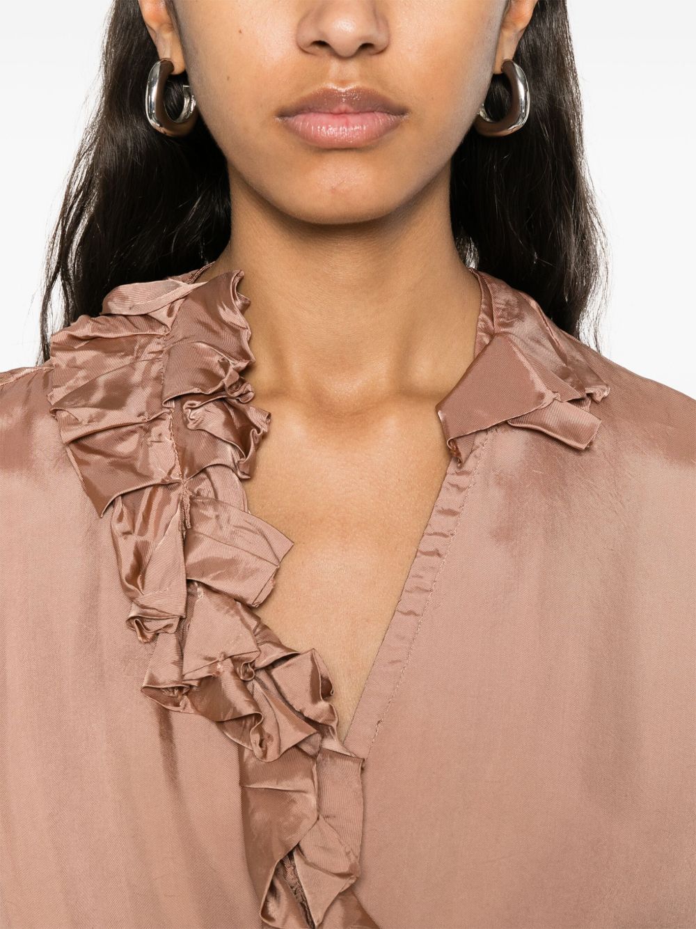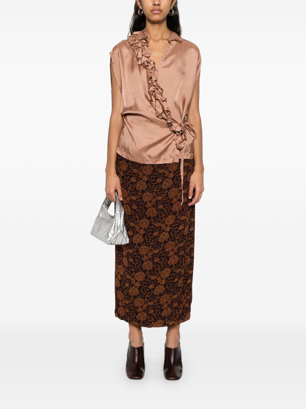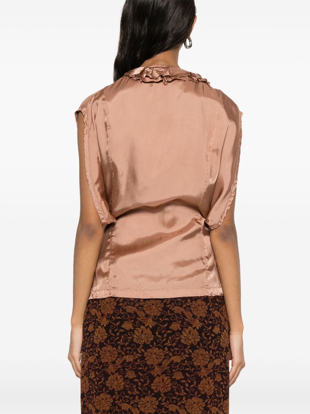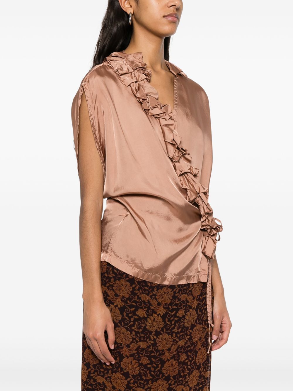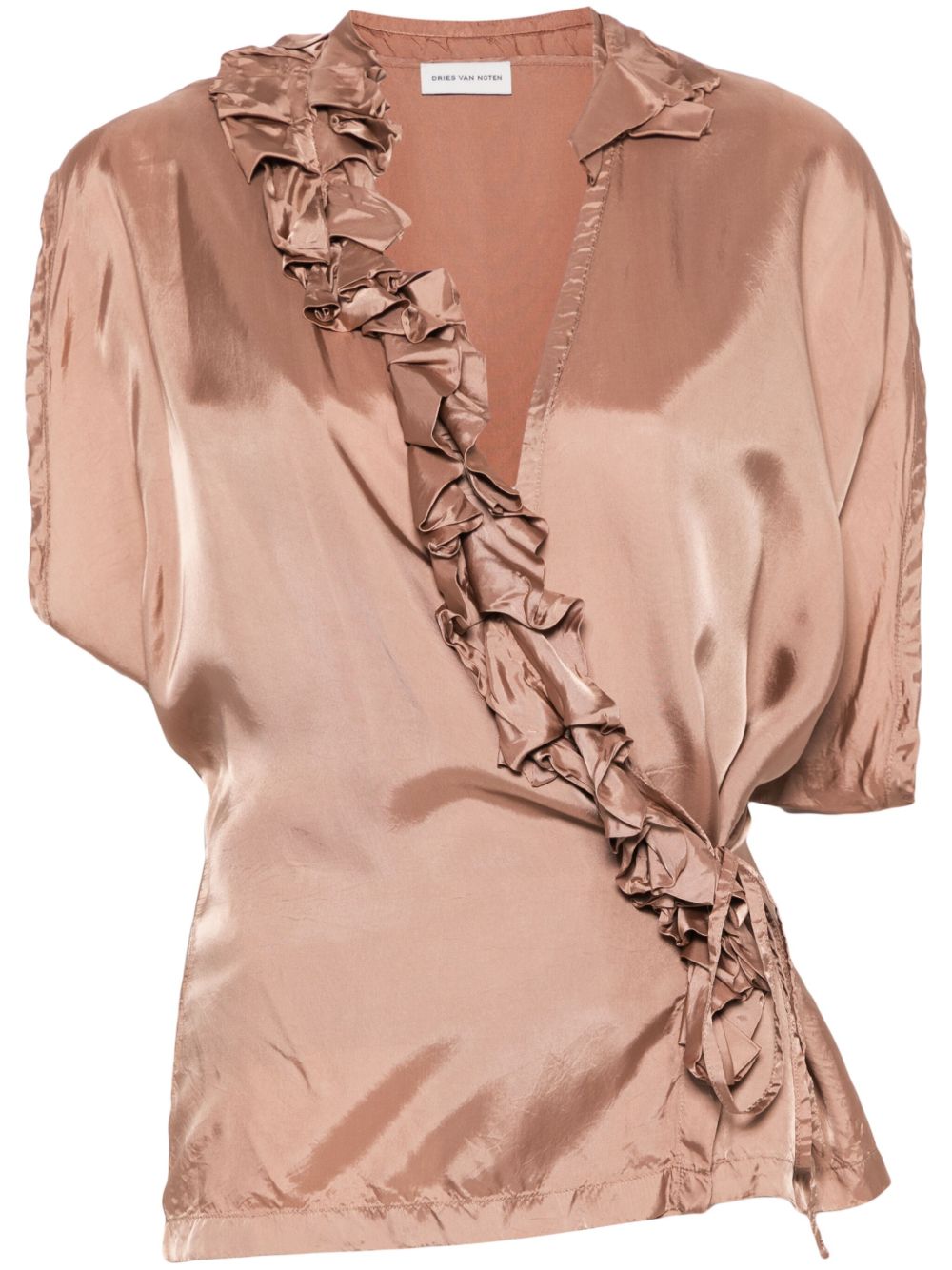 top, senza maniche, scollo a v, chiusura a portafoglio con lacci, bordo con rouchesComposizione: 100% viscosaIstruzioni per il lavaggio: lavare a secco