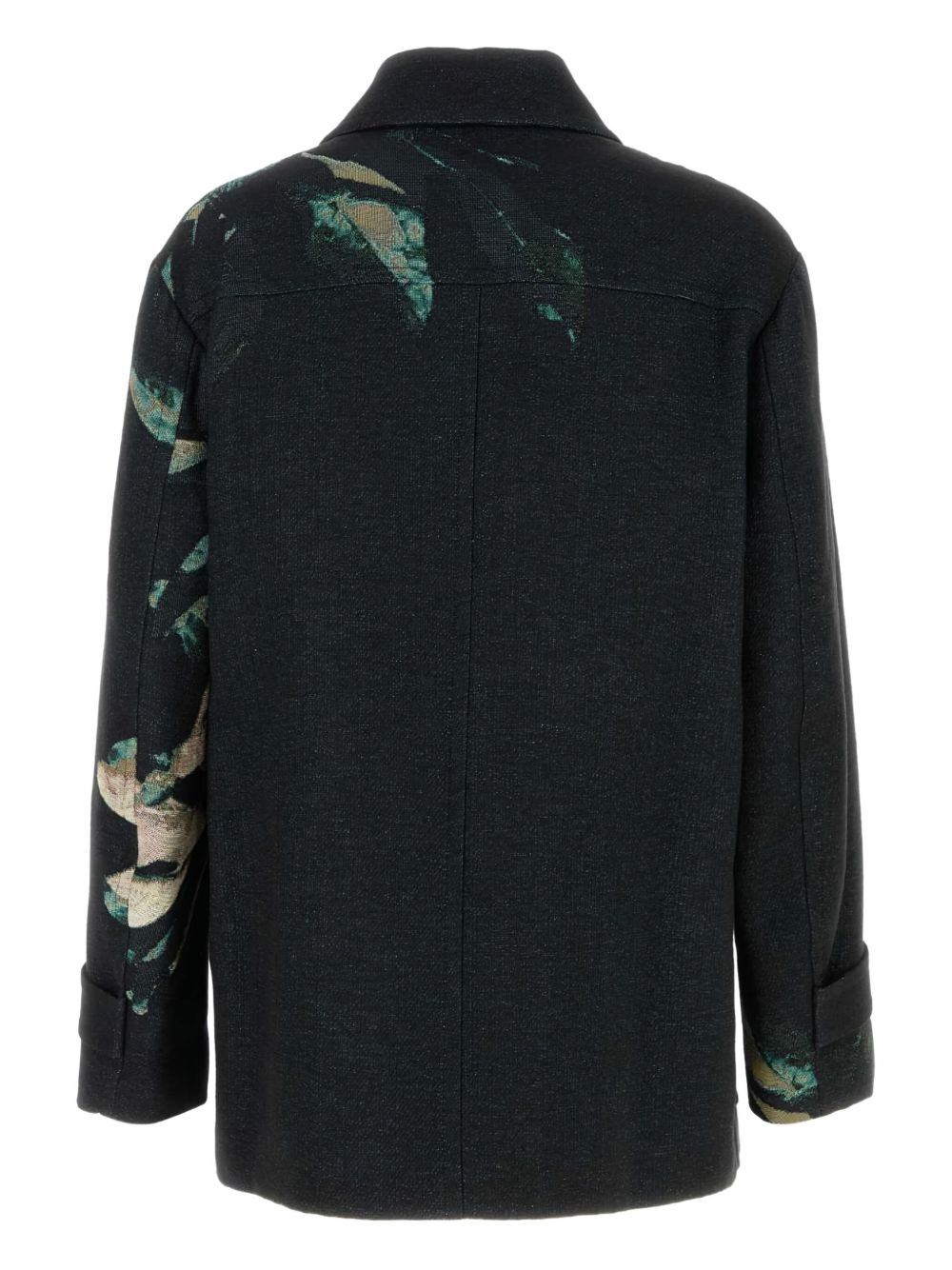 giaccone, tessuto con lavorazione jaquard, colletto, chiusura con bottoni, tasche laterali applicate, manica lunga, polsi con cinturini e bottoni, interno imbottito, tasche interne
