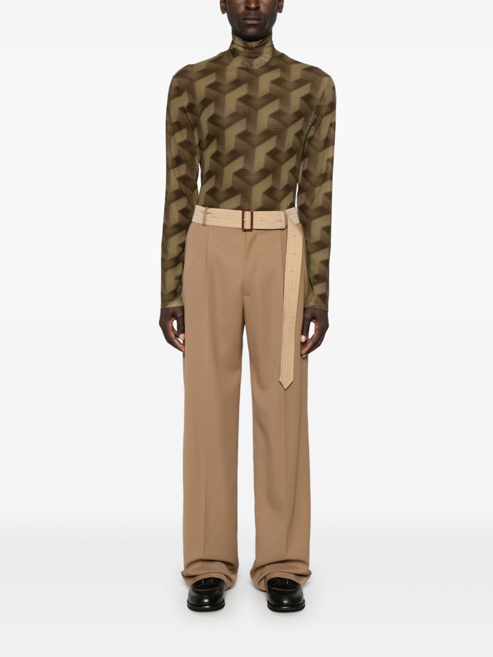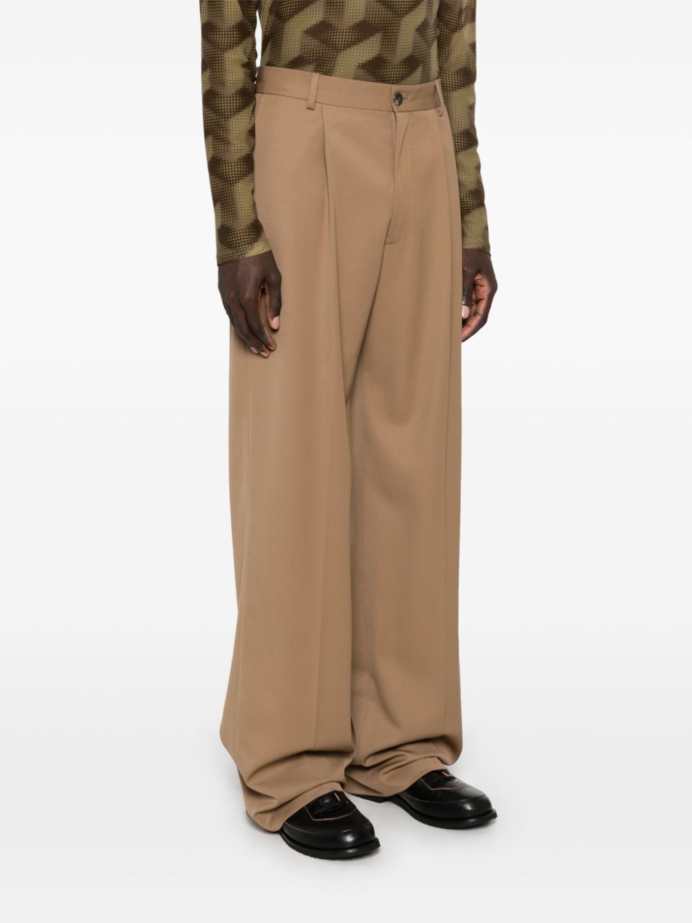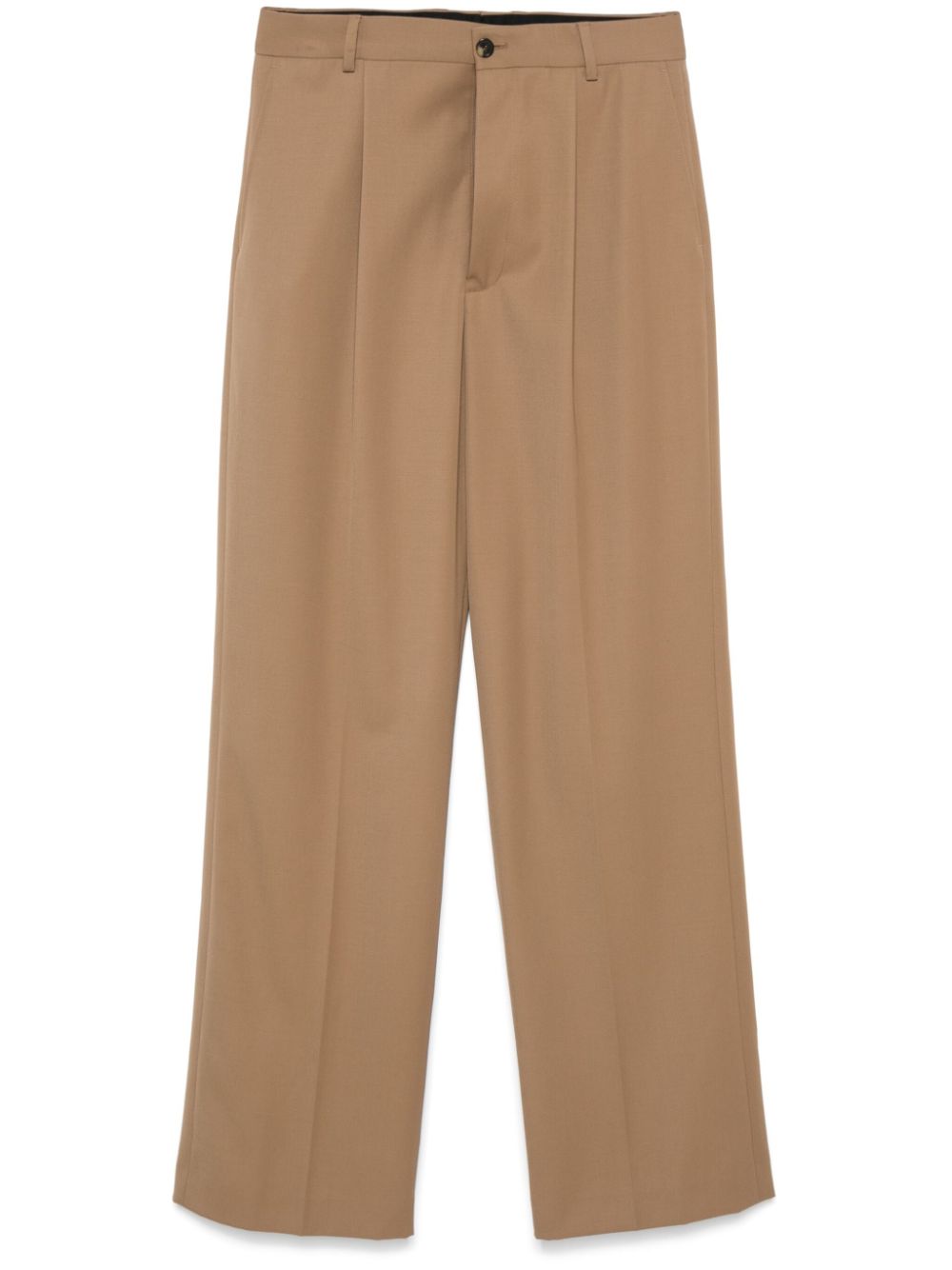 pantalone sartoriale, passanti per cintura, chiusura con bottone e zip, pences, tasche laterali, tasche posteriori con bottone, gamba larga Composizione: 100% lana Istruzioni per il lavaggio: lavare a secco