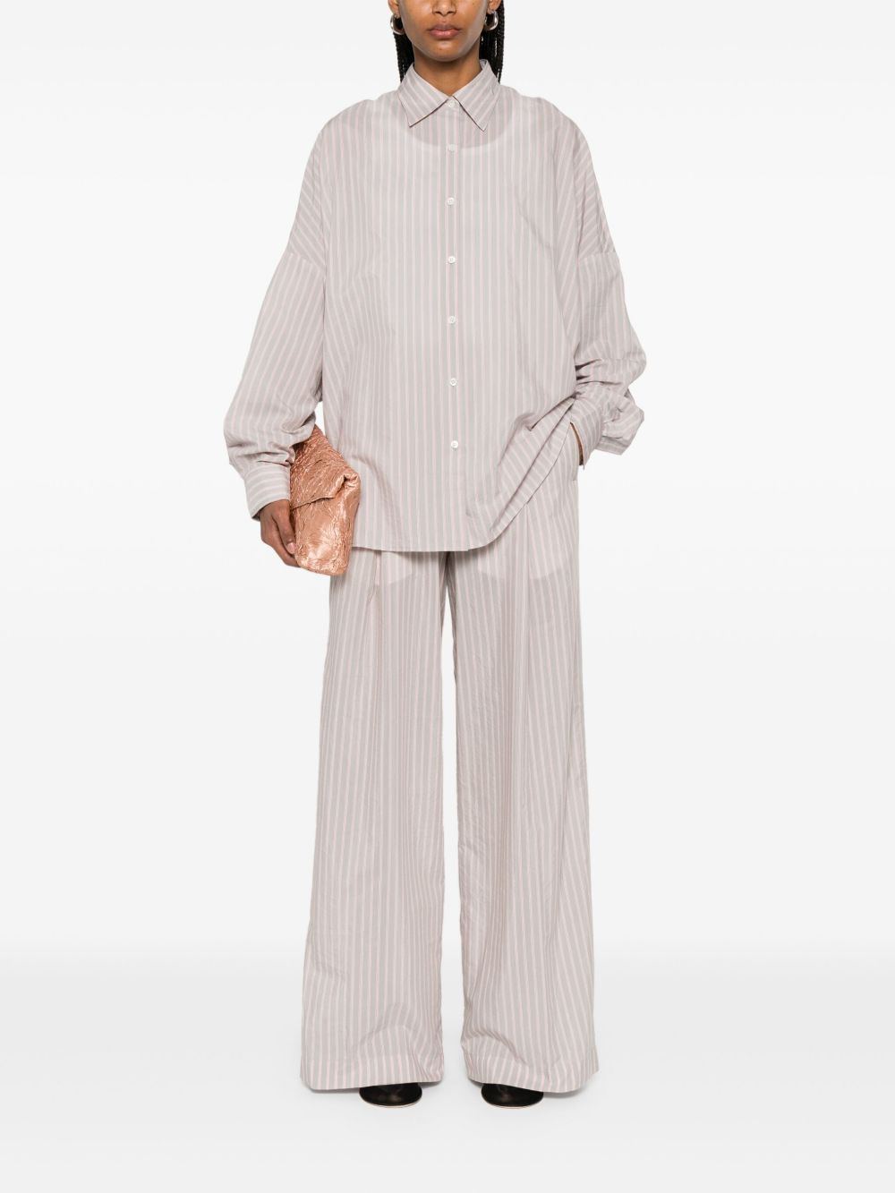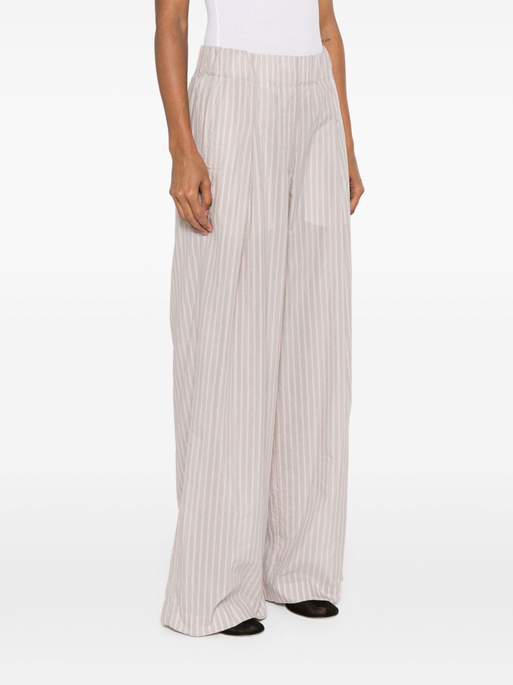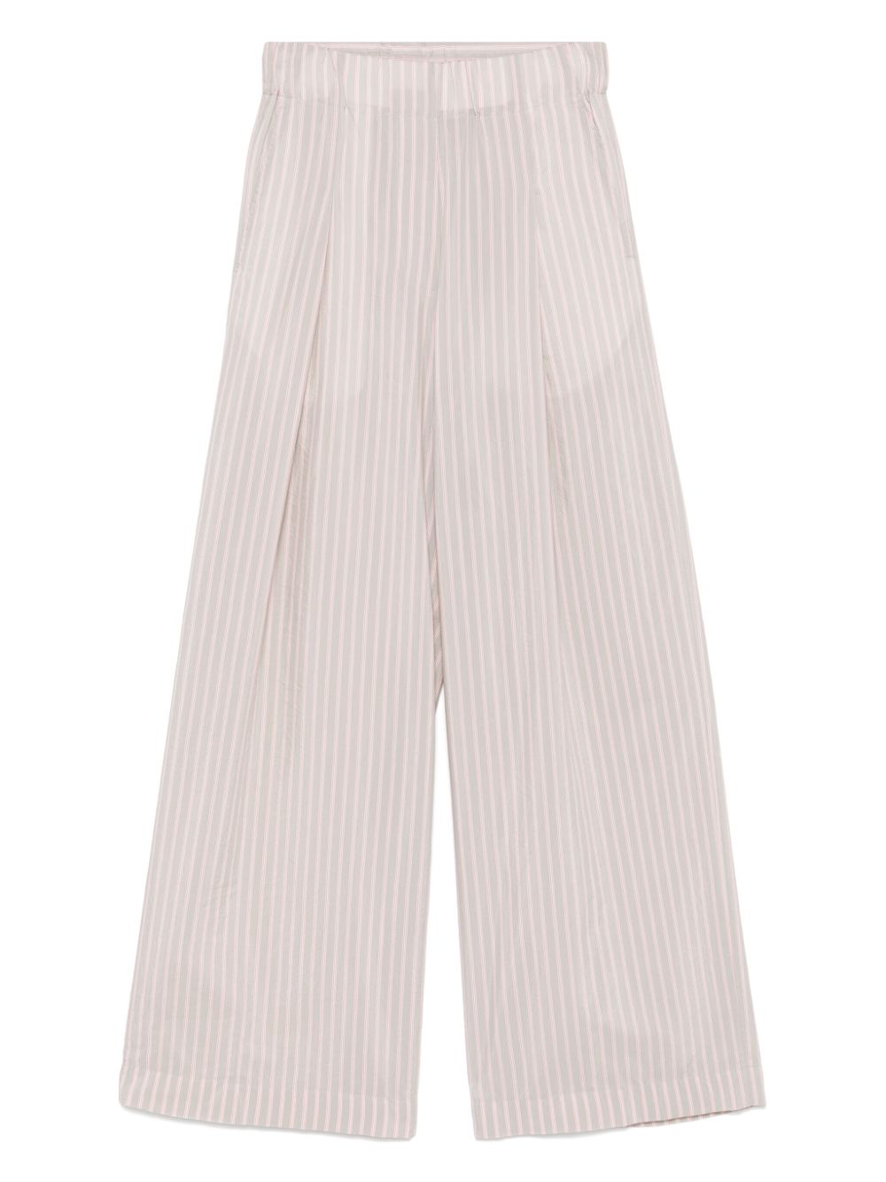 pantalone, tessuto a righe, vita elasticizzata con coulisse interna, tasche laterali, gamba larga, tasca posterione con bottoneComposizione: 65% cotone, 45% cuproIstruzioni per il lavaggio: lavare a secco