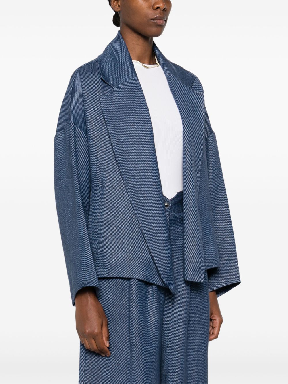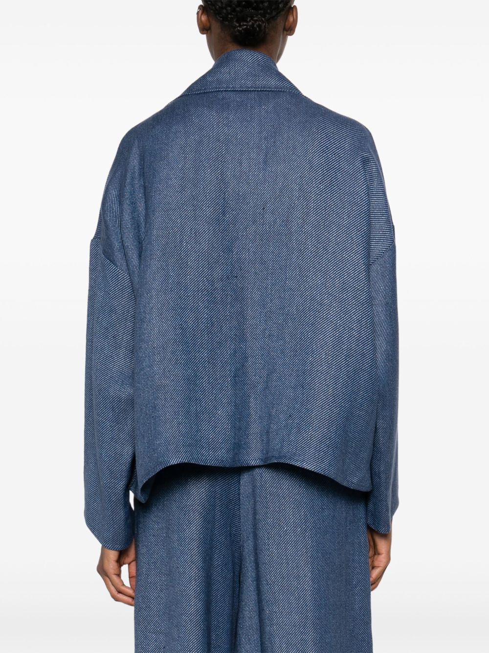 giacca , oversize, tessuto drill, lavorazione double, revers classico, senza chiusura, tasche laterali, manica lungaComposizione:100% linoIstruzioni per il lavaggio: lavare a secco