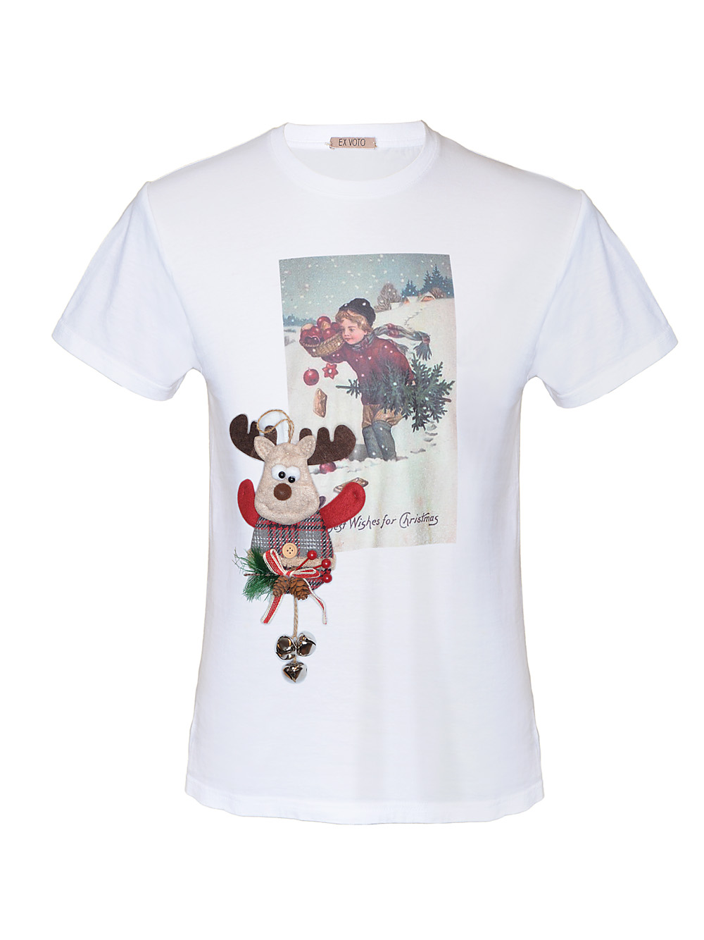 t-shirt, girocollo, manica corta, stampa, applicazione in tessuto con campanelli in metallo Composizione: 100% cotone Istruzioni per il lavaggio: lavare a mano in acqua fredda oppure a secco