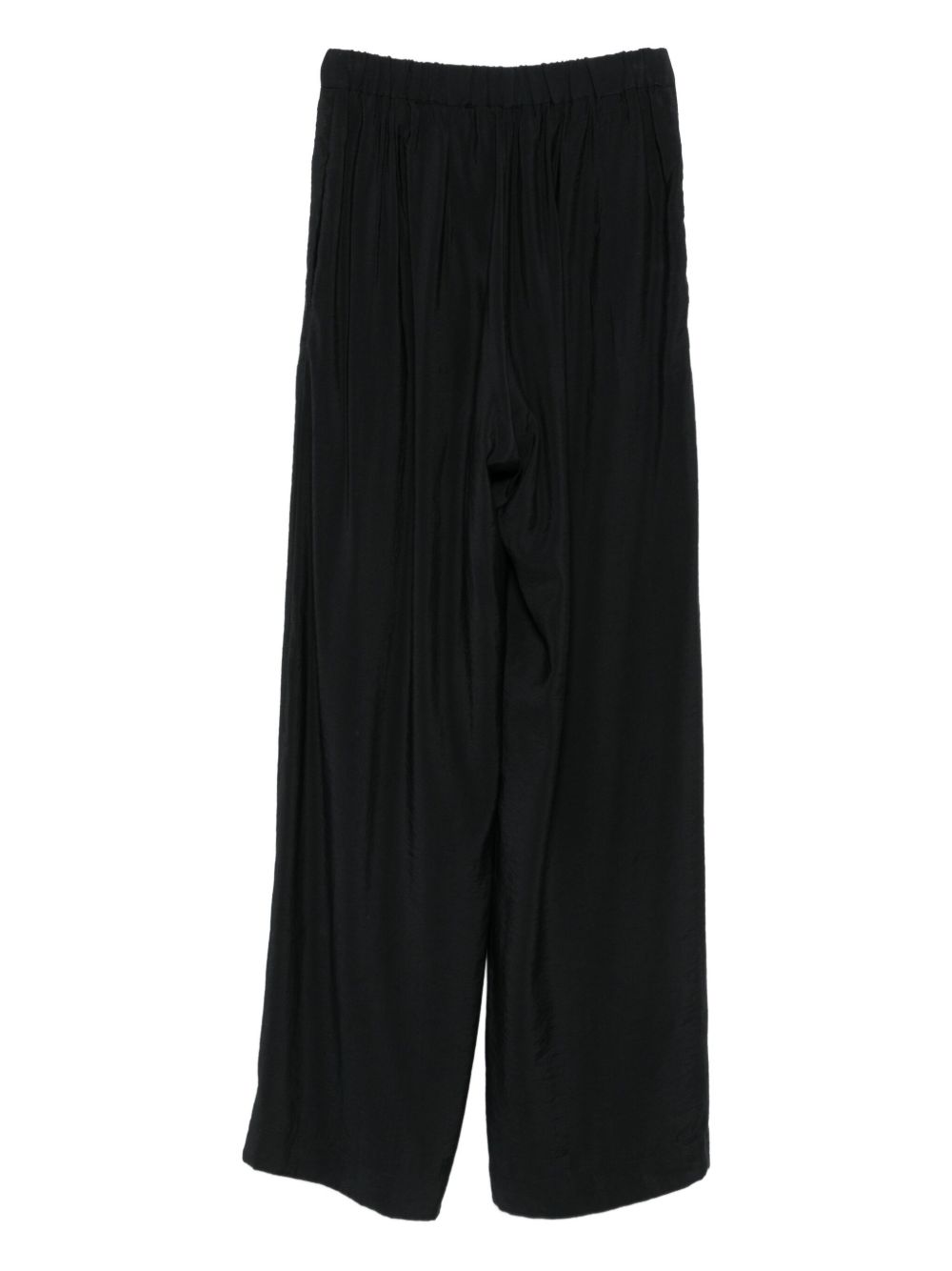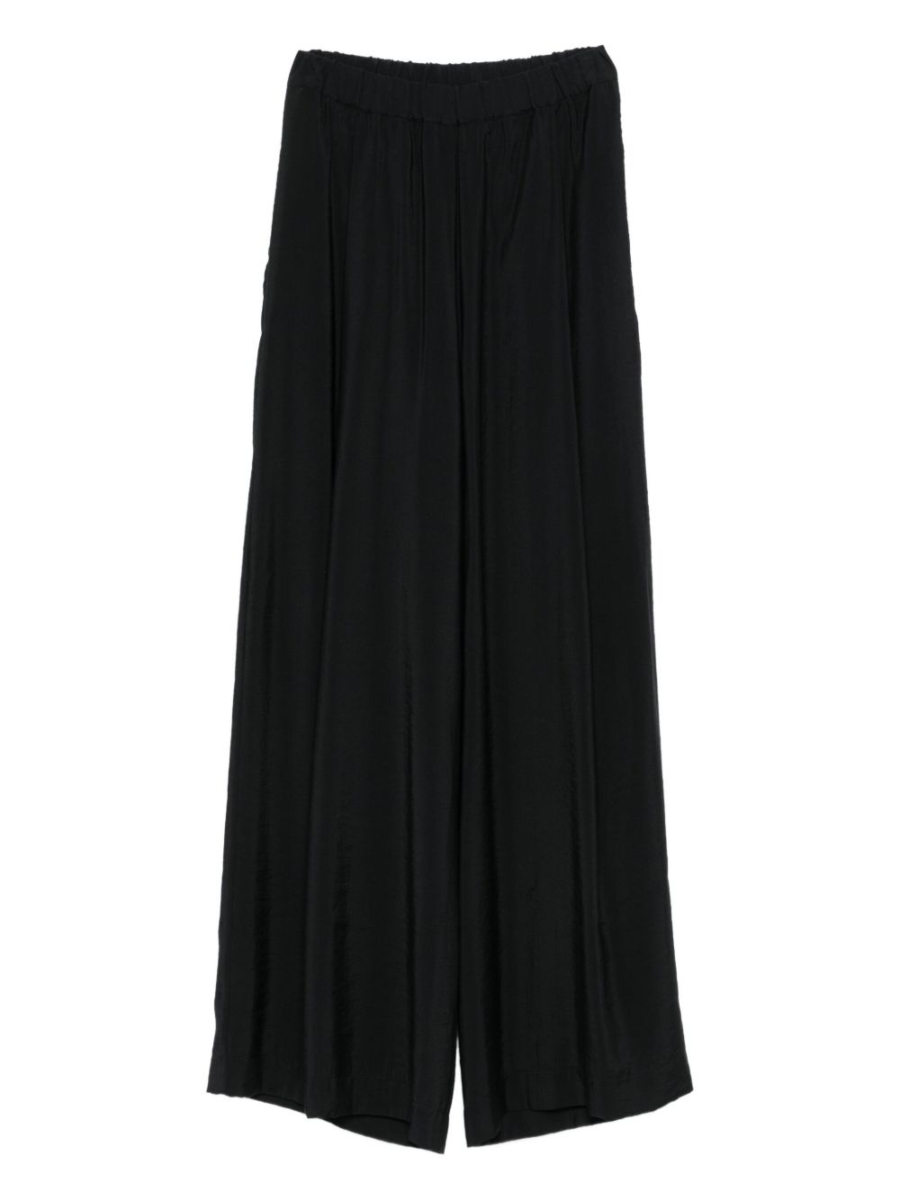 pantalone, vita elasticizzata, tasche laterali, tessuto fluido, foderato, gamba larga