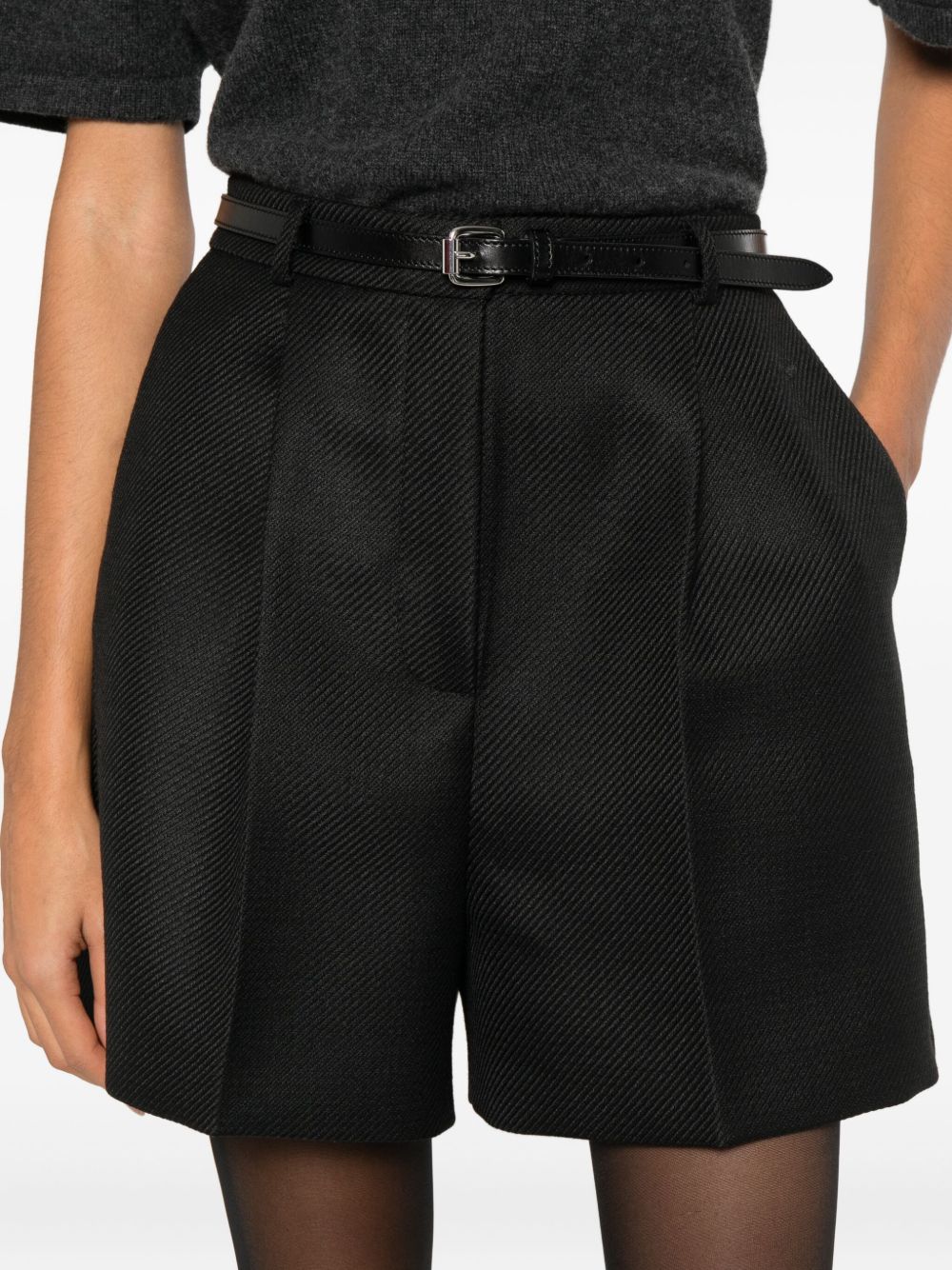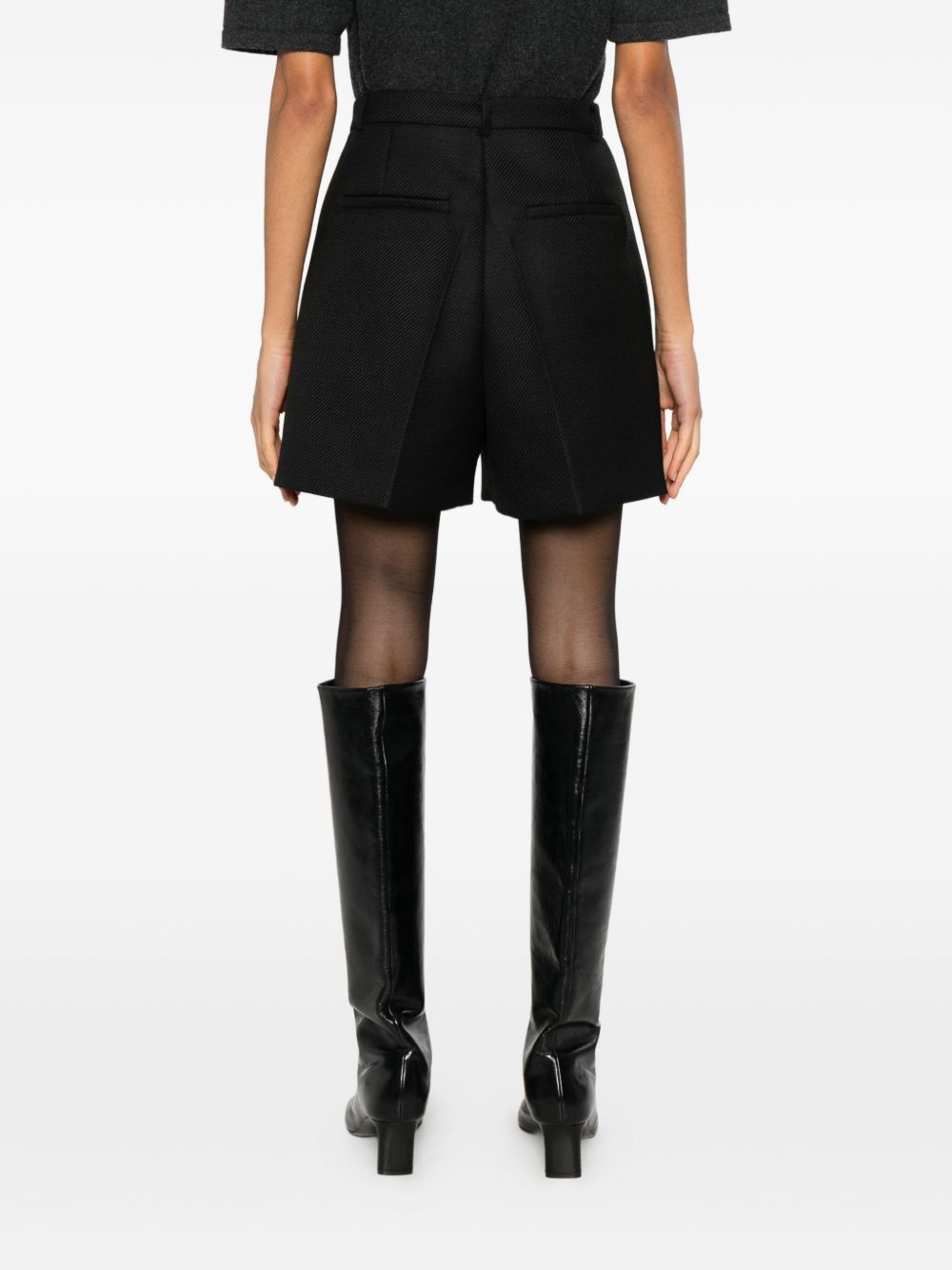 shorts sartoriale, tessuto drill, passanti, chiusura con gancio e zip, pences, gamba larga, tasche laterali e posteriori Composizione: 65% poliestere, 35% lana vergine Istruzioni per il lavaggio: lavare in lavatrice