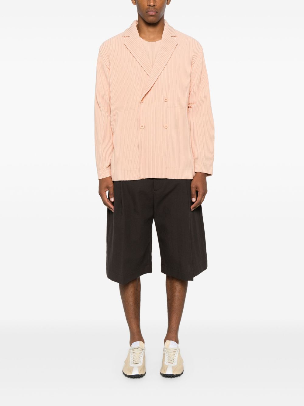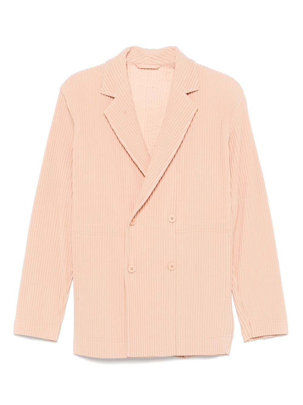 giacca, revers classico, chiusura a doppio petto, tasche laterali, spacchi laterali, manica lunga, polsi con bottone e asola aperta, tessuto plissé