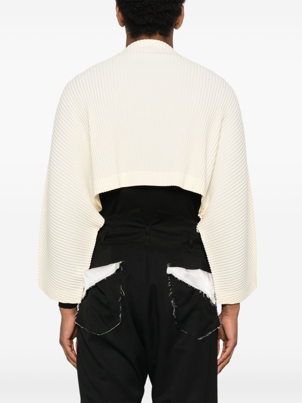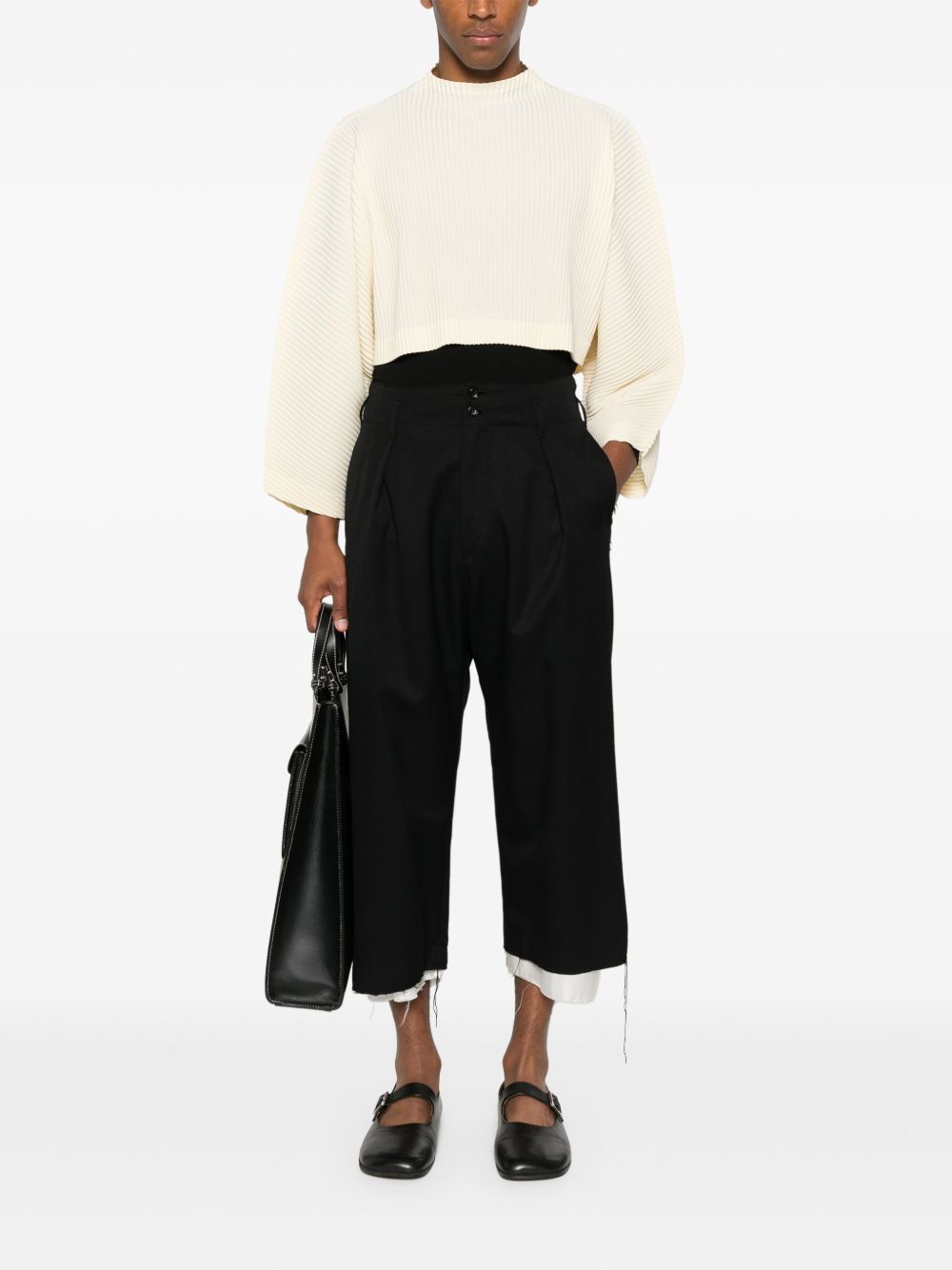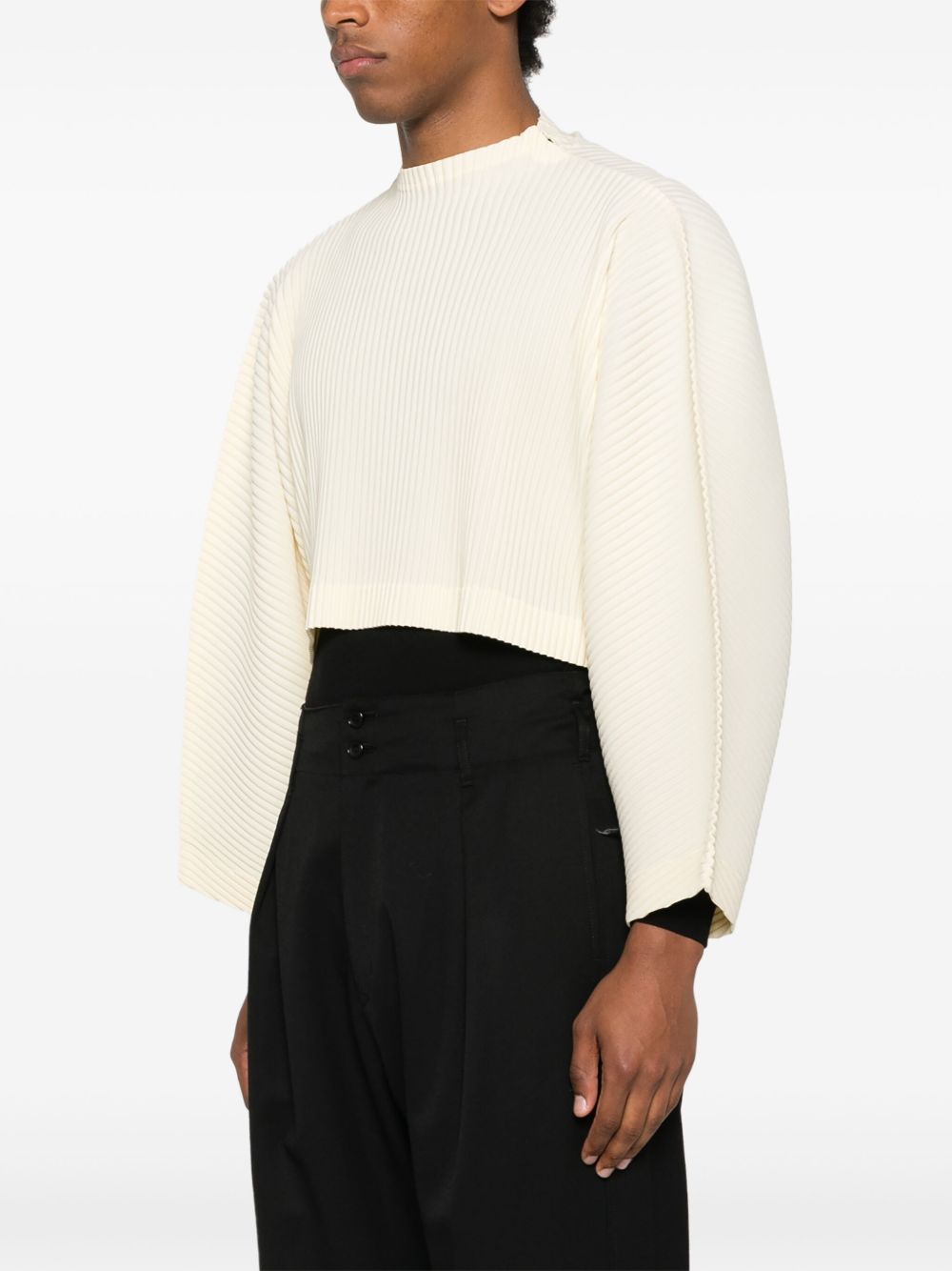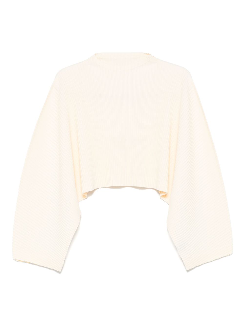 maglia, girocollo, design crop, manica lunga e ampia, tessuto plissé