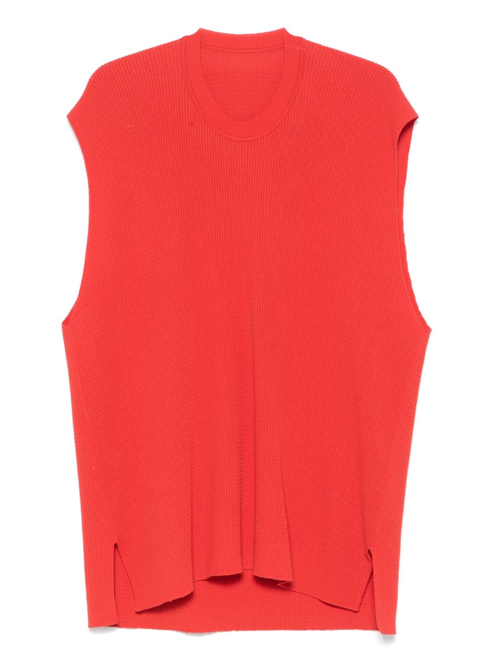 maglia, girocollo, vestibilità ampia, senza maniche, spacchi laterali, lavorazione a costine Composizione: 100% cotoneIstruzioni per il lavaggio: lavare a mano