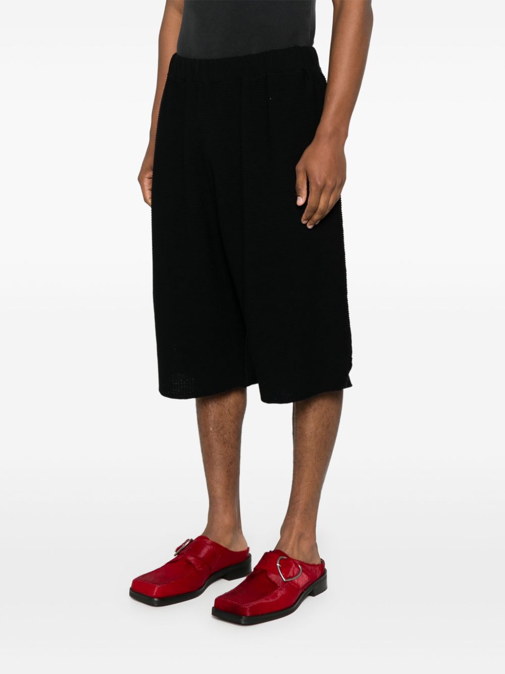 shorts, maglia , gamba larga, fondo con piccoli spacchi laterali, lavorazione a costine , vita con elastico e coulisse interna, tasche laterali