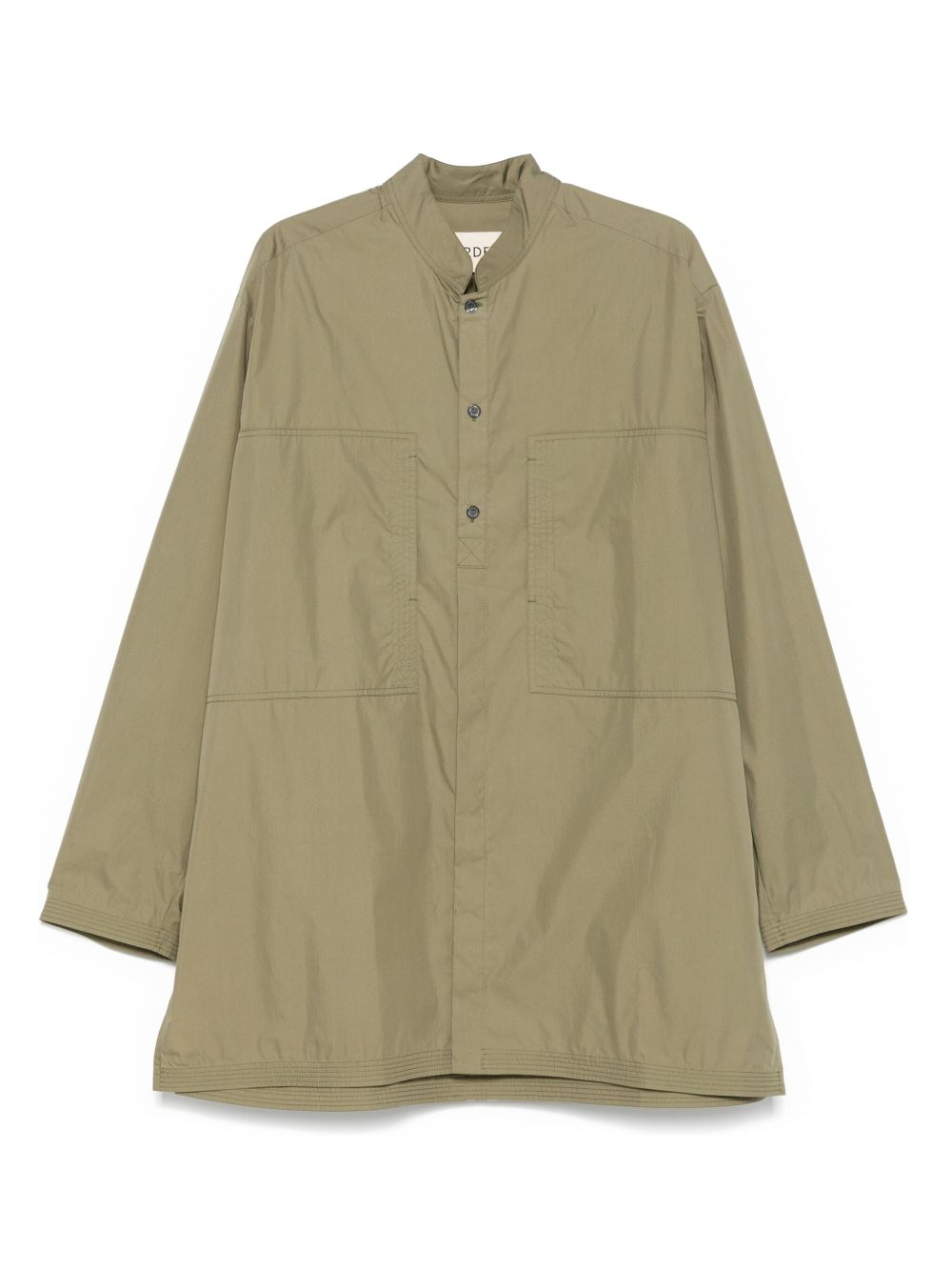 camicia, collo orientale, manica lunga, chiusura con bottoni, tasche frontali verticali, riga posteriore in contrasto, spacchi laterali, vestibilità ampia Composizione: 67% cotone, 33% poliammide Istruzioni per il lavaggio: lavare in lavatrice