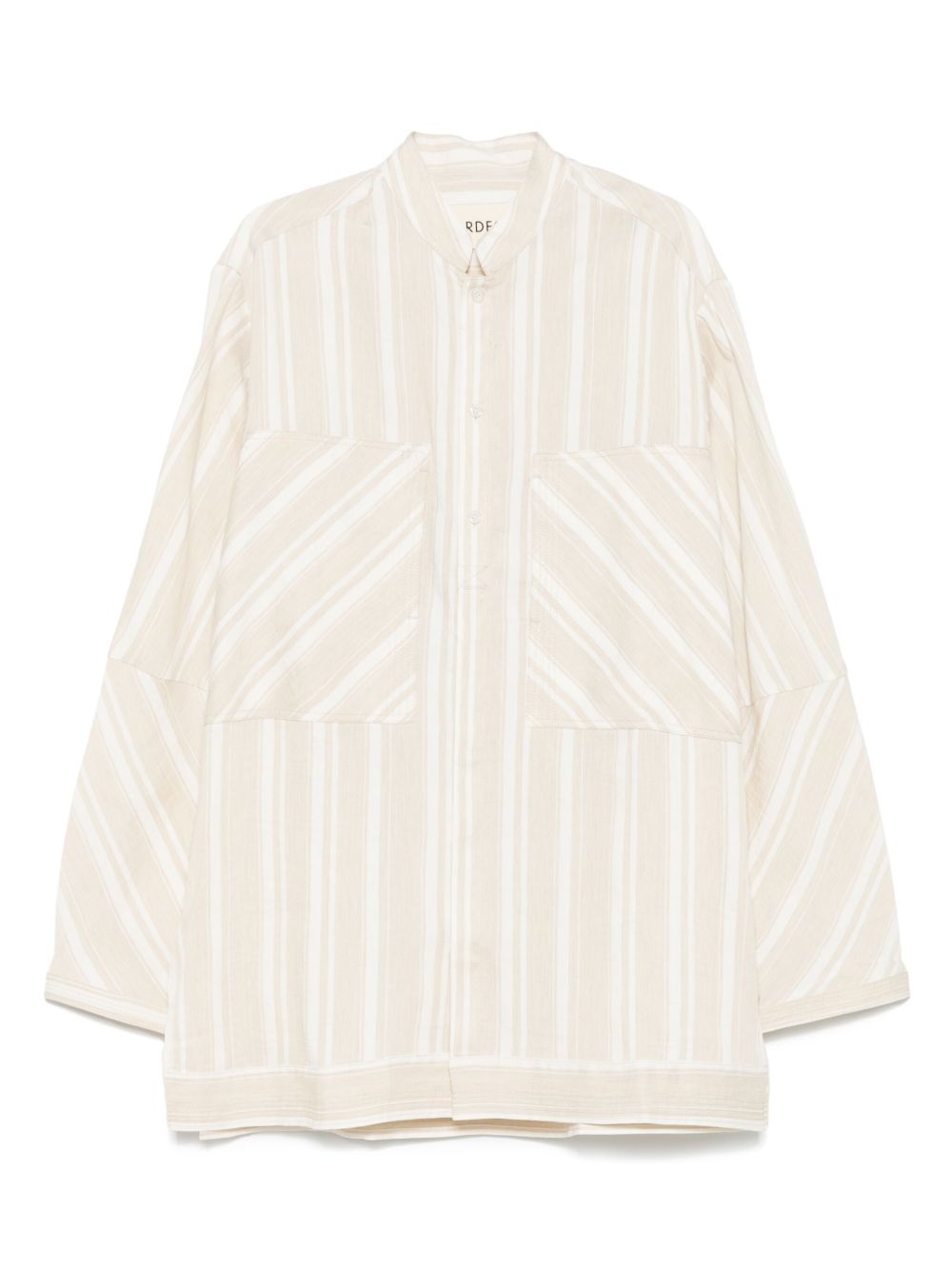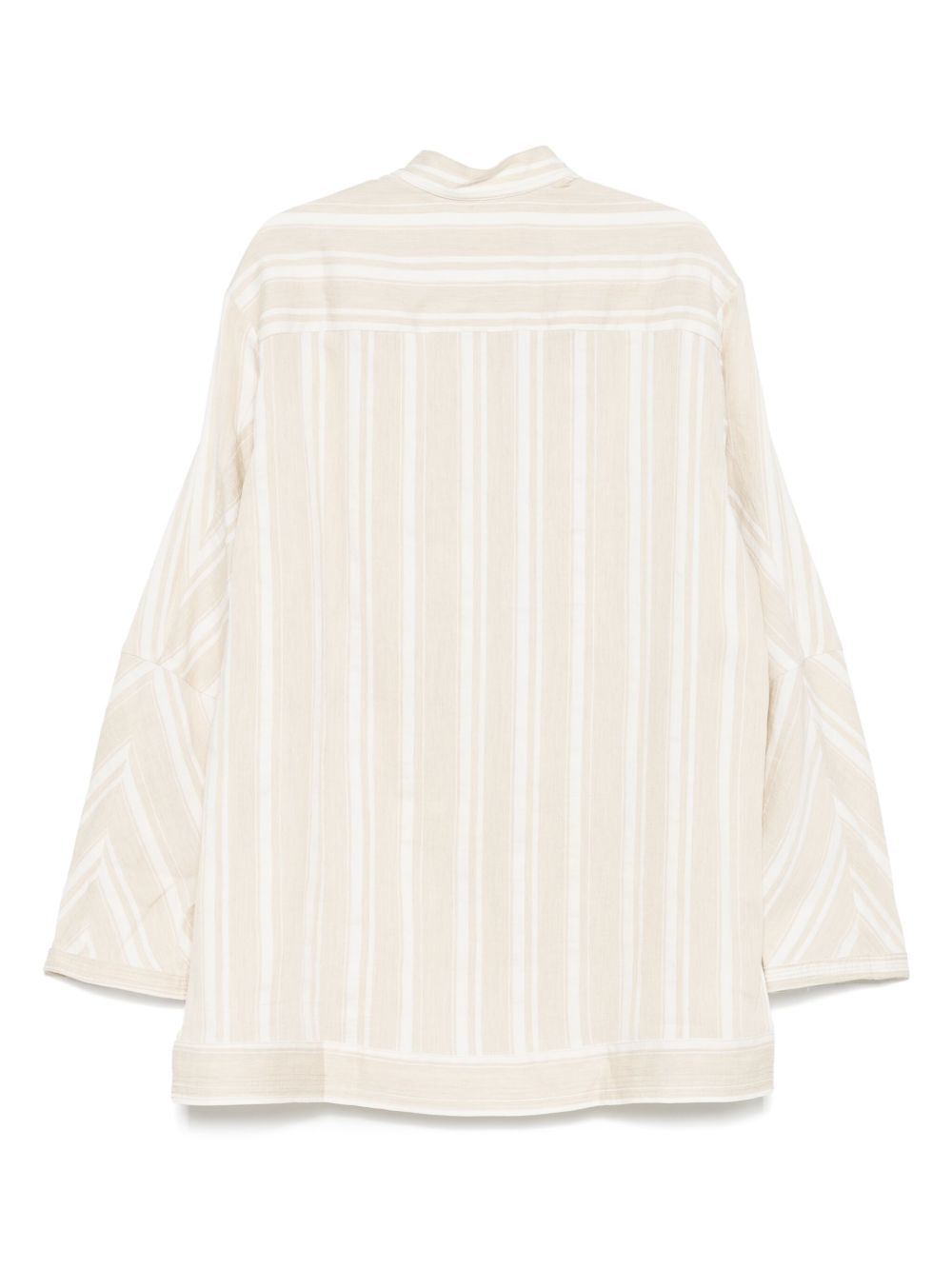 camicia, colletto orientale , tessuto a righe, tasche verticali su petto, chiusura con bottoni a vista e nascosta, maniche lunghe, spacchi lateraliComposizione: 54% lino, 15% cotone, 11% poliamideIstruzioni per il lavaggio: lavare a secco