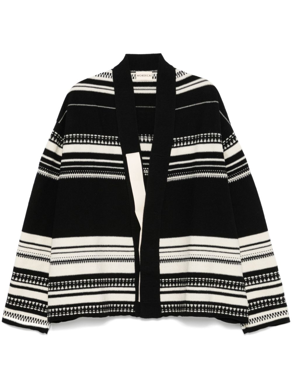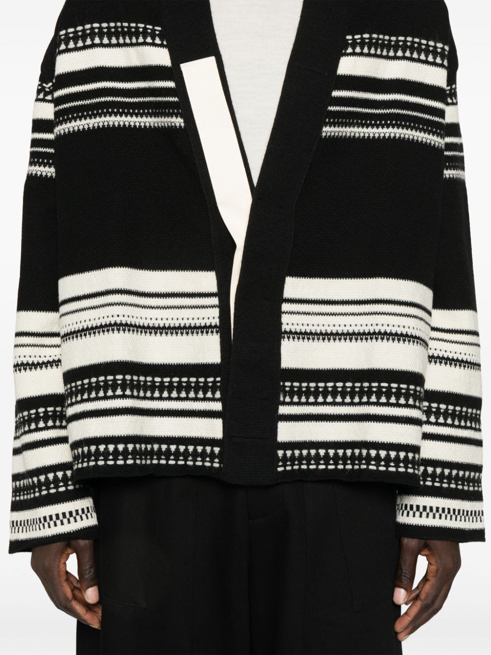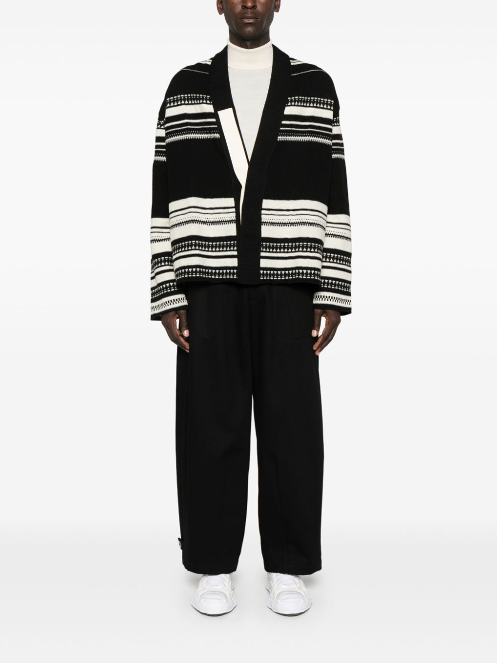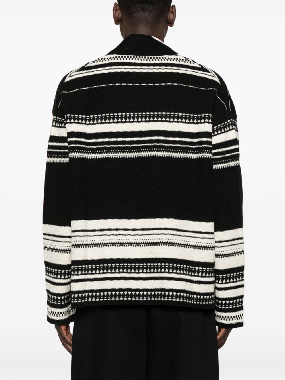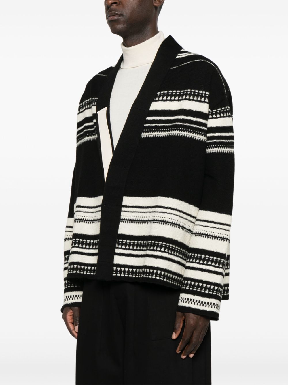 cardigan, oversize, lavorazione jaquard a righe in contrasto, scollo a v, manica lunga, chiusura con bottoni cuciti su gros grain Composizione: 100% lana vergineIstruzioni per il lavaggio: lavare a secco
