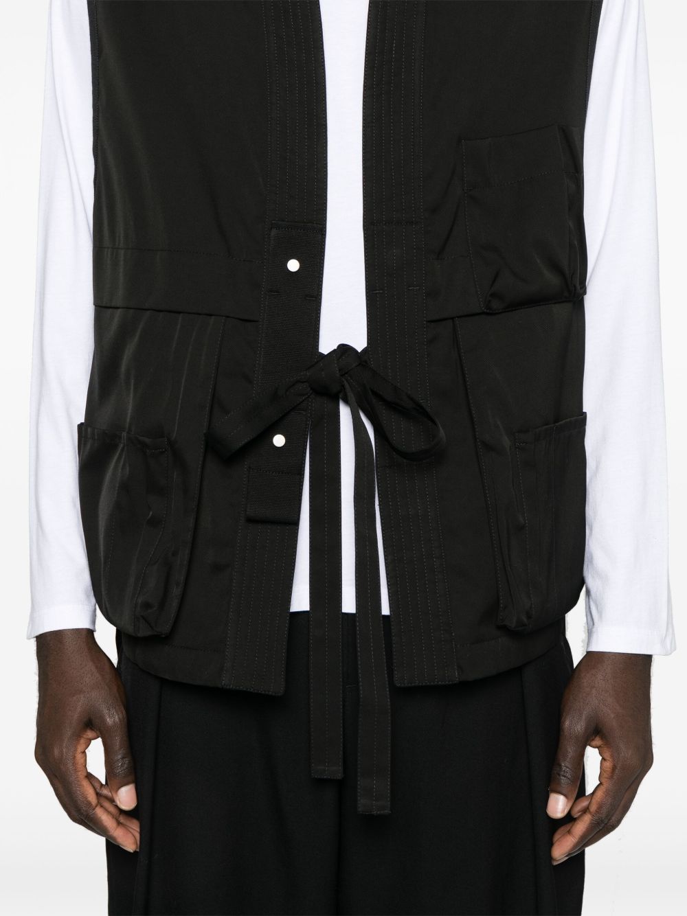 kimono gilet, senza maniche, collo sciallato, multi tasche, design con lacci, retro con riga a contrasto e metà imbottitura Composizione: 68% poliestere, 32% cotone Istruzioni per il lavaggio: lavare in lavatrice