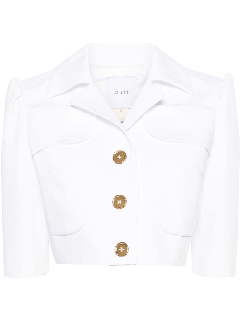 giacca corta, colletto con scollo a v, chiusura con bottoni dorati , tasche con maxi pattine, manica a 3 quarti, foderataComposizione: 100% cotoneIstruzioni per il lavaggio: lavare a secco