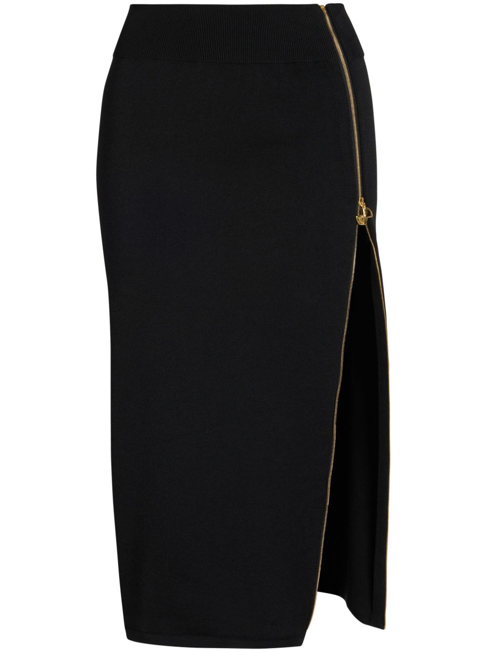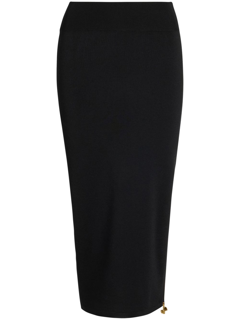 gonna a tubino in maglia, zip laterale oro con pendete logo, stretch Composizione: 81% viscosa, 19% poliammide Istruzioni per il lavaggio: lavare a mano