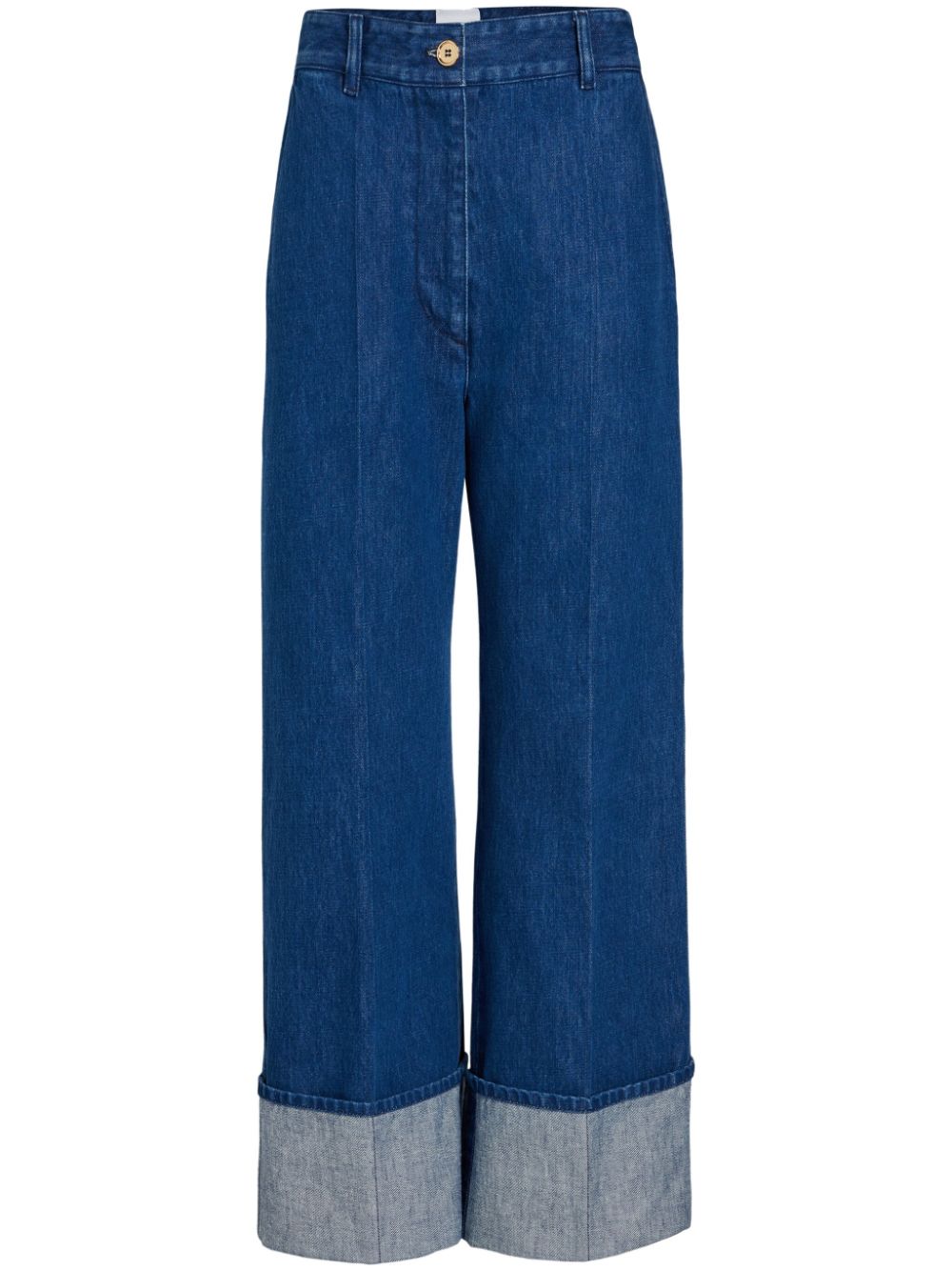 pantalone, denim lavato, tasche laterali, passanti per cintura, chiusura con bottone e zip, gamba larga, fondo con risvolto altoComposizione: 100% cotoneIstruzioni per il lavaggio: lavare a 30°