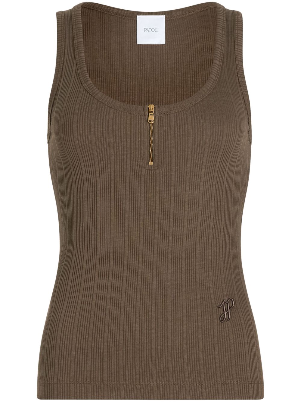 canotta , scollo ovale con zip dorata, jersey a coste, logo ricamato Composizione: 67% lyocell, 33% cotone Istruzioni per il lavaggio: lavare in lavatrice