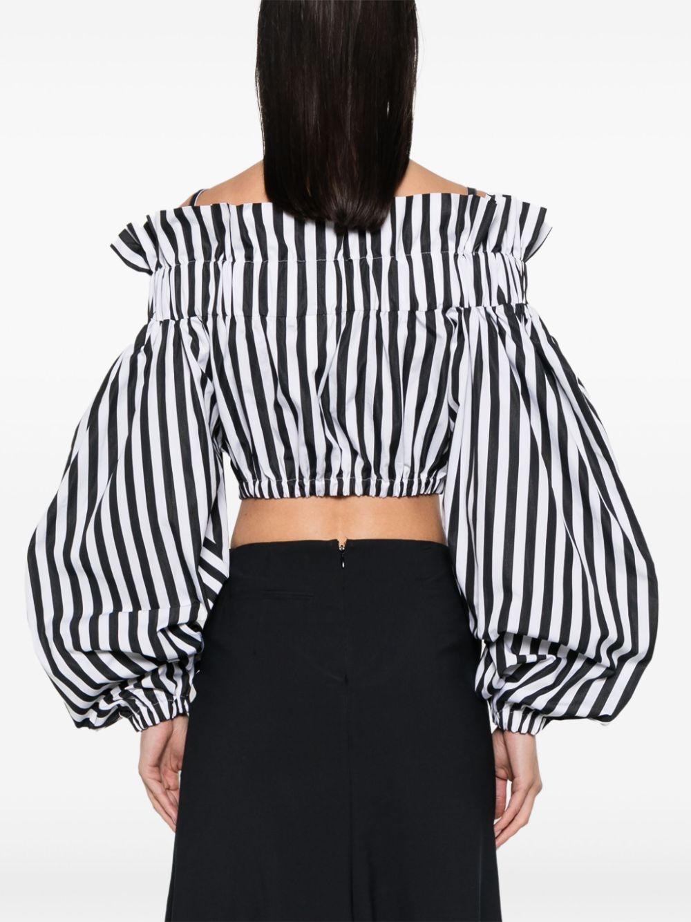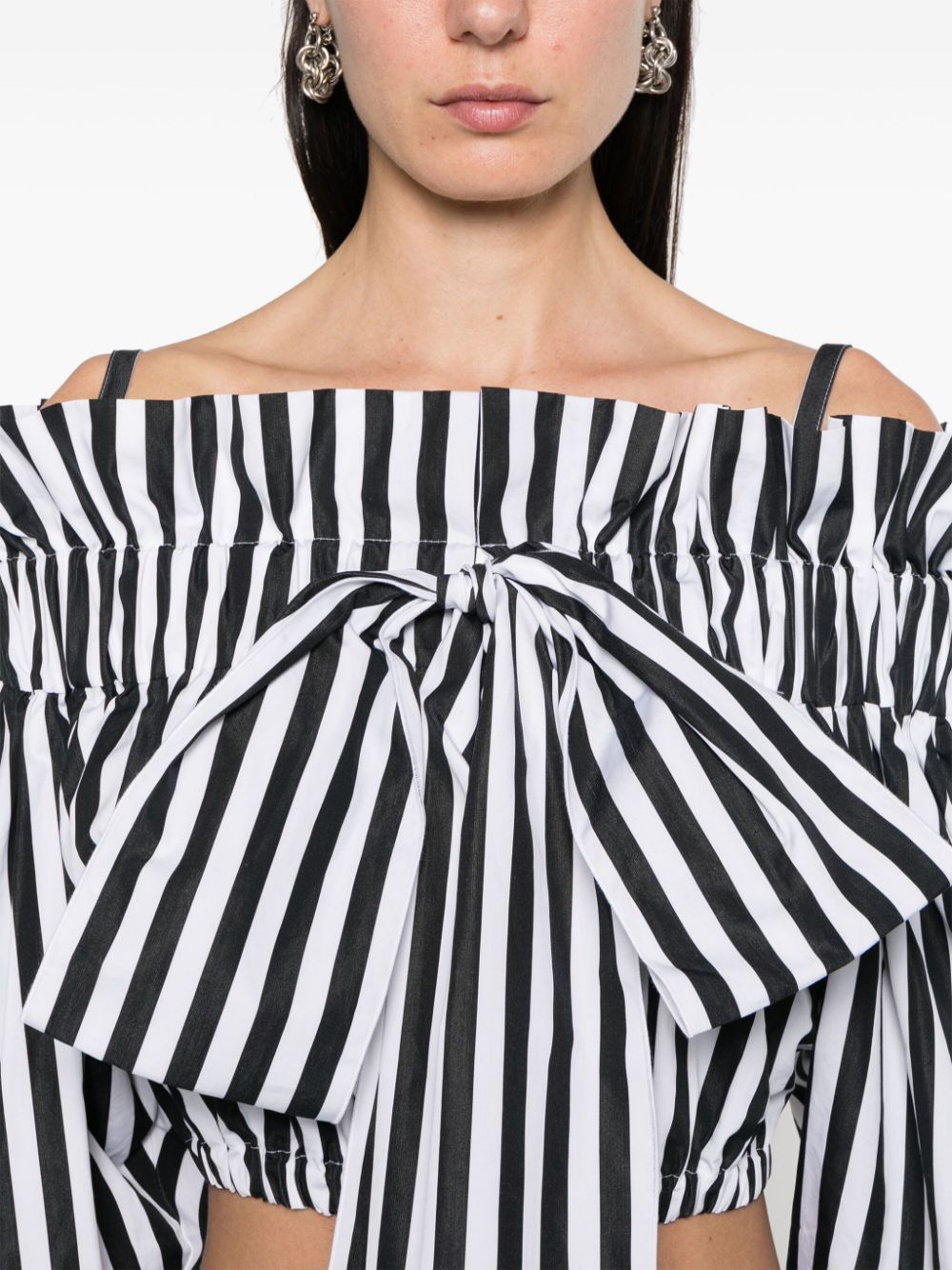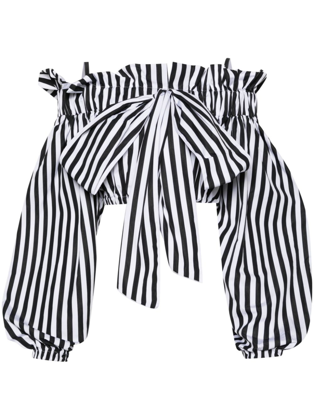 top, popeline a righe, bianco e nero, spalle scoperte, bretelle regolabili, elastico con arriccio, fiocco, ampia manica lunga, polsi e fondo con elasticoComposizione: 100% cotone Istruzioni per il lavaggio: lavare in lavatrice