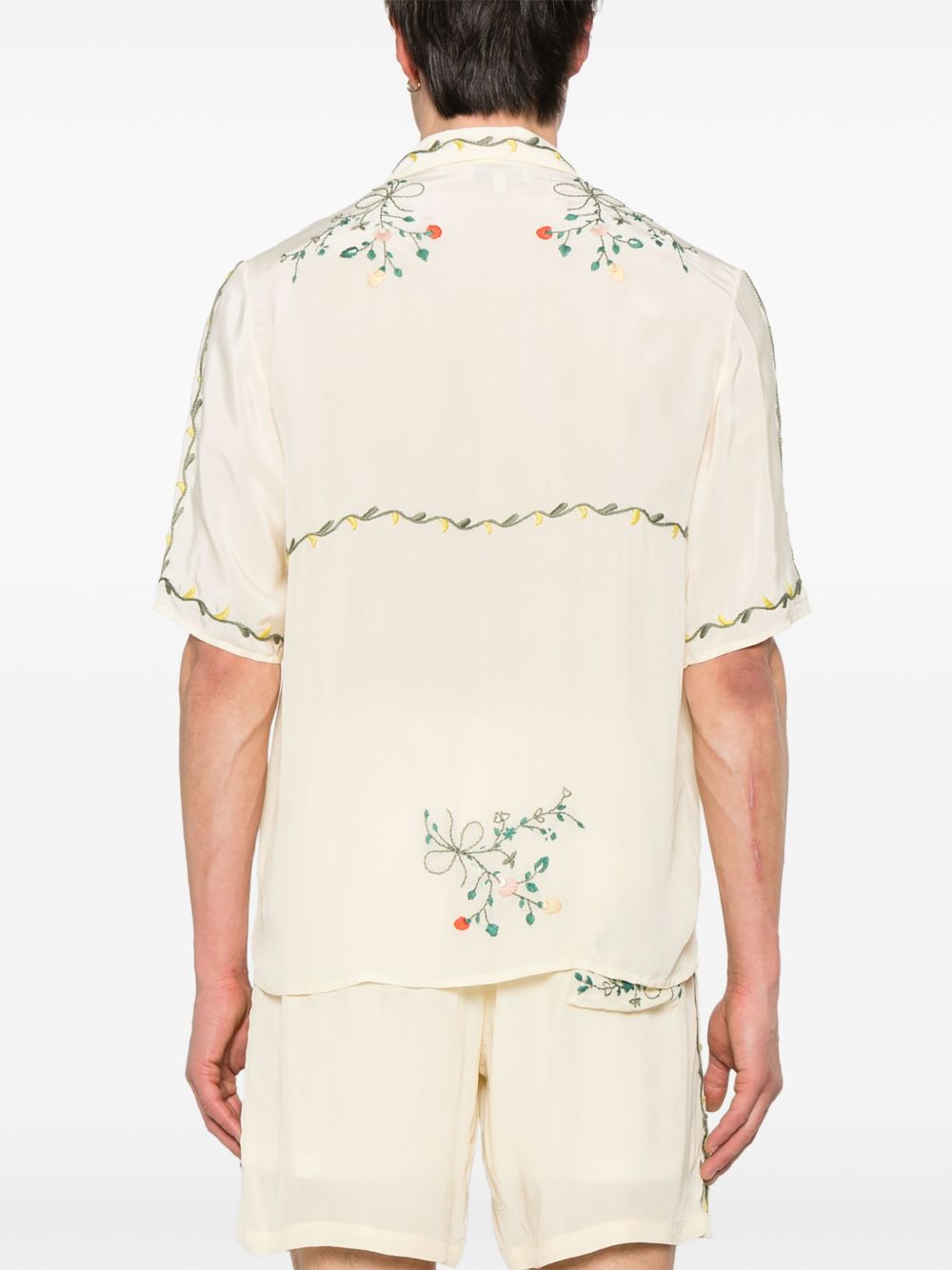 camicia, manica corta, chiusura con bottoni ricamati, ricamo fatto a mano, colletto aperto con scollo a vComposizione: 100% viscosaIstruzioni per il lavaggio: lavare in lavatrice