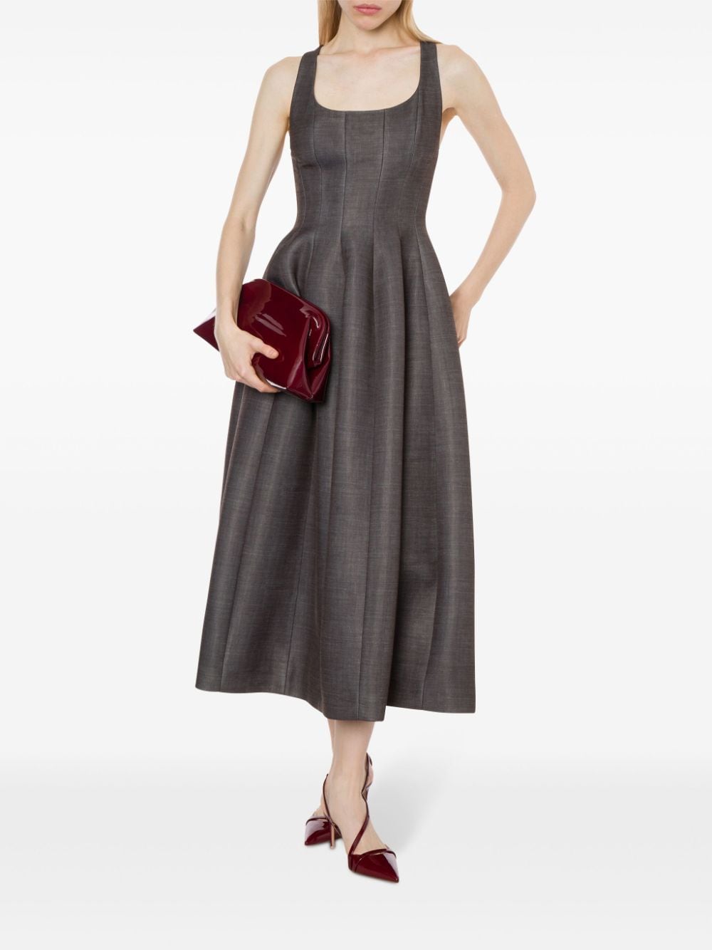 abito midi, lavorazione sartoriale, senza maniche, chiusura con zip laterale, gonna ampia , tasche laterali, foderato Composizione: 90% poliestere 10% elastane Istruzioni per il lavaggio: lavare a mano