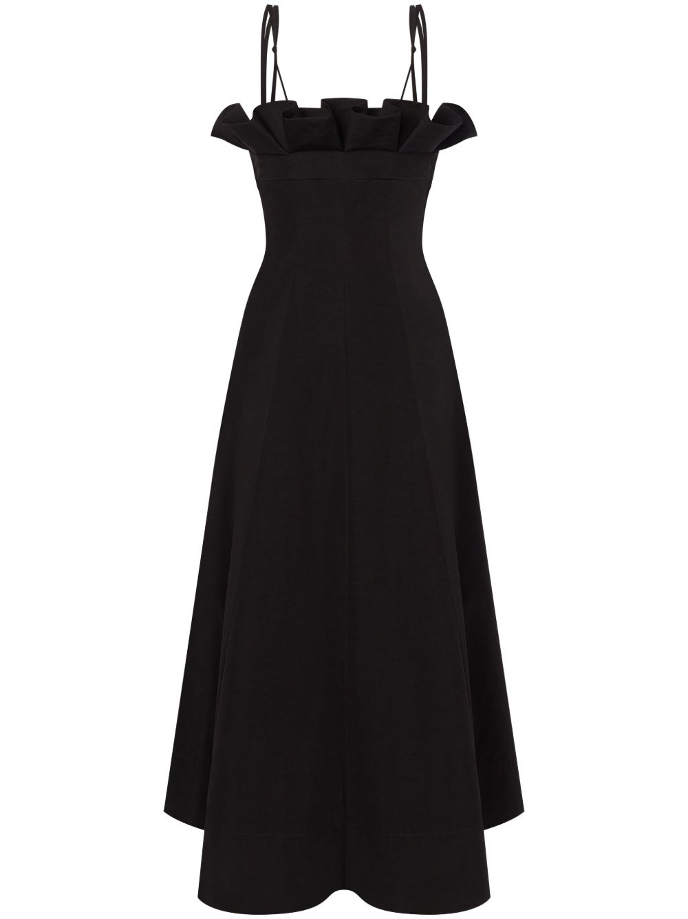abito midi, bretelle con nodo, bustino con pieghe, fondo svasato, chiusura con zip posteriore Composizione: 52% poliestere 26% cotone 22% poliammide Istruzioni per il lavaggio: lavare in lavatrice