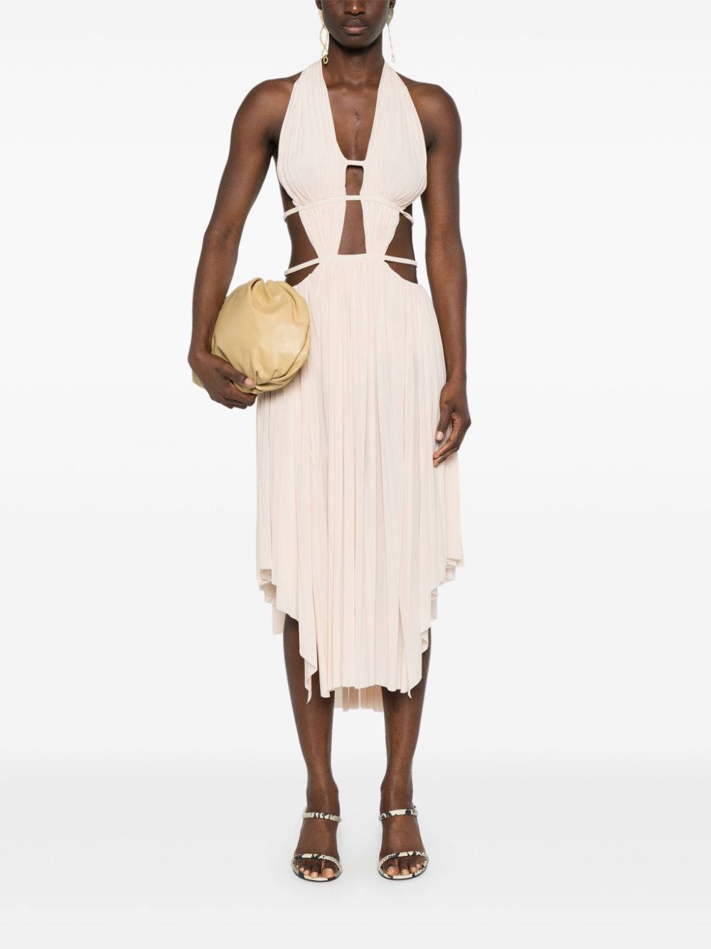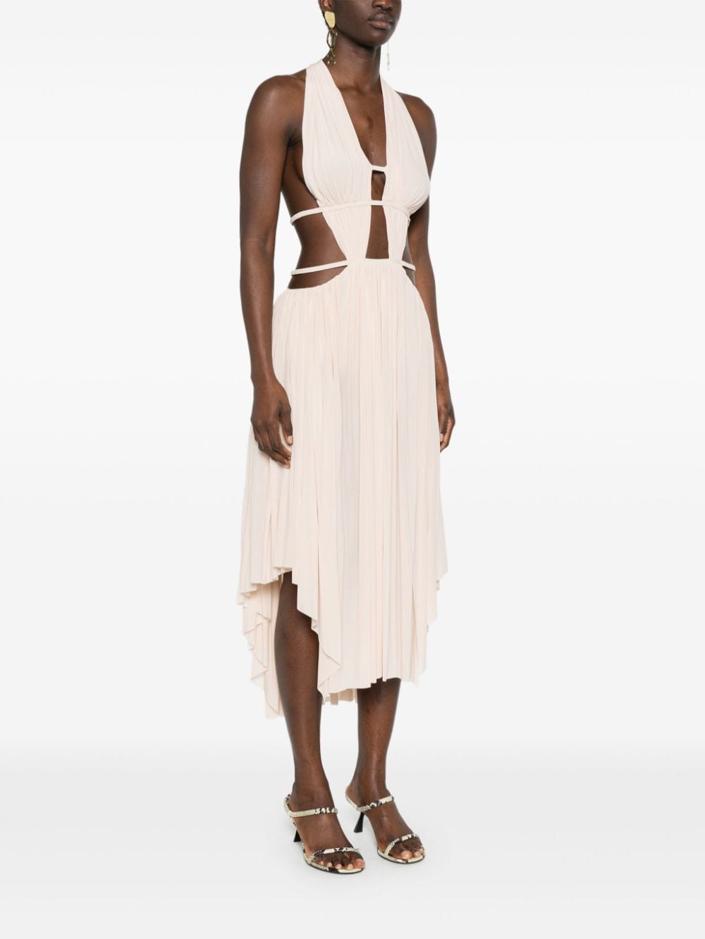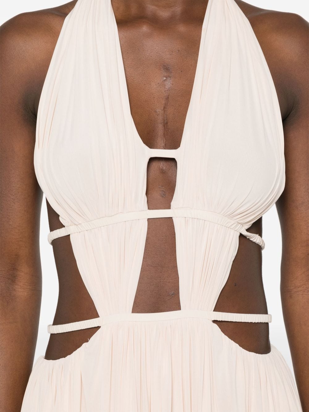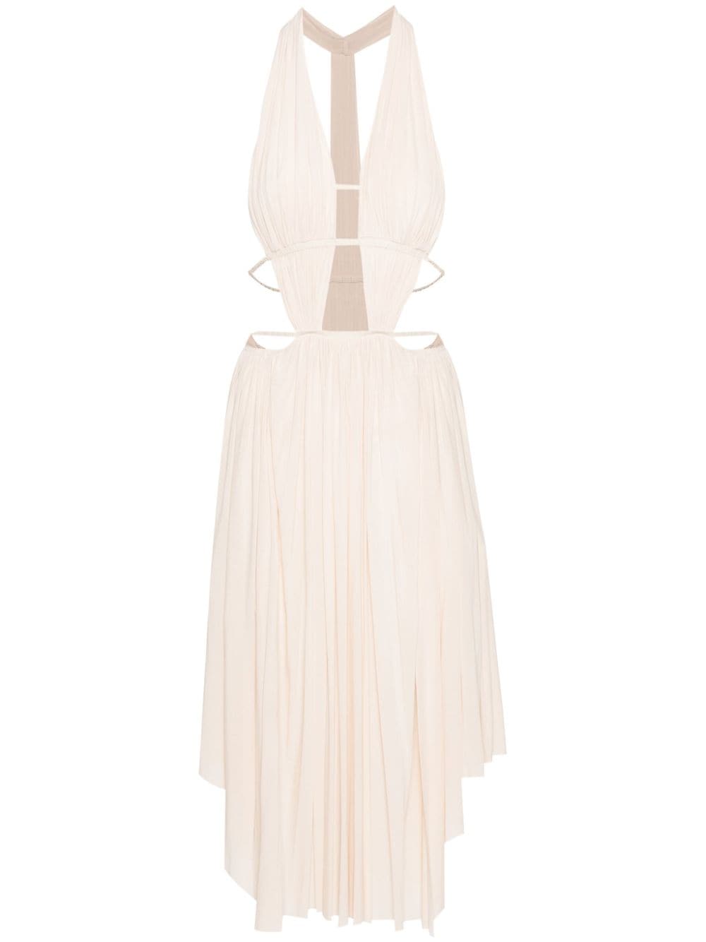 abito, scollo a V, dettaglio cut-out, elastici laterali, fondo asimmetrico, spacchi laterali, body interno con chiusura gancetti, drappeggio, tessuto elasticizzato Composizione: 86% viscosa 14% elastane Istruzioni per il lavaggio: lavare in lavatrice