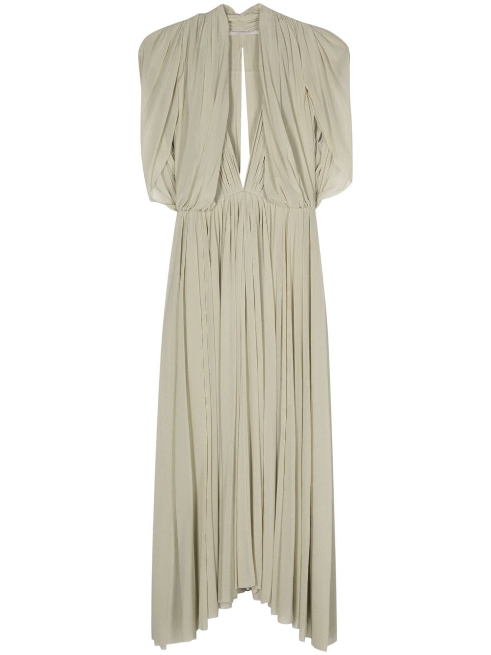 abito, tulle stretch, scollo a v, senza maniche, spalle con drappeggio, chiusura con zip posteriore, gonna ampia con arriccio in vita, foderato con body Composizione: 100% poliammide Istruzioni per il lavaggio: lavare in lavatrice