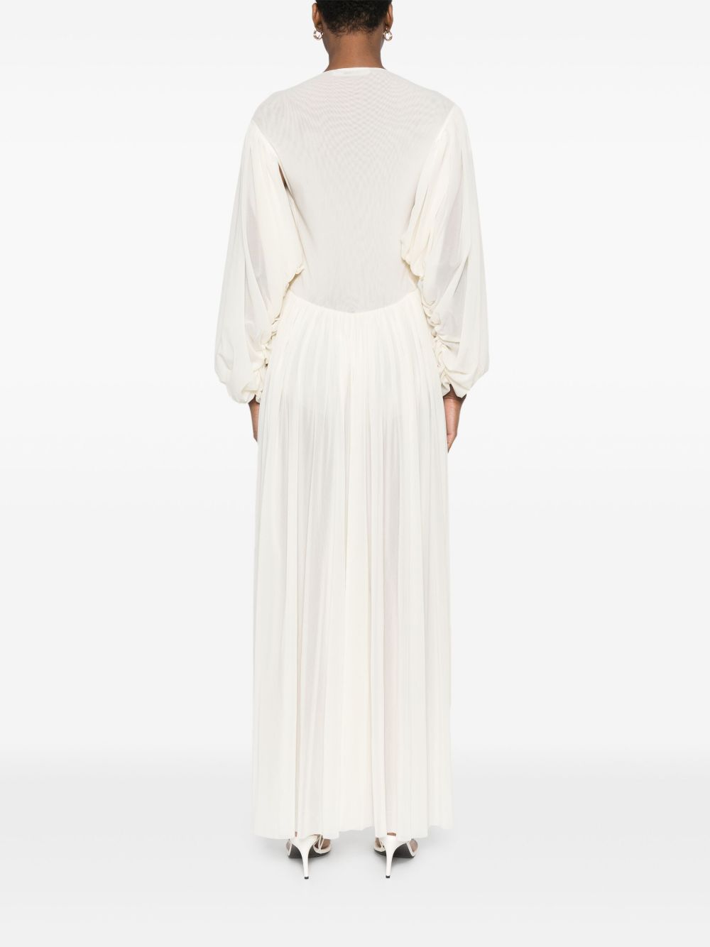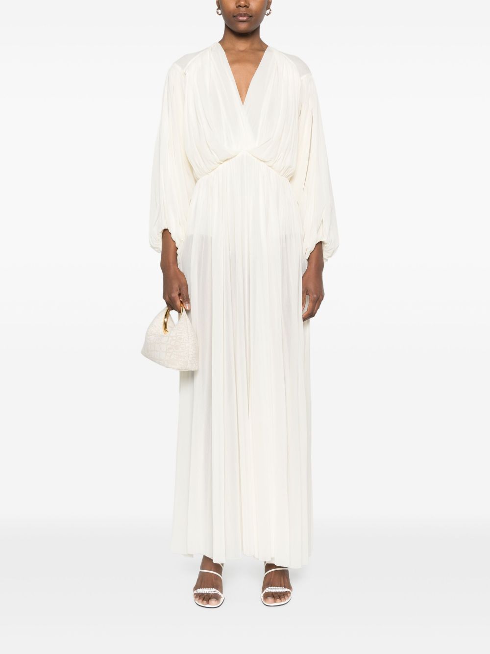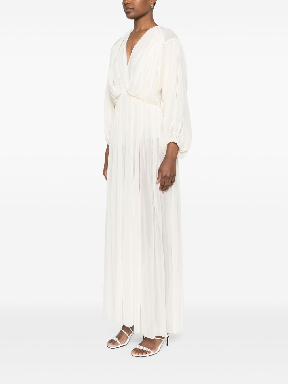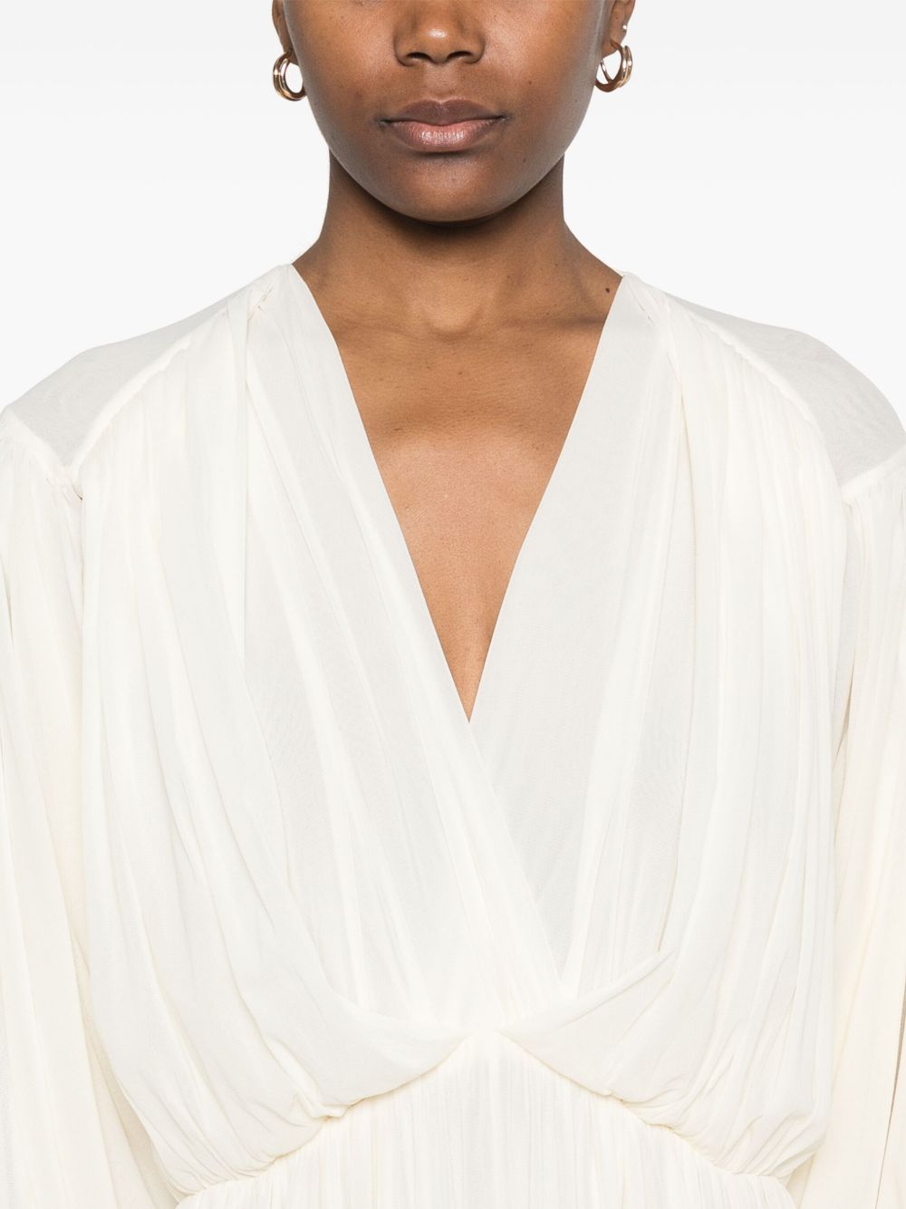 abito, scollo a v, manica lunga e ampia, spalla con drappeggio, polsi con drappeggio, punto vita arricciato, gonna ampia, foderato Composizione: 100% poliamide Istruzioni per il lavaggio: lavare a mano