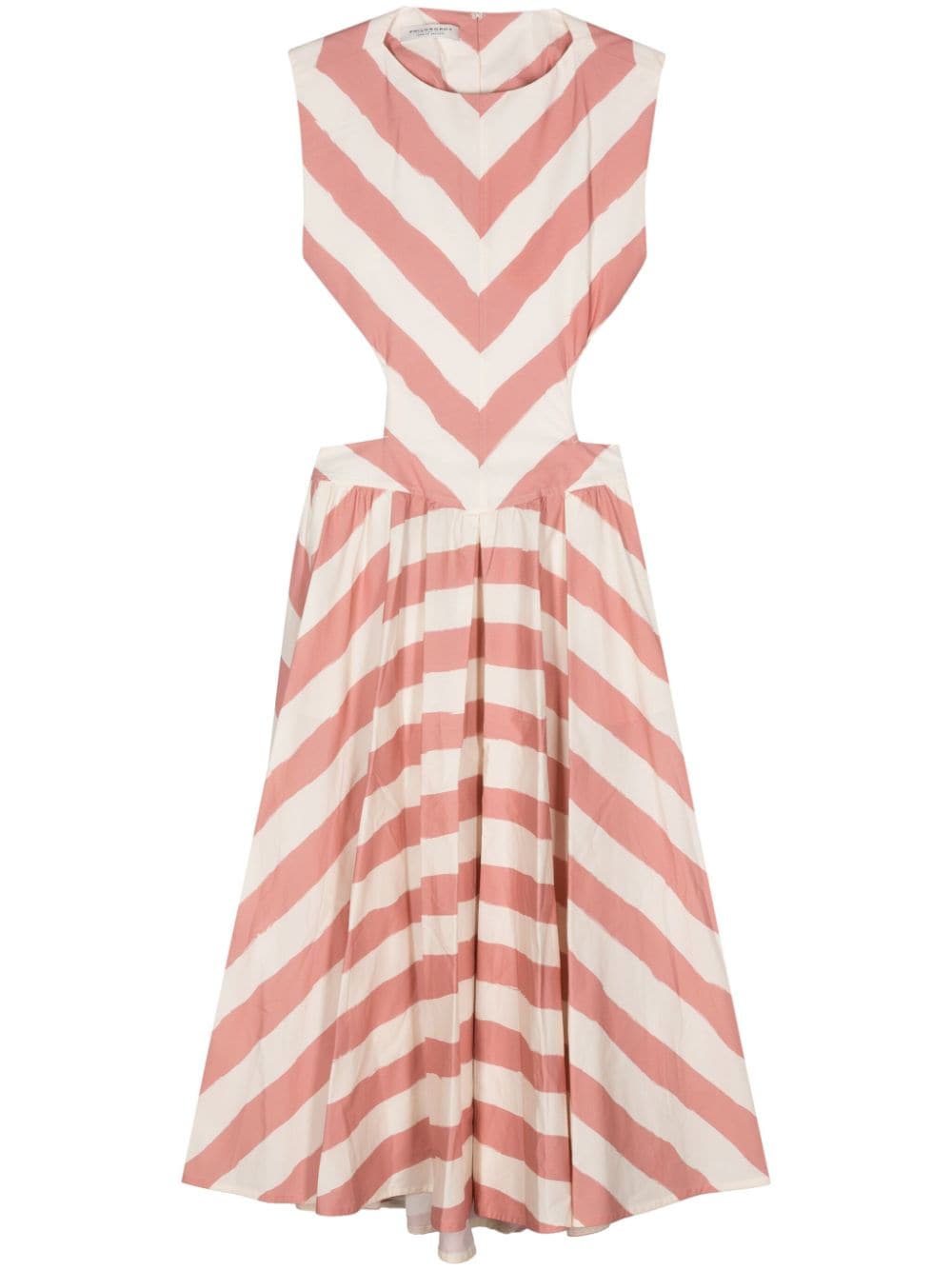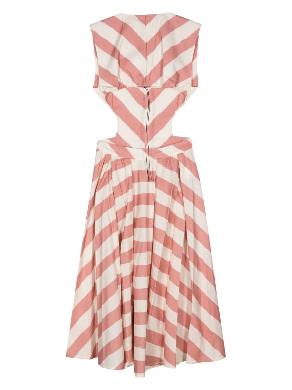 abito, tessuto a righe, girocollo, senza maniche, dettaglio cut-out sui fianchi, schiena semi scoperta, top con coulisse posteriore, gonna ampia, lunghezza midi, tasche laterali, chiusura laterale con zip Composizione: 98% cotone 2% elastane Istruzioni per il lavaggio: lavare in lavatrice