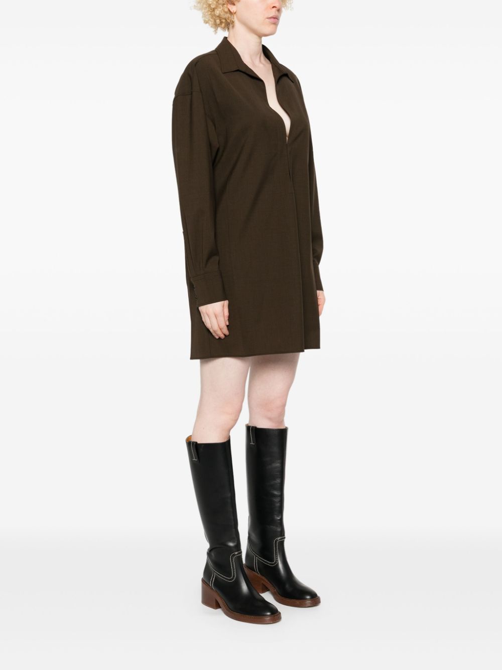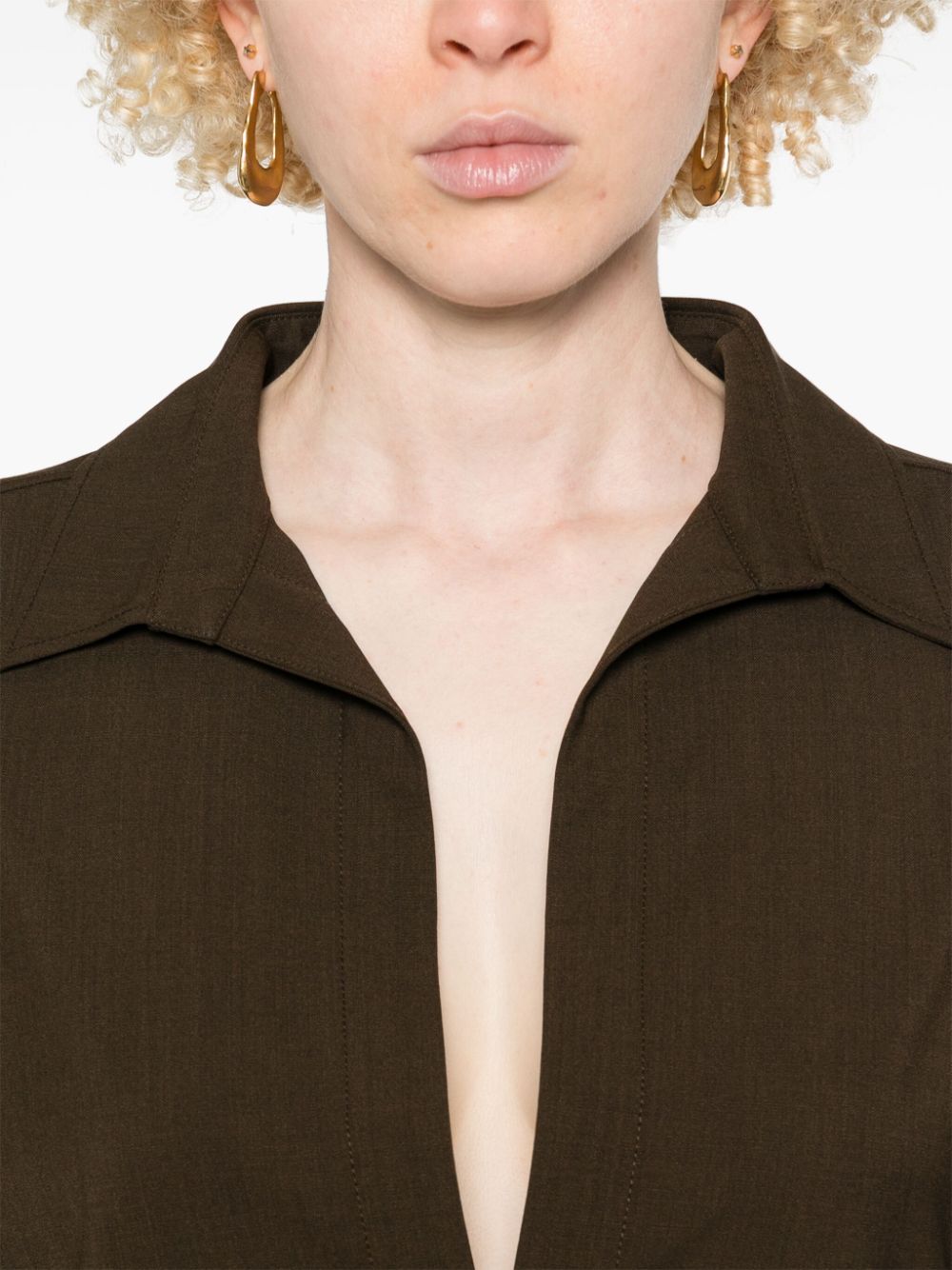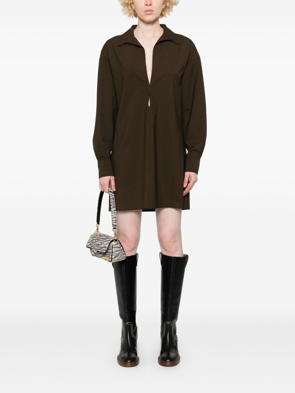abito corto, colletto, scollo a v profondo con gancetto, manica lunga con polsini , vestibilità comoda