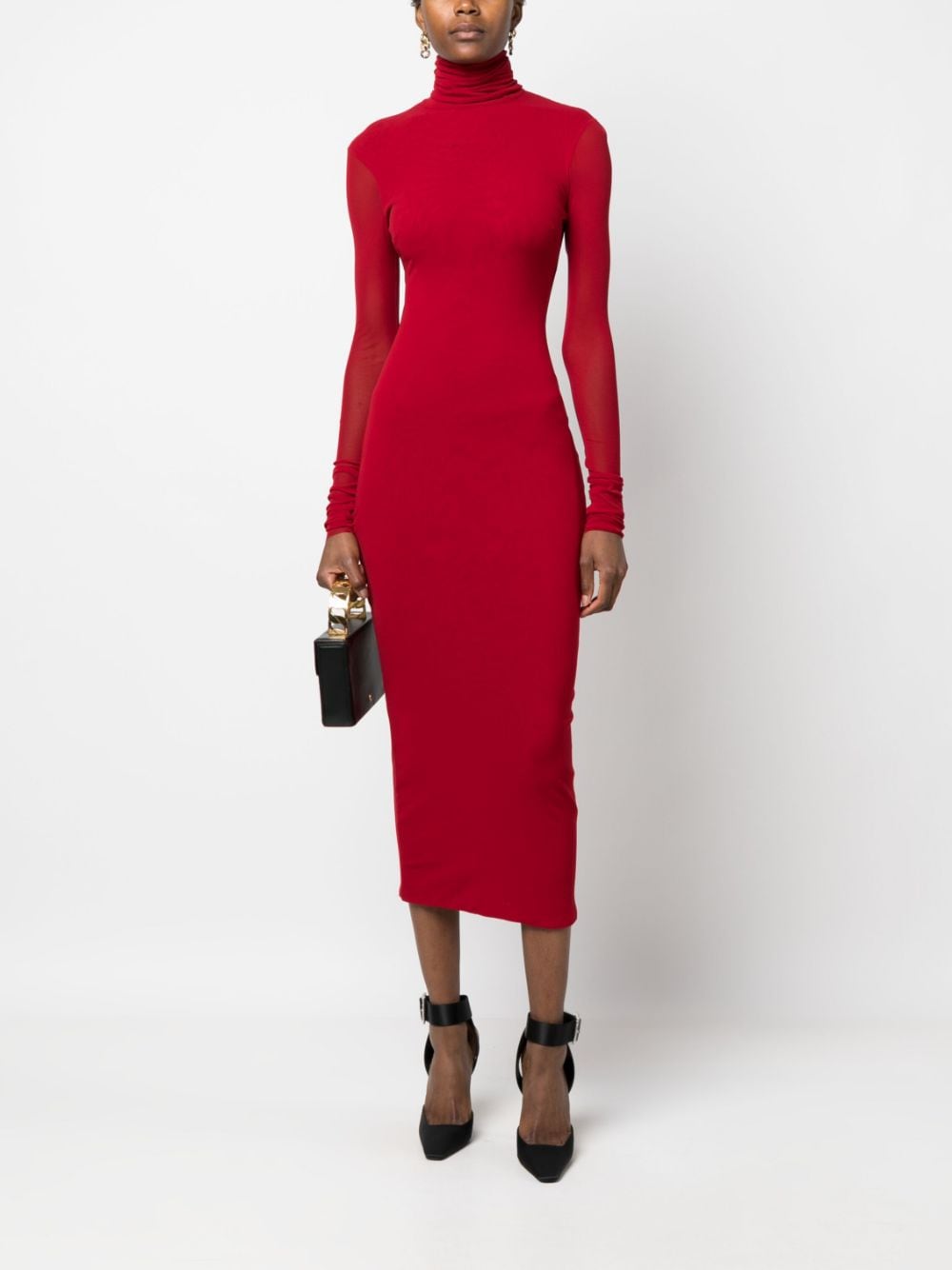 abito, tessuto stretch, collo alto , manica lunga, longuette, tessuto doppiatoComposizione: 100% poliammideIstruzioni per il lavaggio: lavare a mano