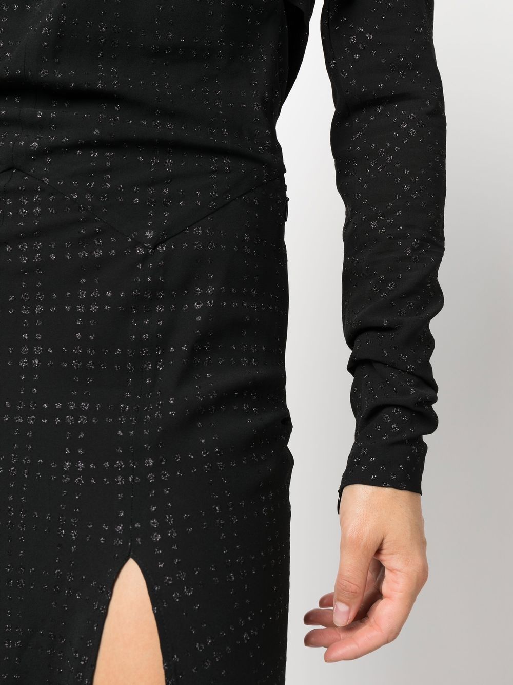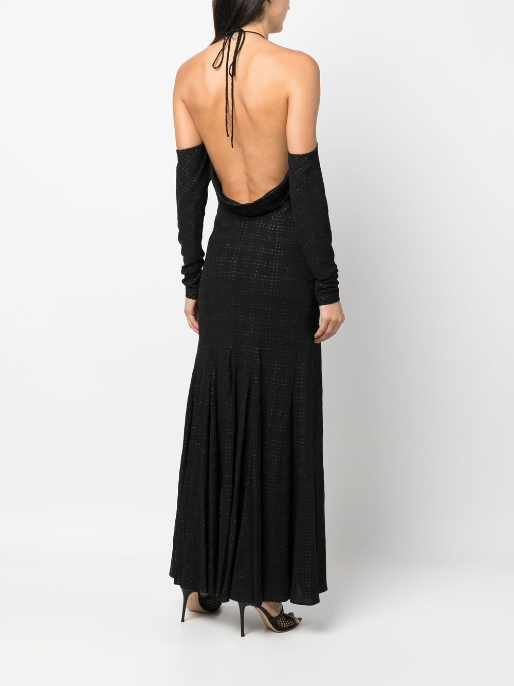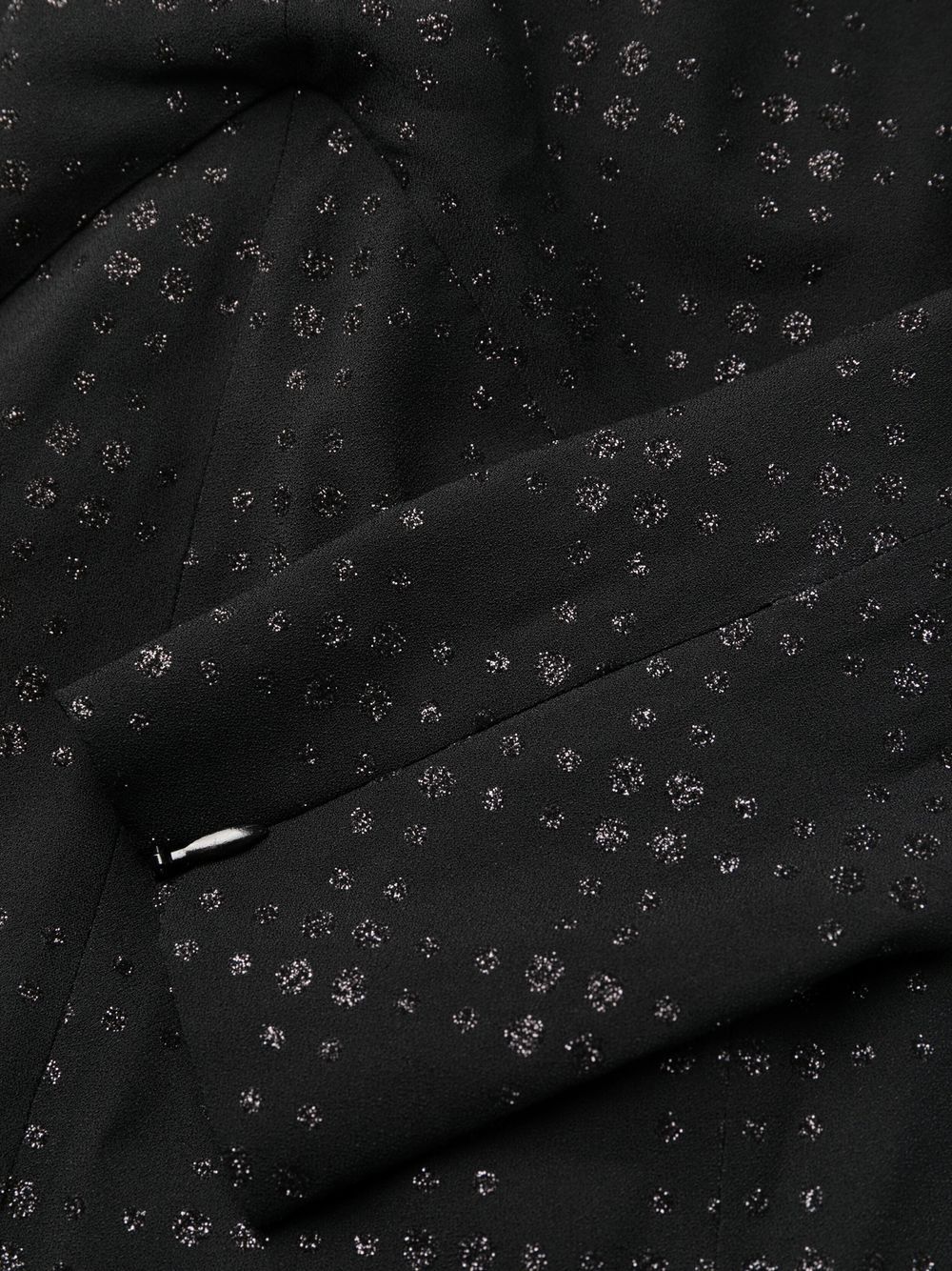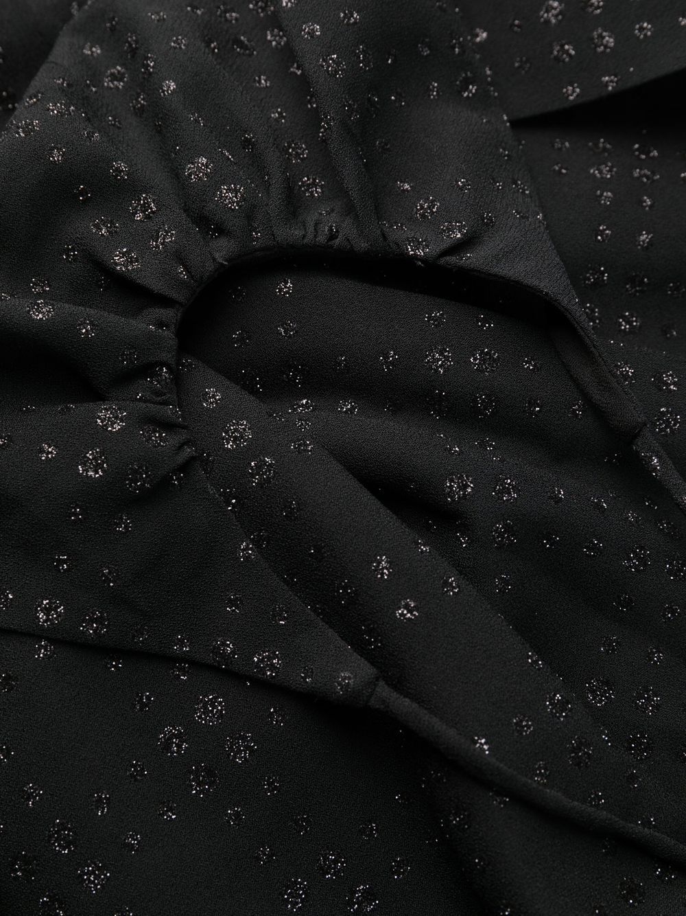 abito lungo, tessuto a pois lurex, girocollo con chiusura dietro il collo, manica lunga con zip, spalle scoperte, schiena scoperta, foderato, spacchi Composizione: 98% viscosa 2% elastane Istruzioni di lavaggio: lavare a secco